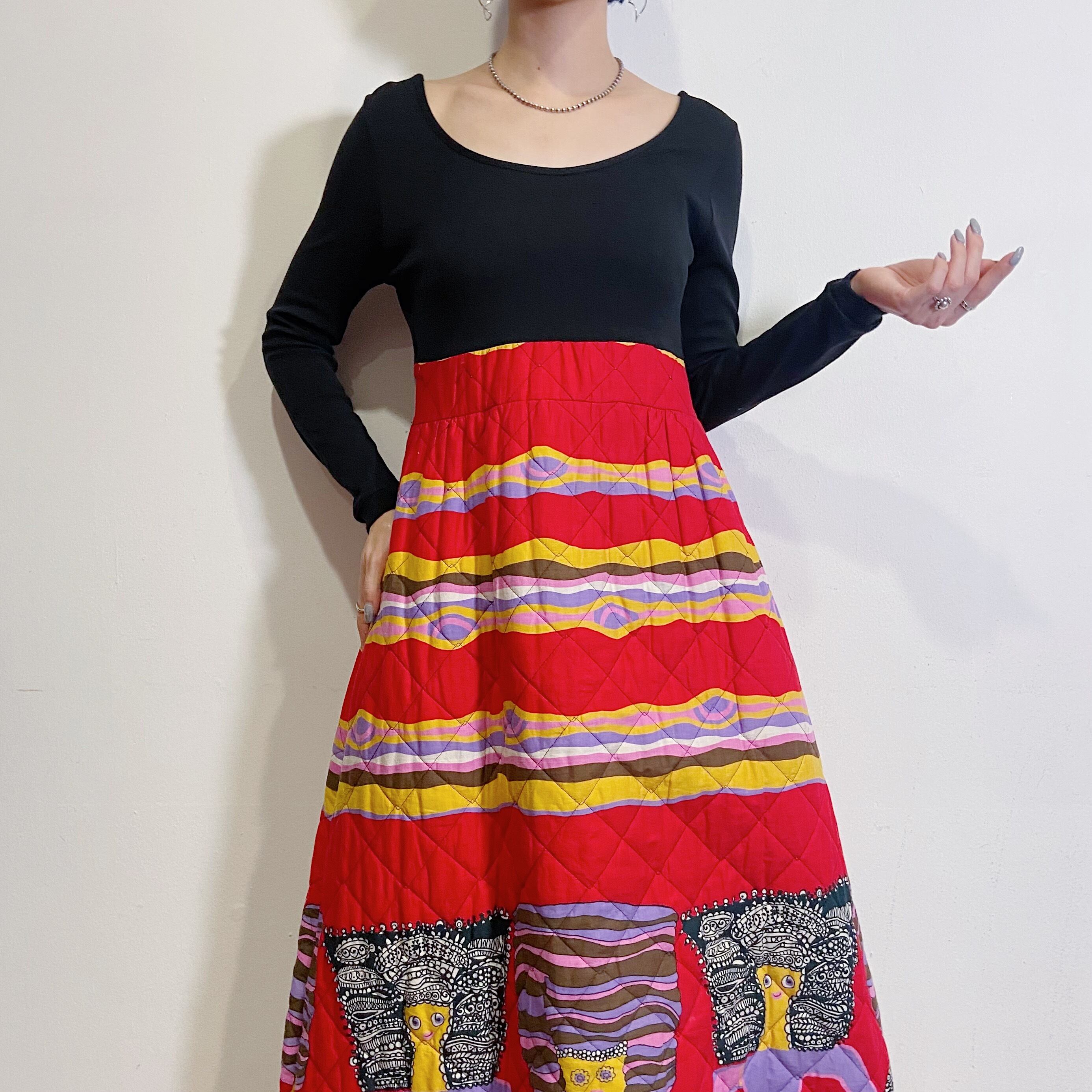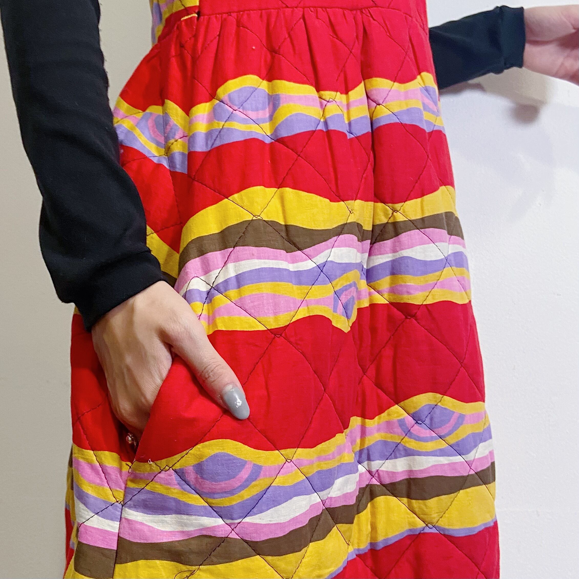 女性が並ぶテキスタイルがユニークでとびきりキュートな70年代のワンピースです。