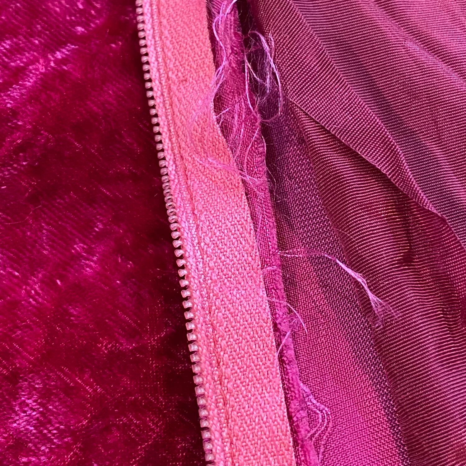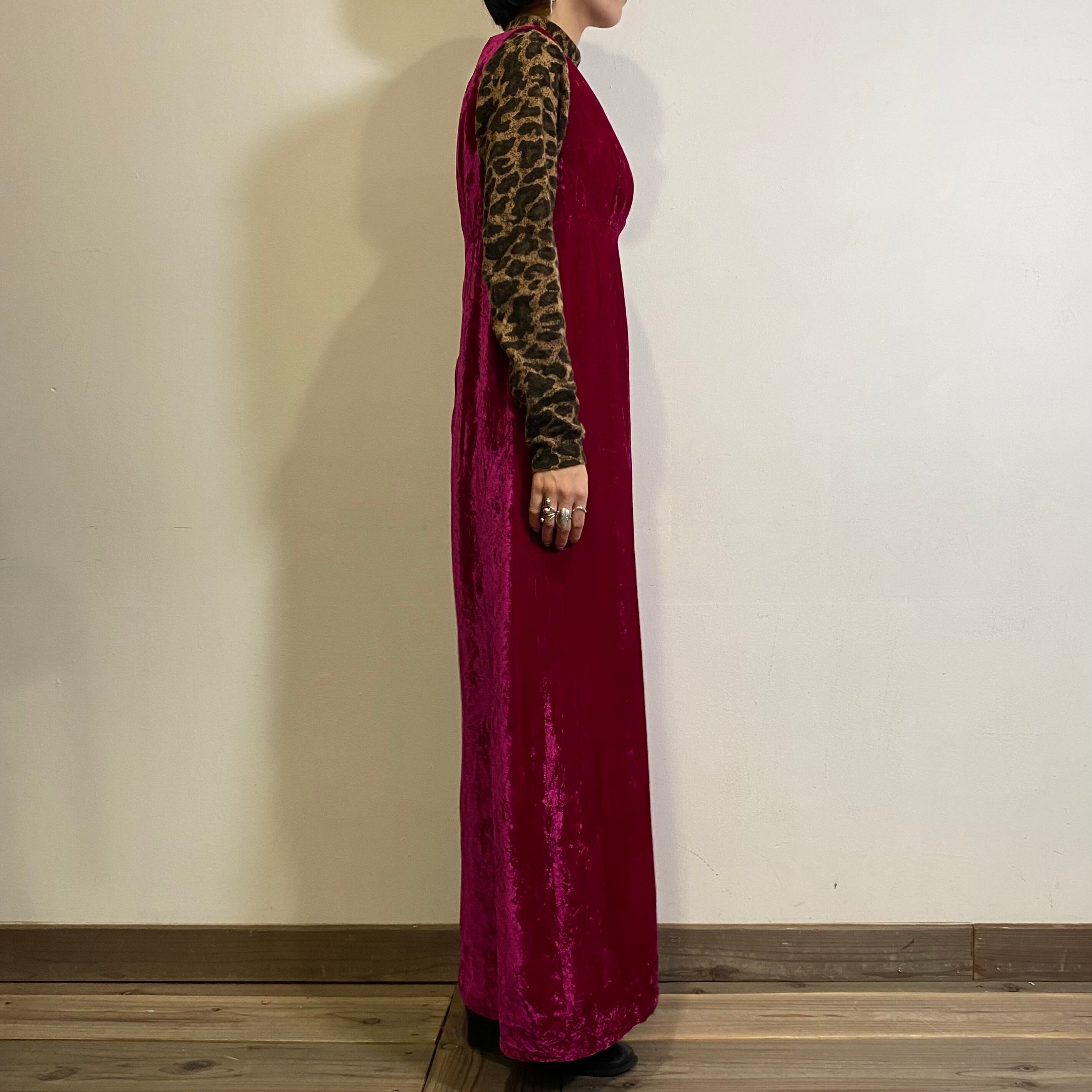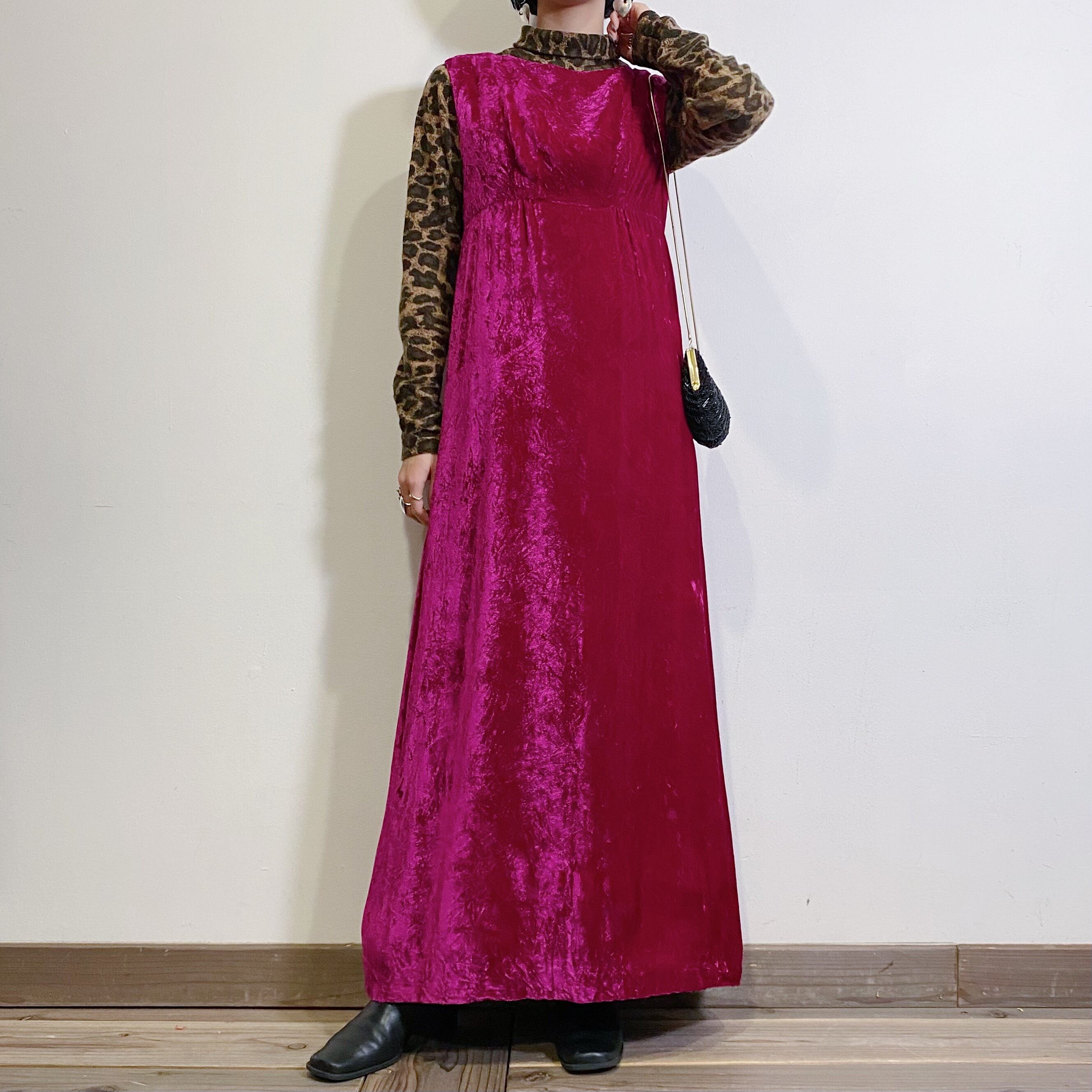 こっくりピンクの色合いが可愛い、70年代のベロアワンピースです。