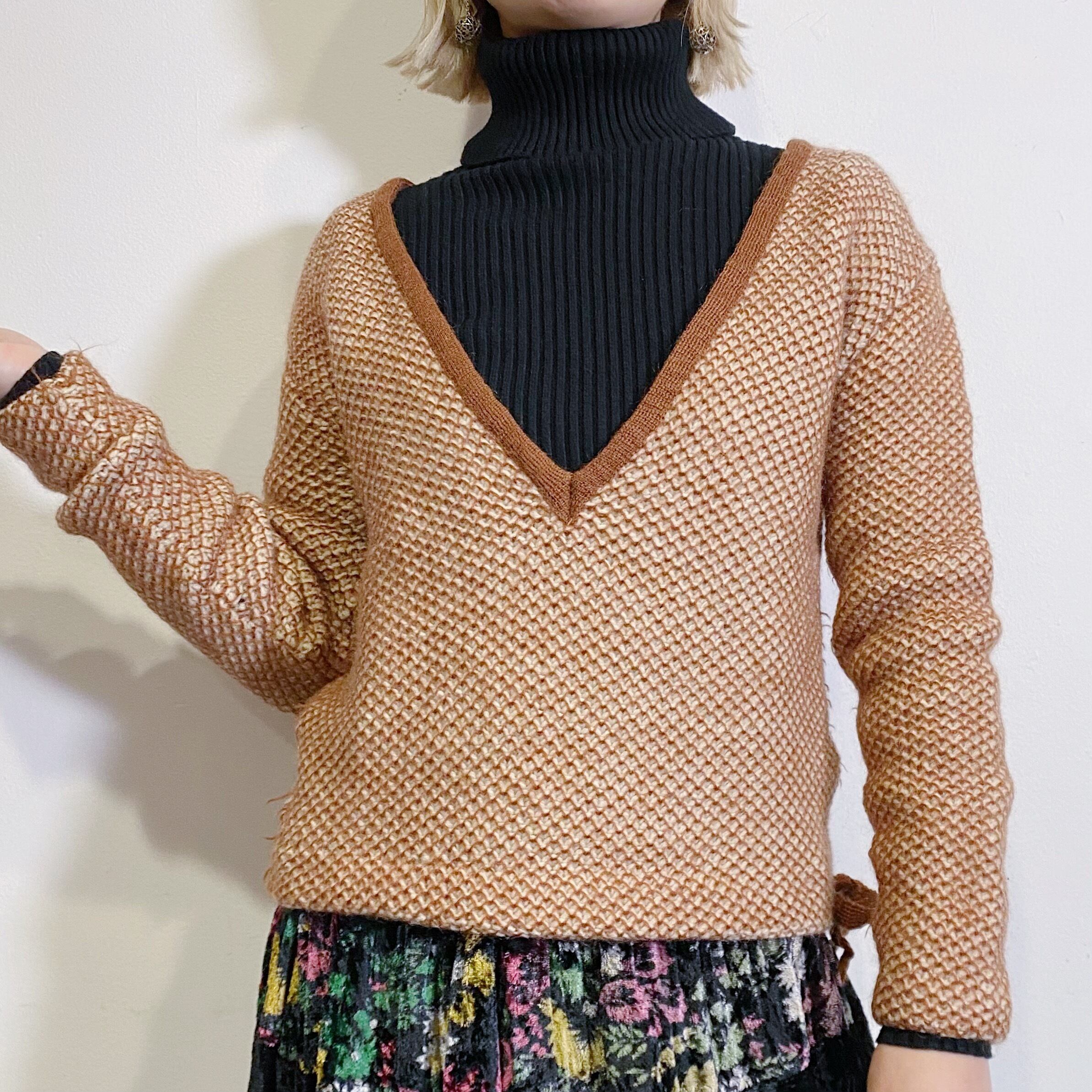 ホワイトベースにブラウンの糸で上から網状に編まれた、60年代のニットセーターです。