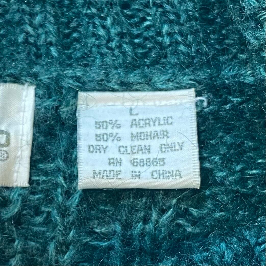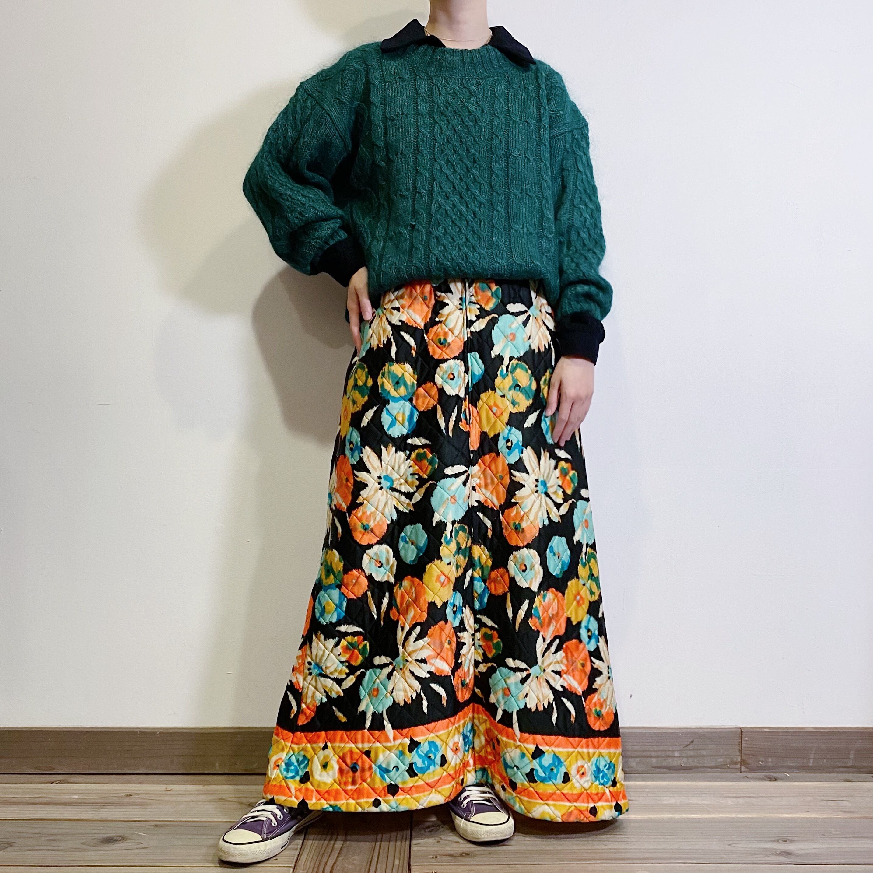 グリーンカラーに編み模様が素敵な、ニットセーターです。