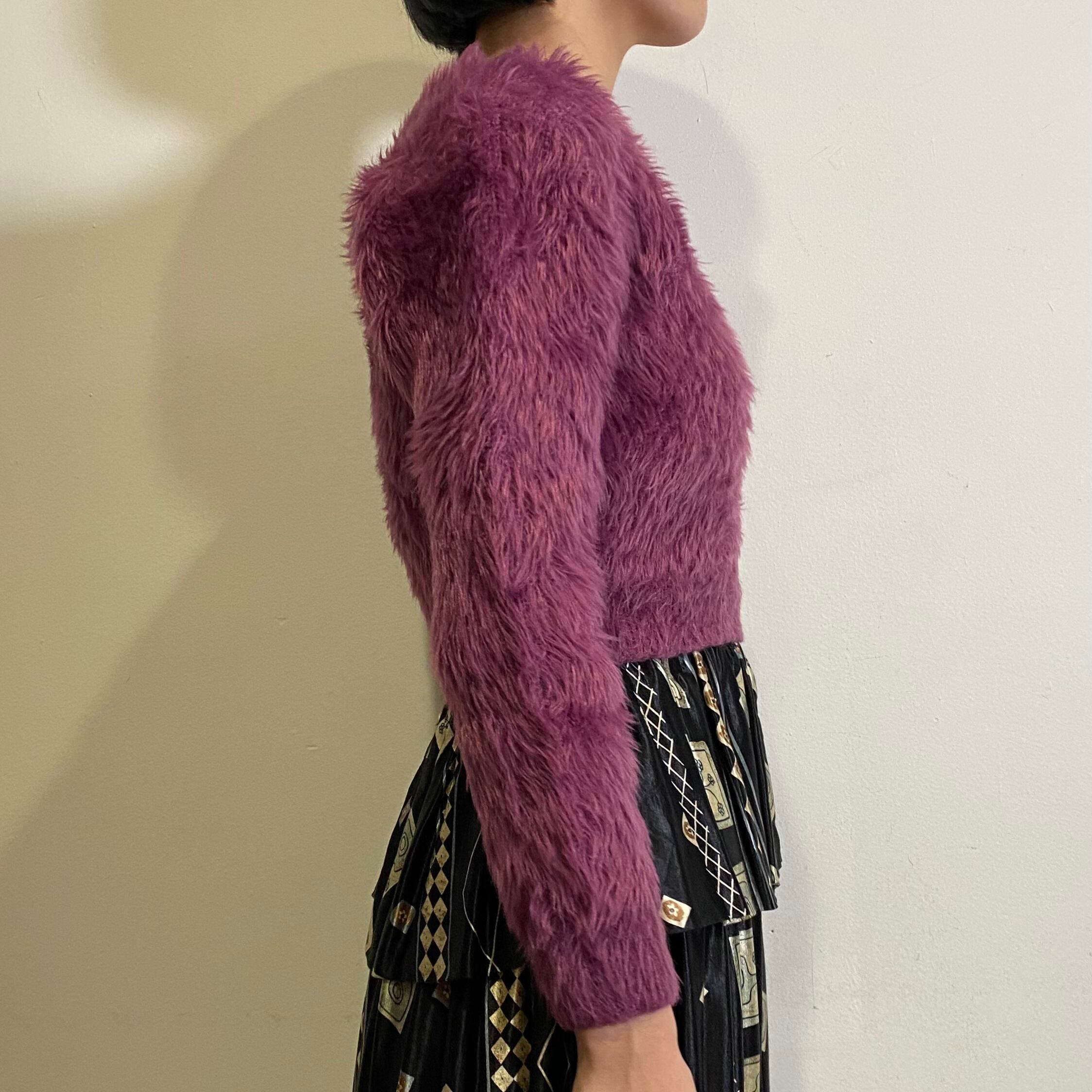 ふわふわとした毛足の長い素材感が肌触りのいい、フェザーヤーンニットです。
