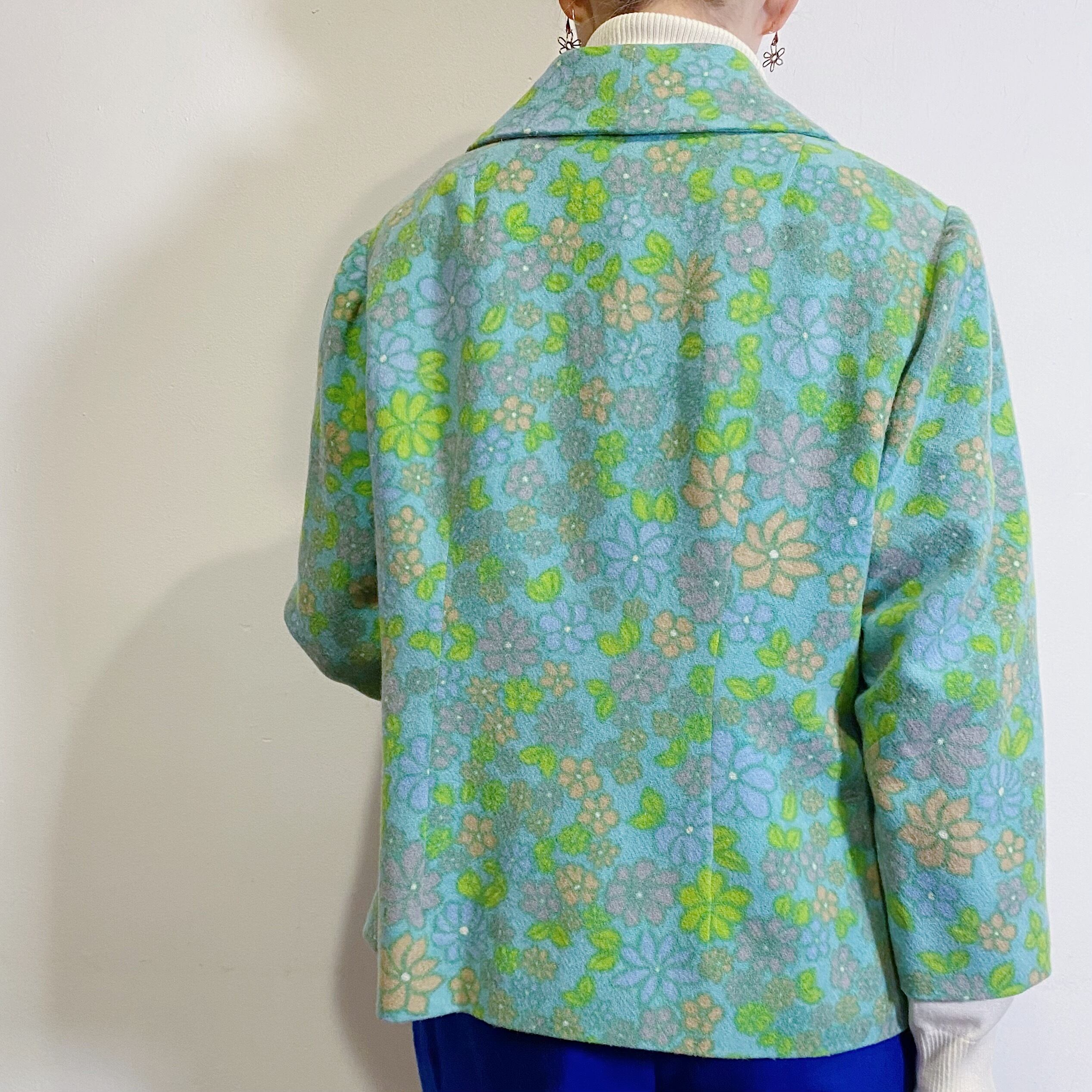 綺麗なサックスブルーベースに優しい色合いの花柄が可愛い、60年代のジャケットです。