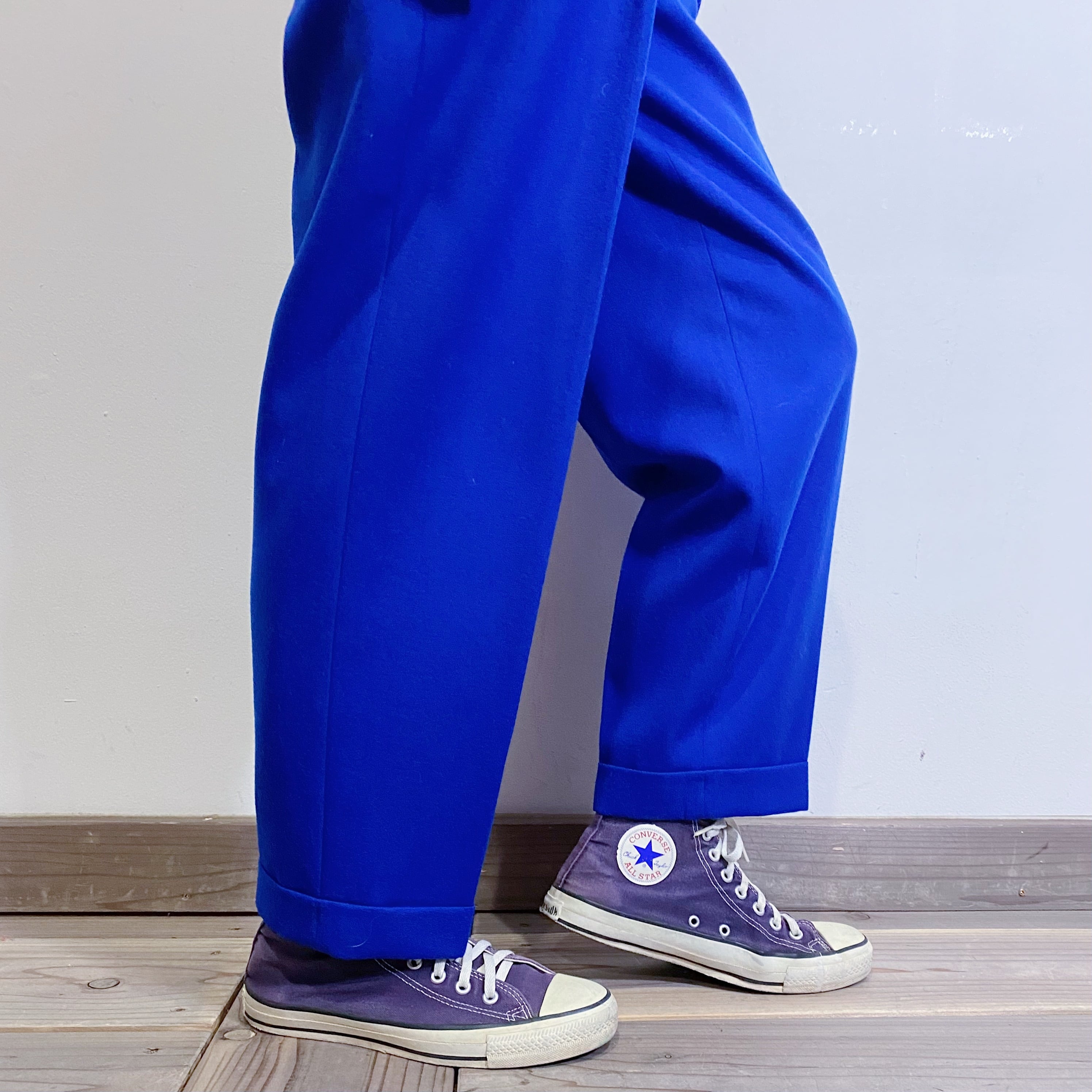 鮮やかなブルーが目を惹く、80年代のウールパンツです。