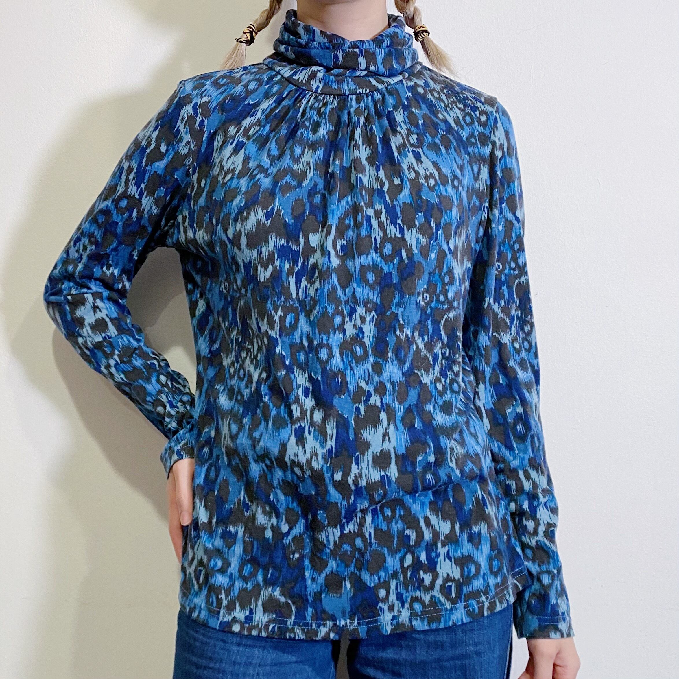 ブルーベースのレオパード柄が可愛い、ハイネックトップスです。