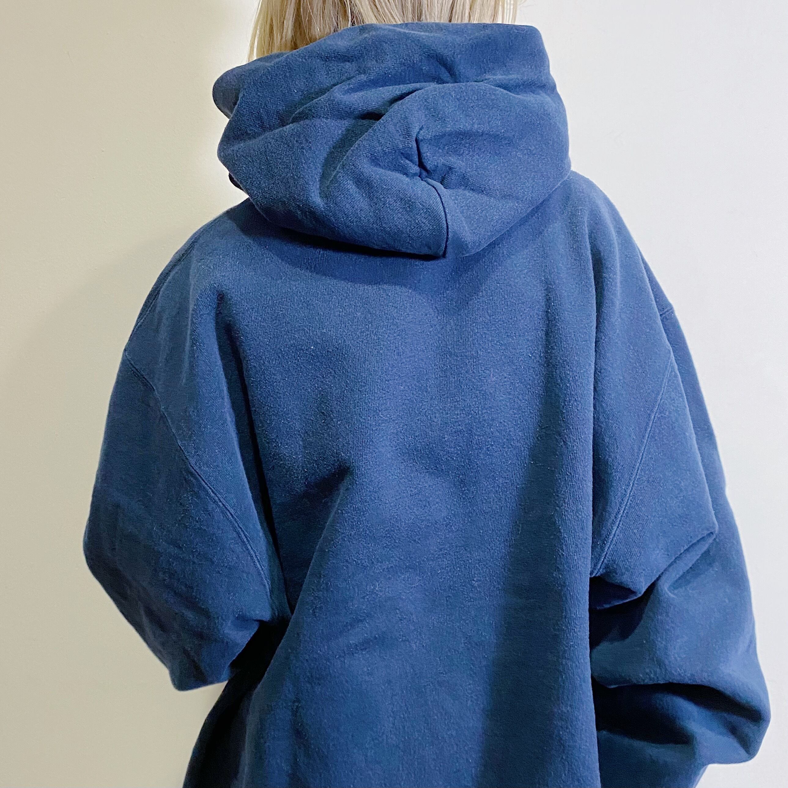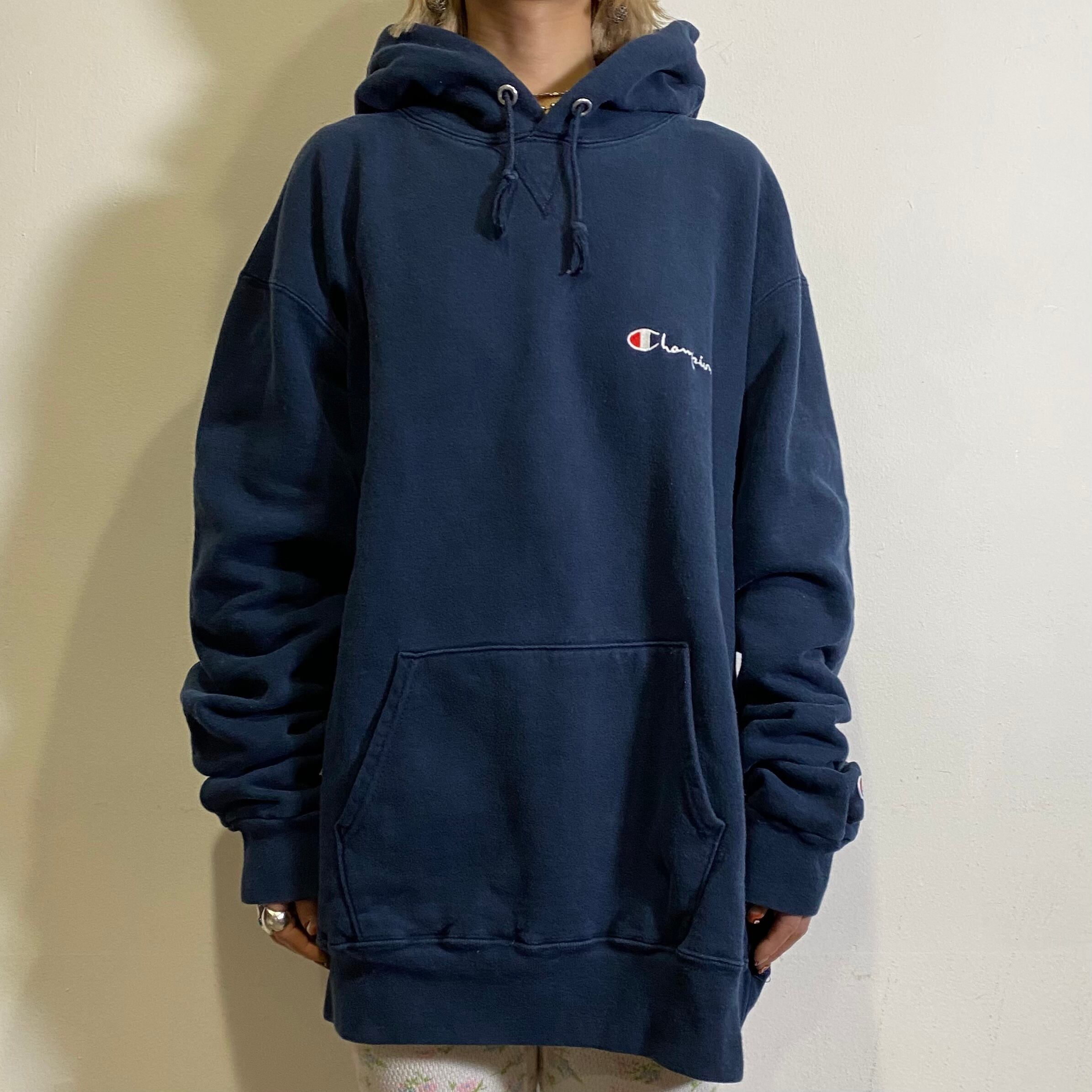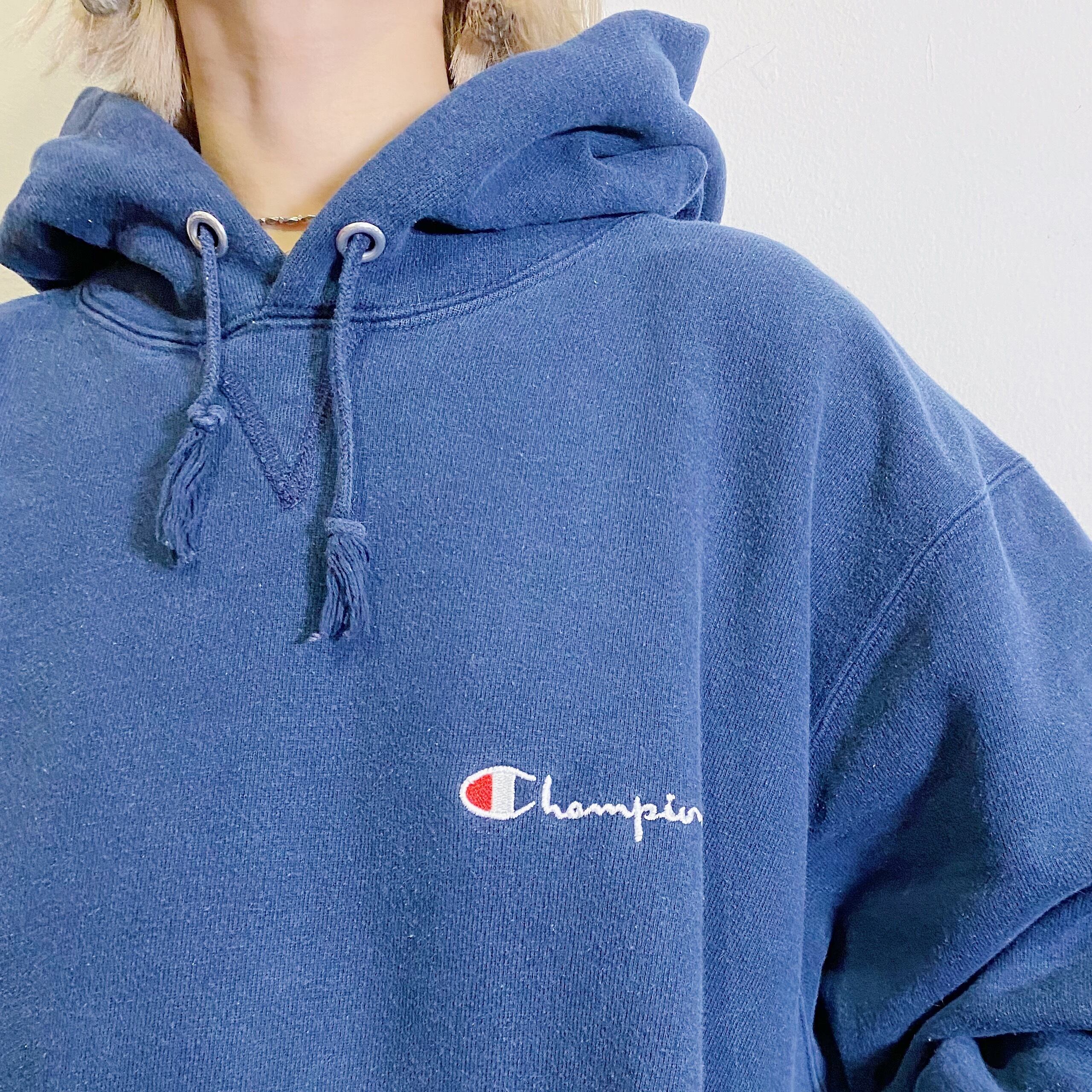 ネイビーカラー大きめサイズが可愛い、チャンピオンのプルオーバーパーカーです。