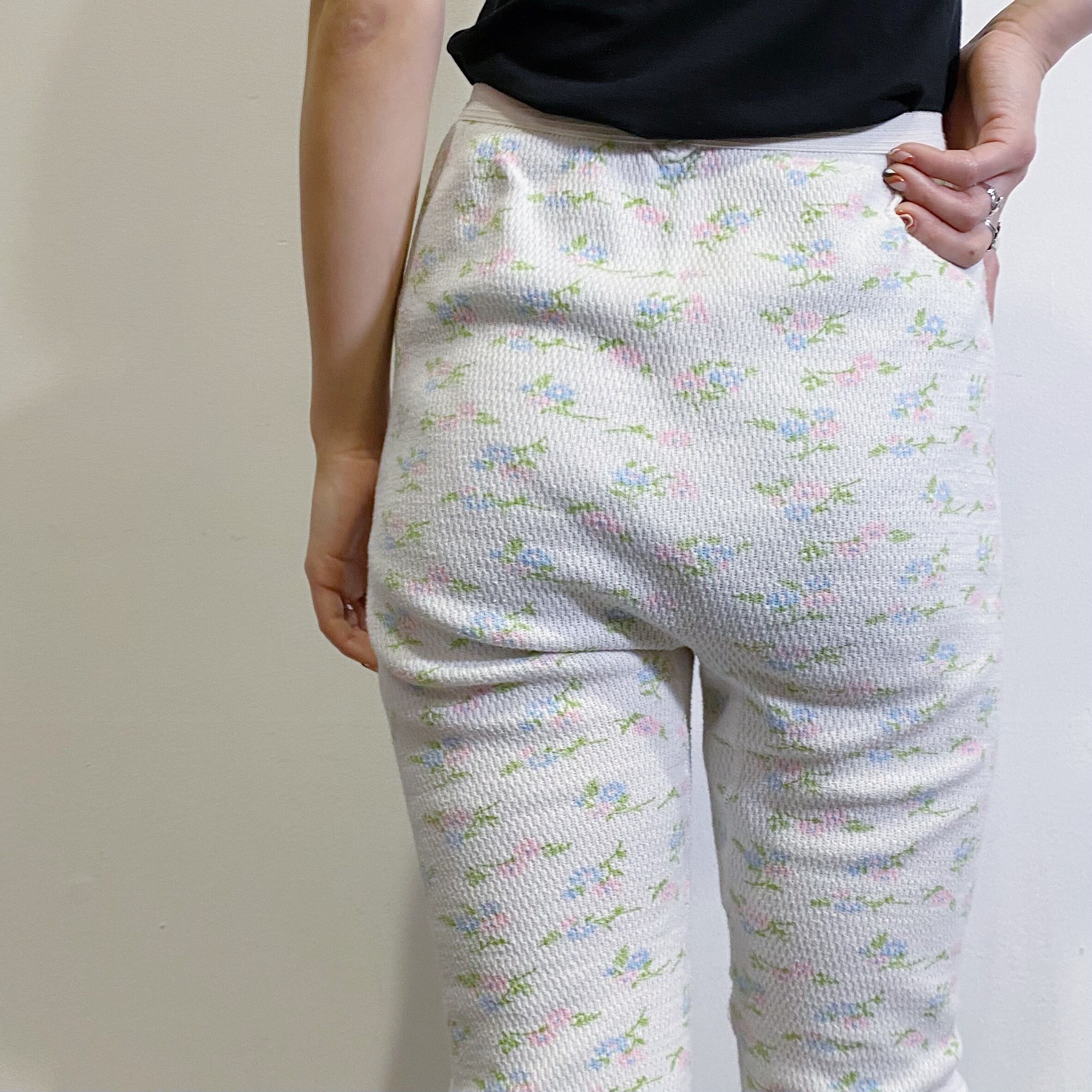 花柄とサーマル素材の組み合わせがキュンとする、可愛いレギンスです。