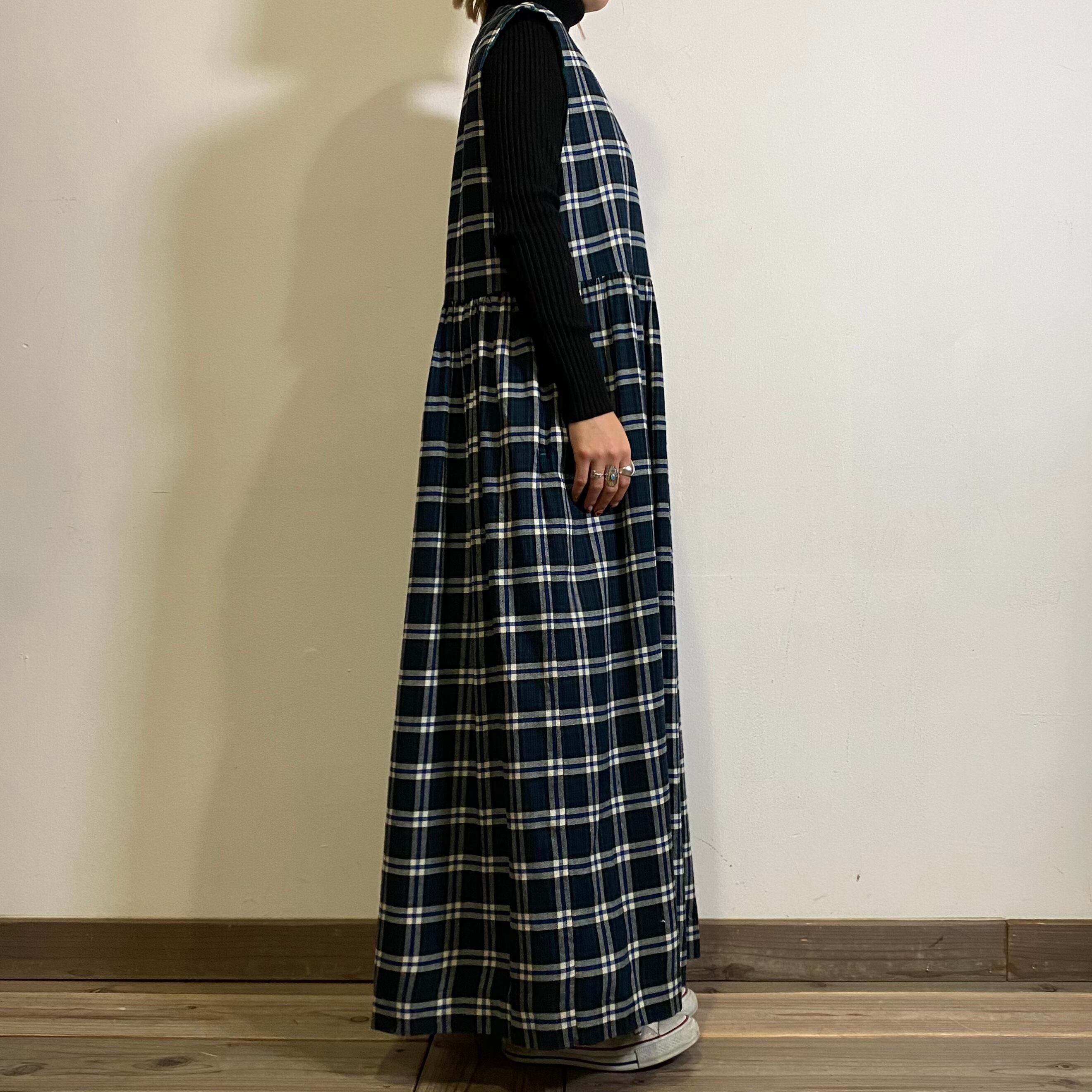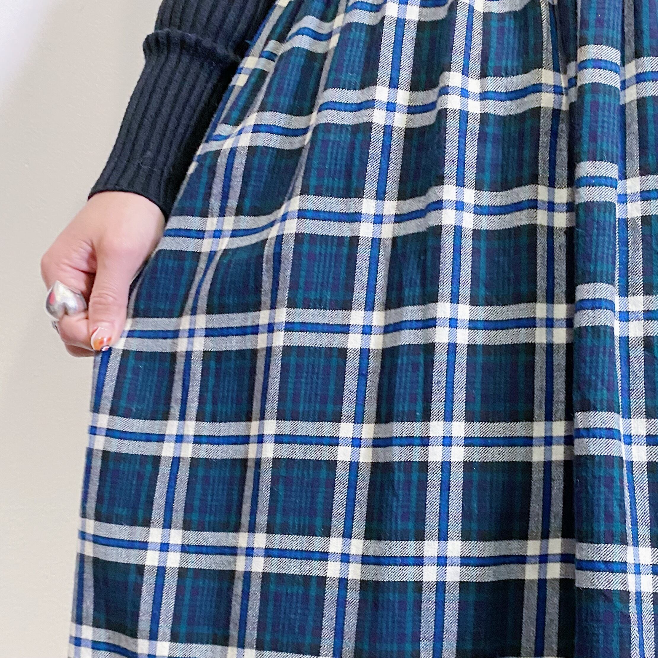 グリーンカラーベースの落ち着いたチェックにロング丈で、大人可愛く着ていただけます。