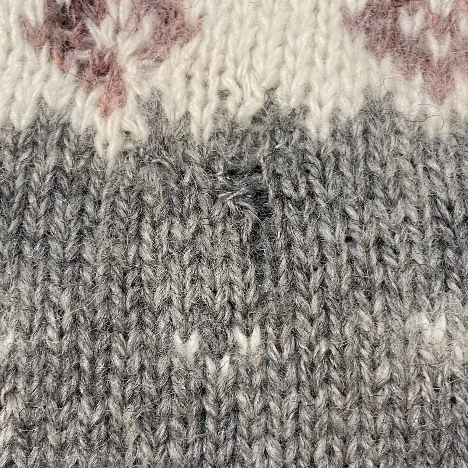 柔らかなグレーベースに白とピンクで編まれており、色味も素敵な一枚。
