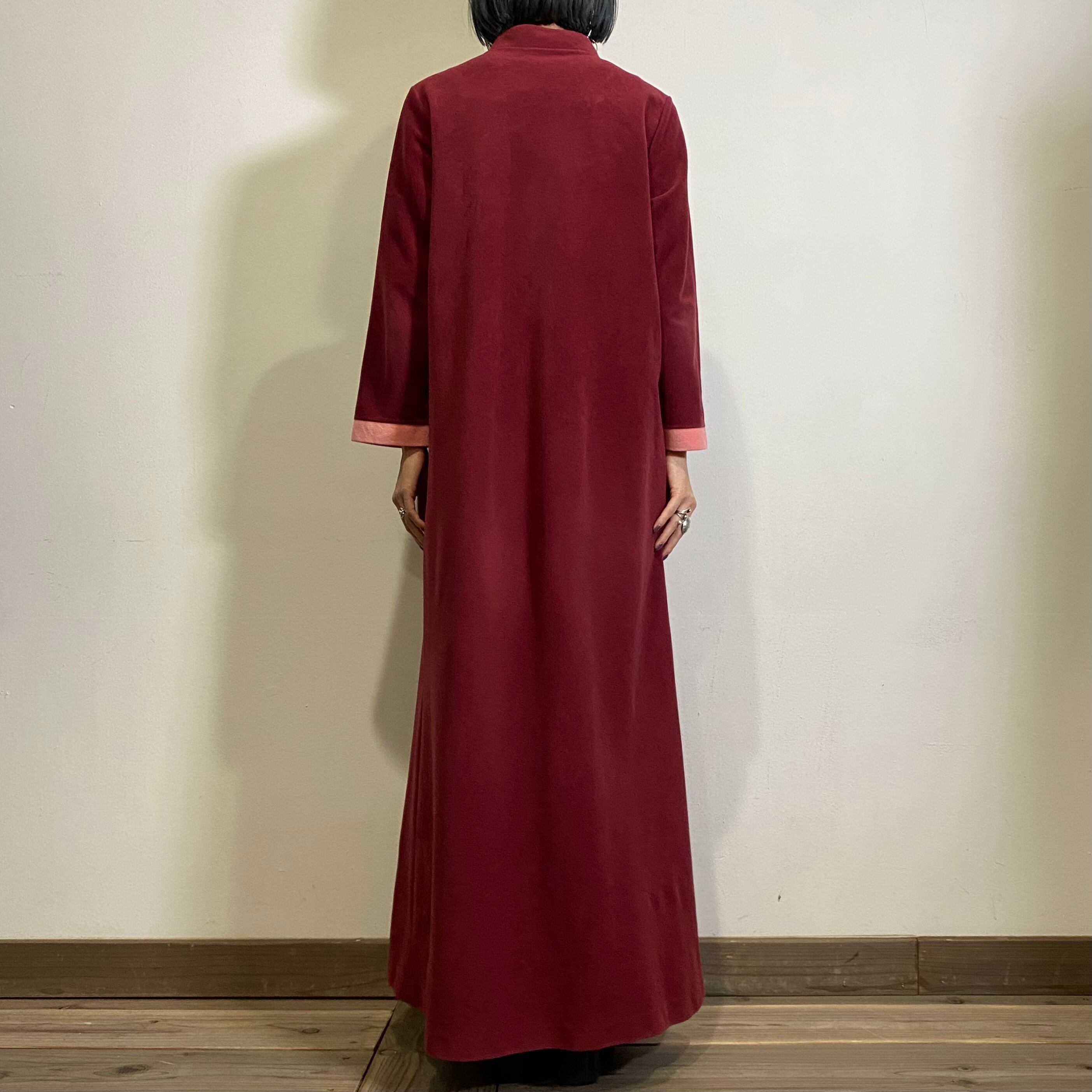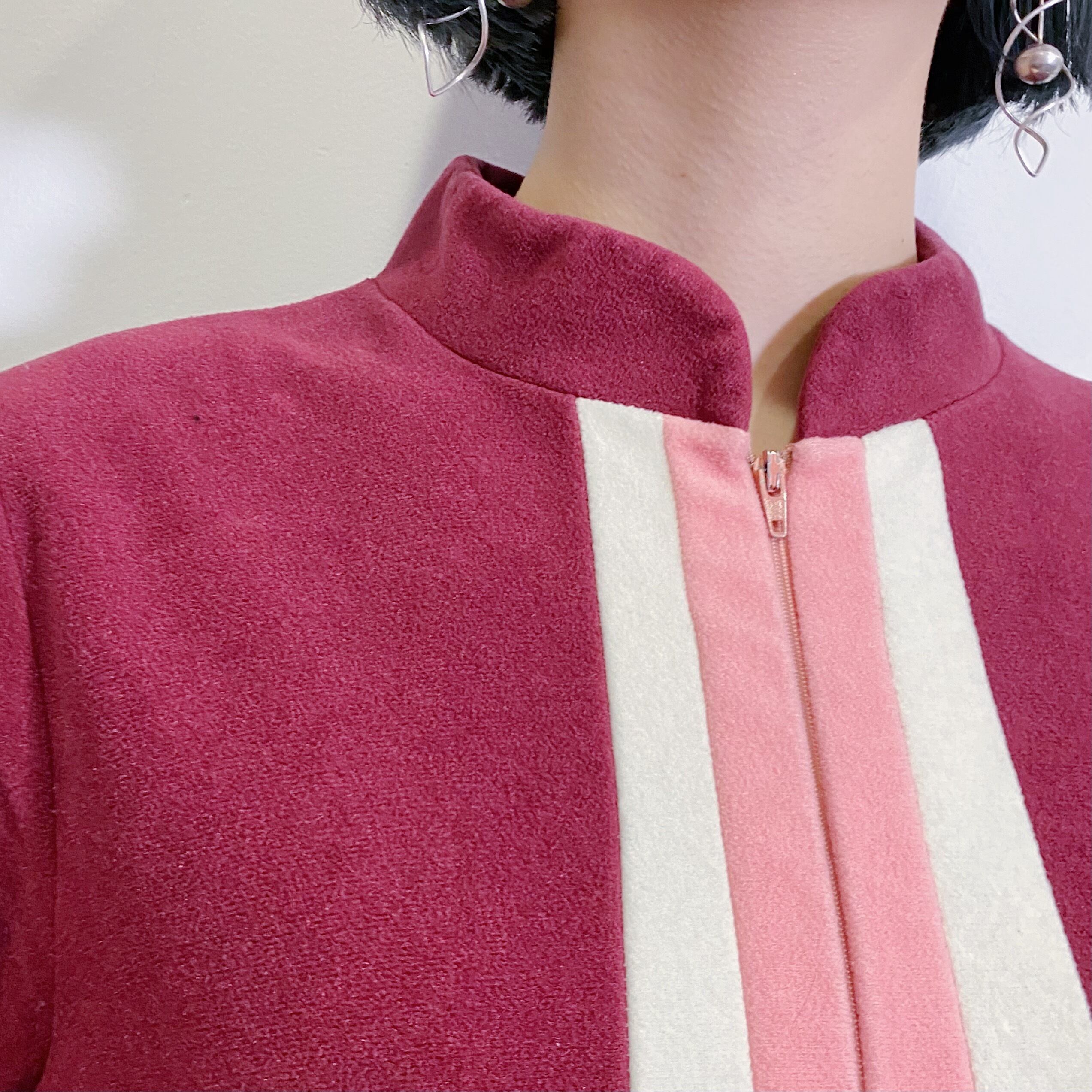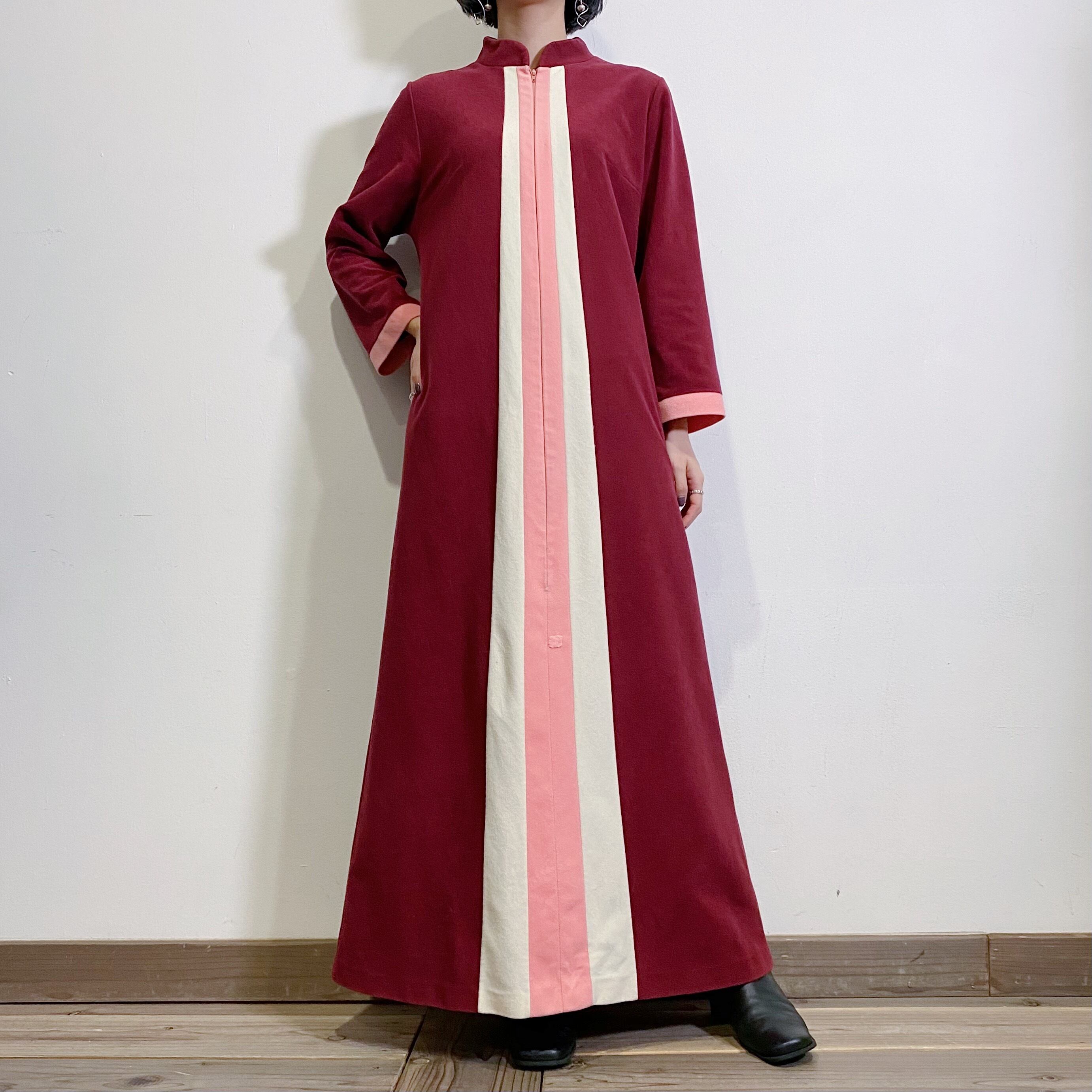 ボルドーカラーにピンクとホワイトラインが素敵な、70年代のJCpennyのワンピースです。