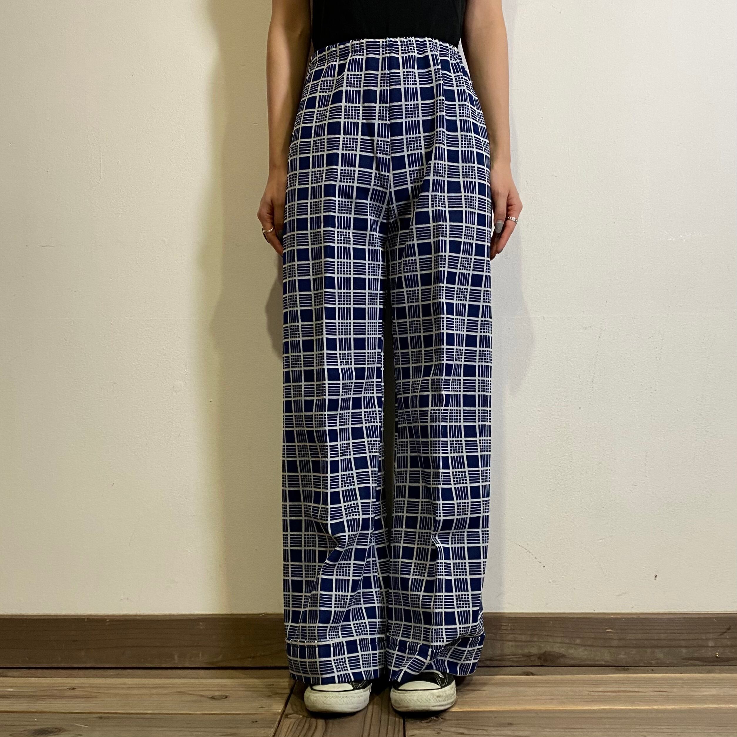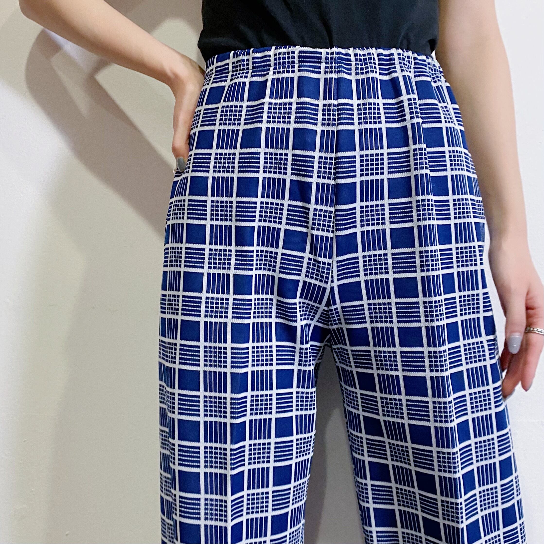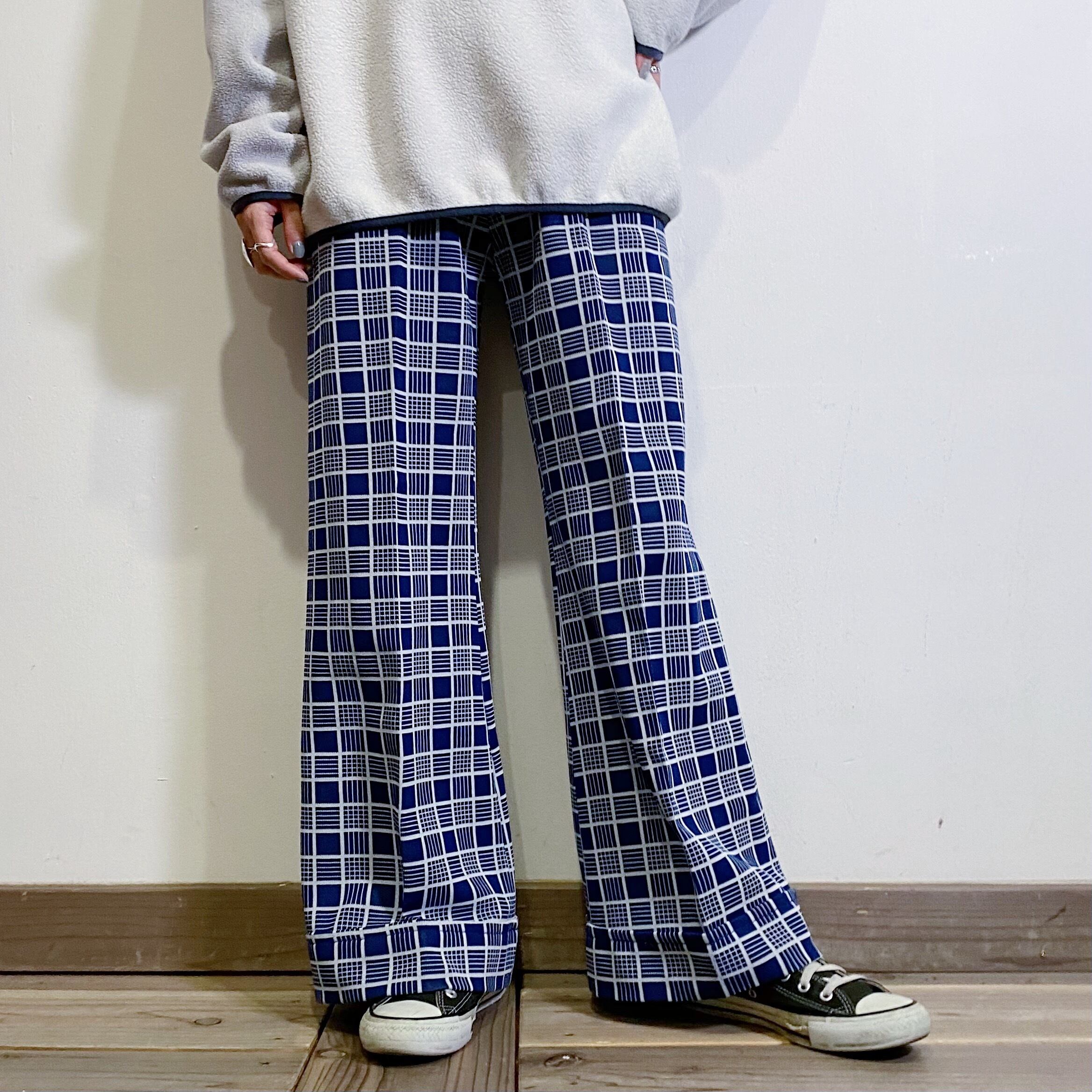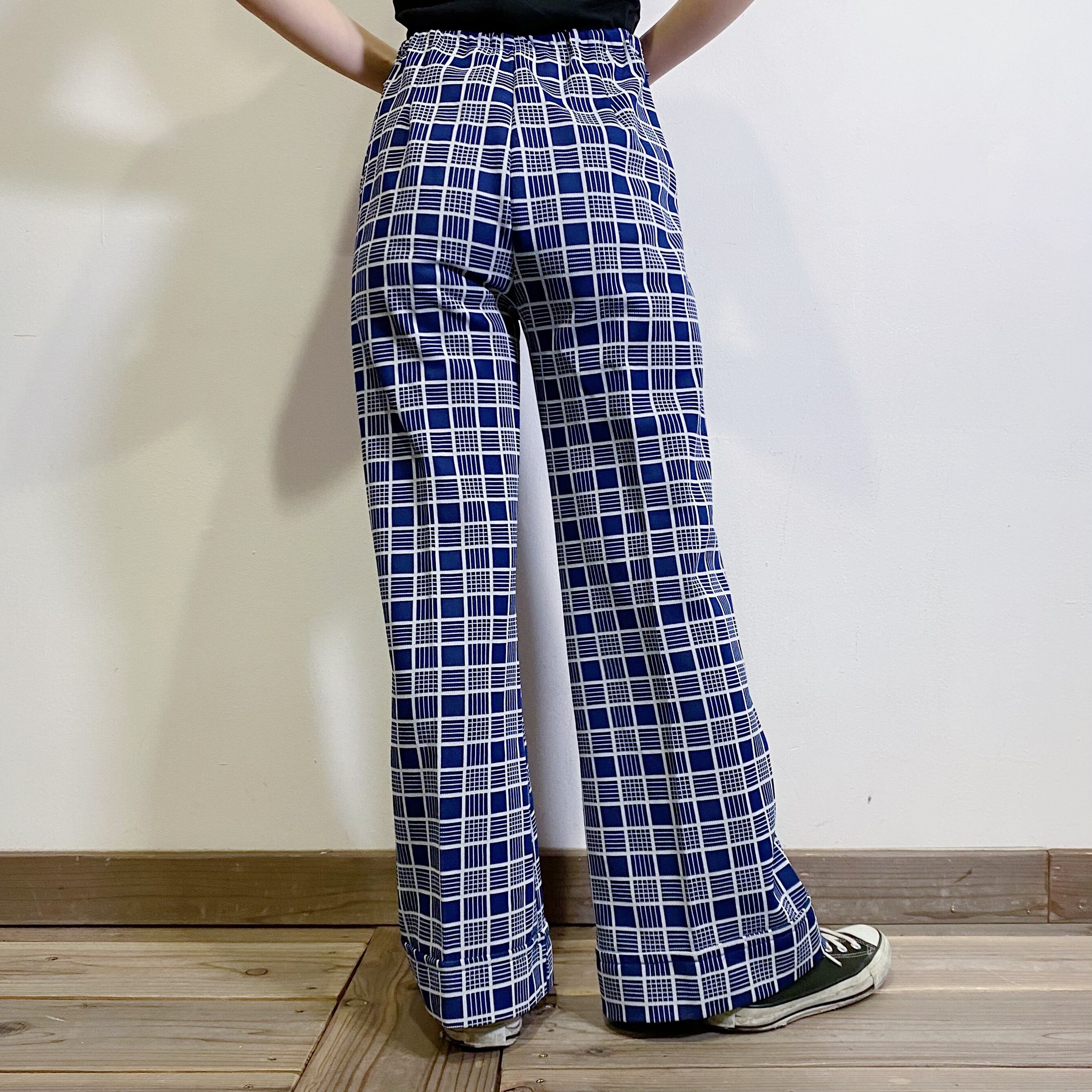ブルーとホワイトのチェックの色合いがかわいい、70年代のフレアパンツです。
