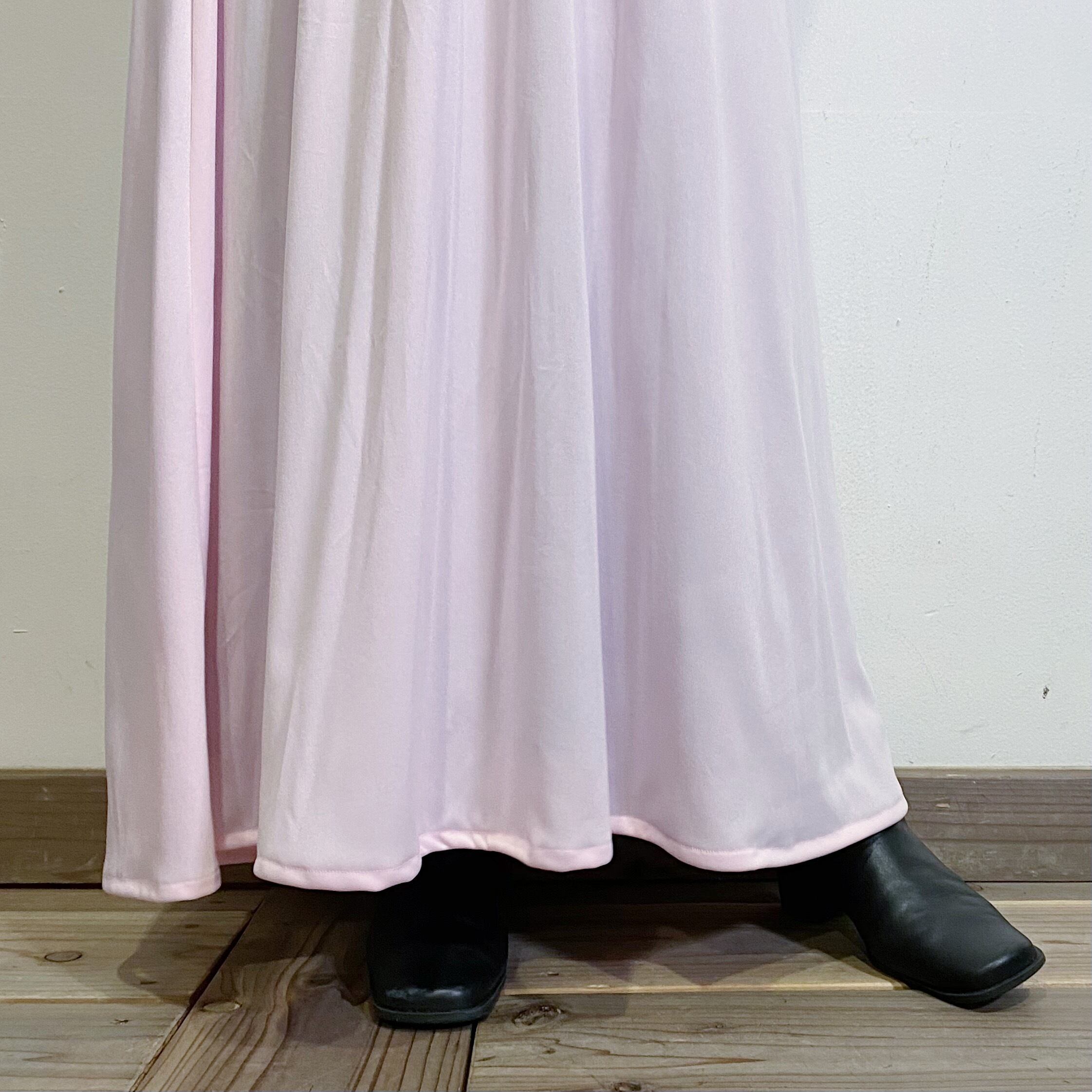 ベビーピンクにボルドーの色合いも魅力的で、胸下切り替えでスタイル良く着こなせますよ。