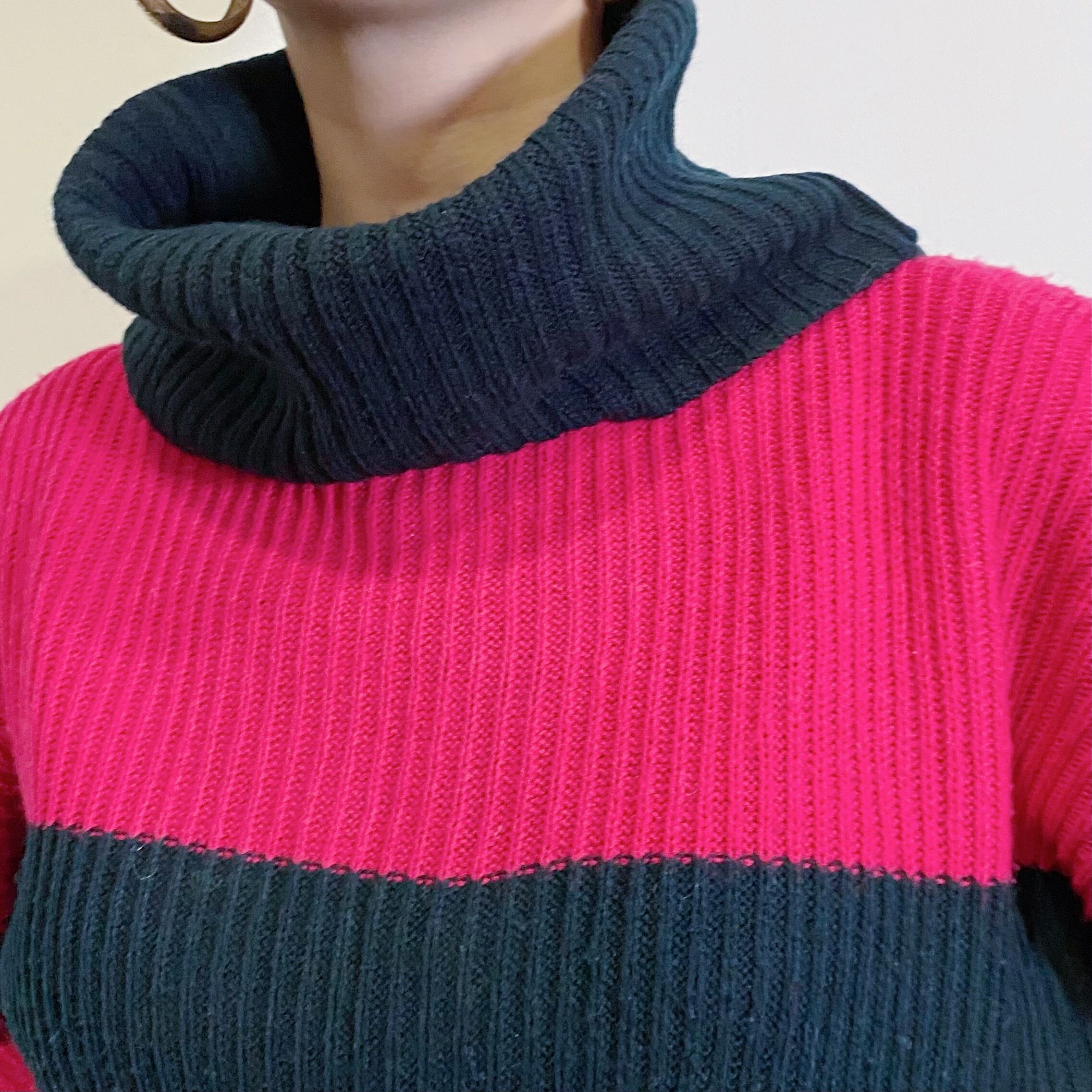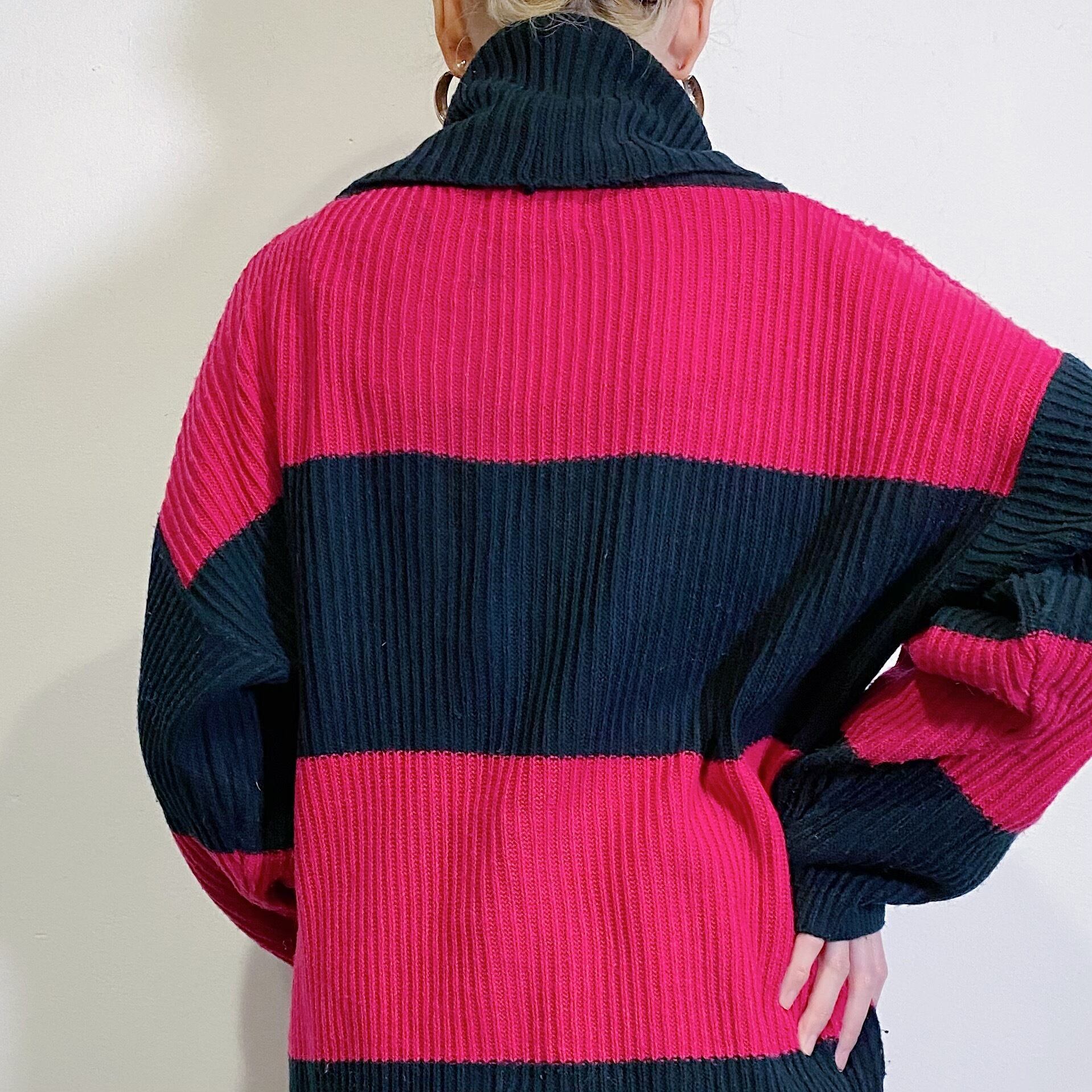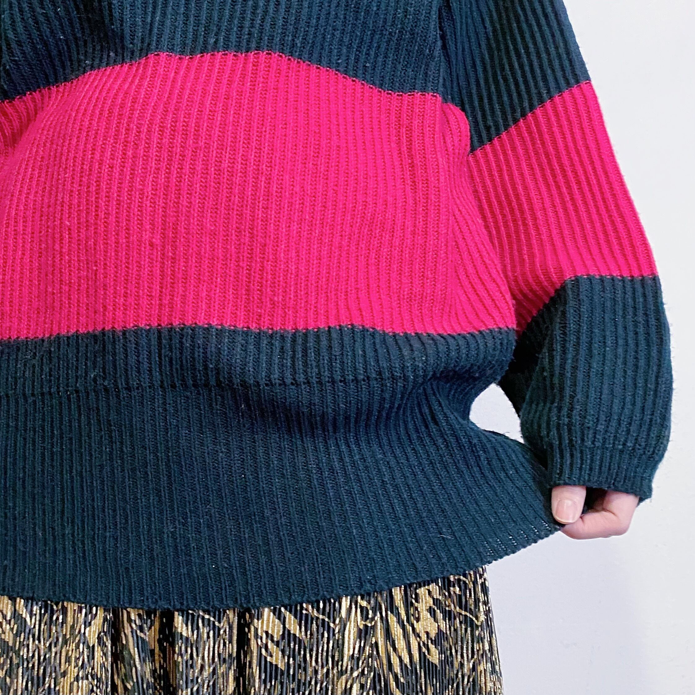 ピンクとブラックのビビットなボーダーが魅力的な、80年代のニットです。