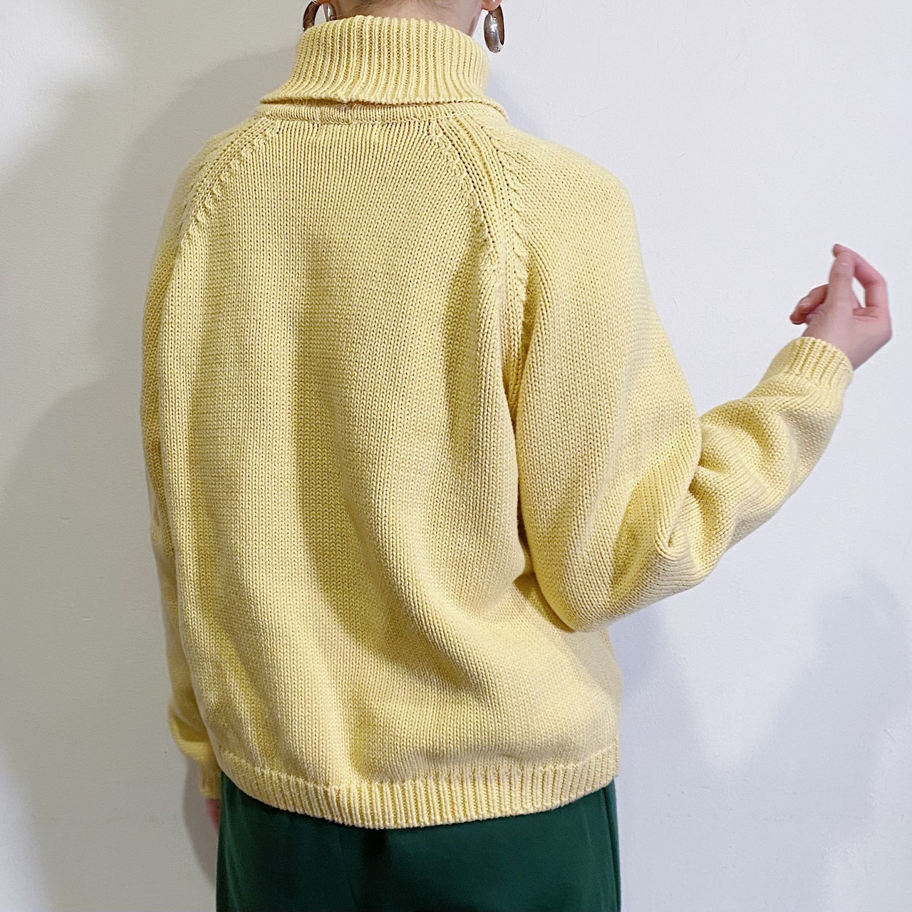 優しい色合いのイエローが可愛い、ハイネックセーターです。