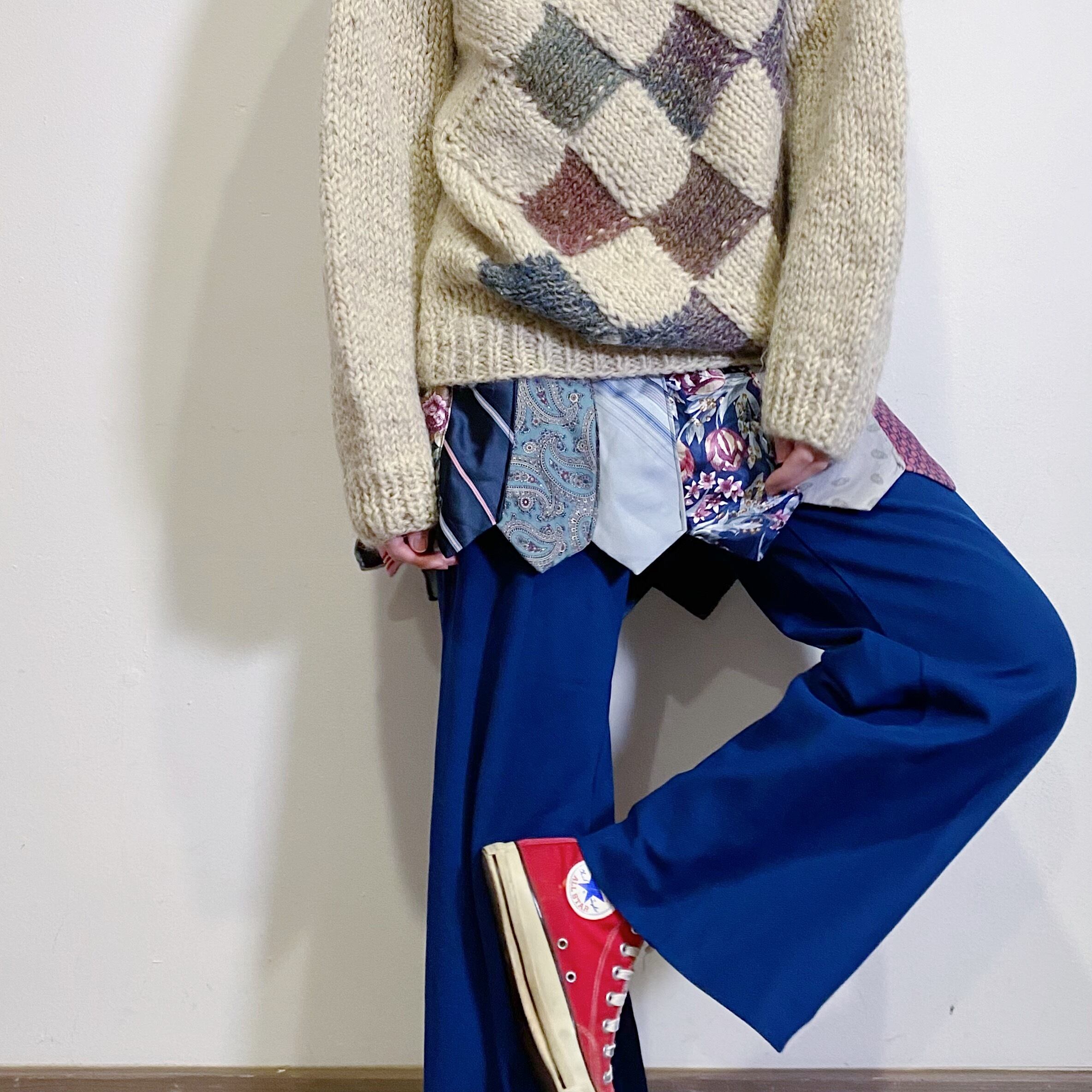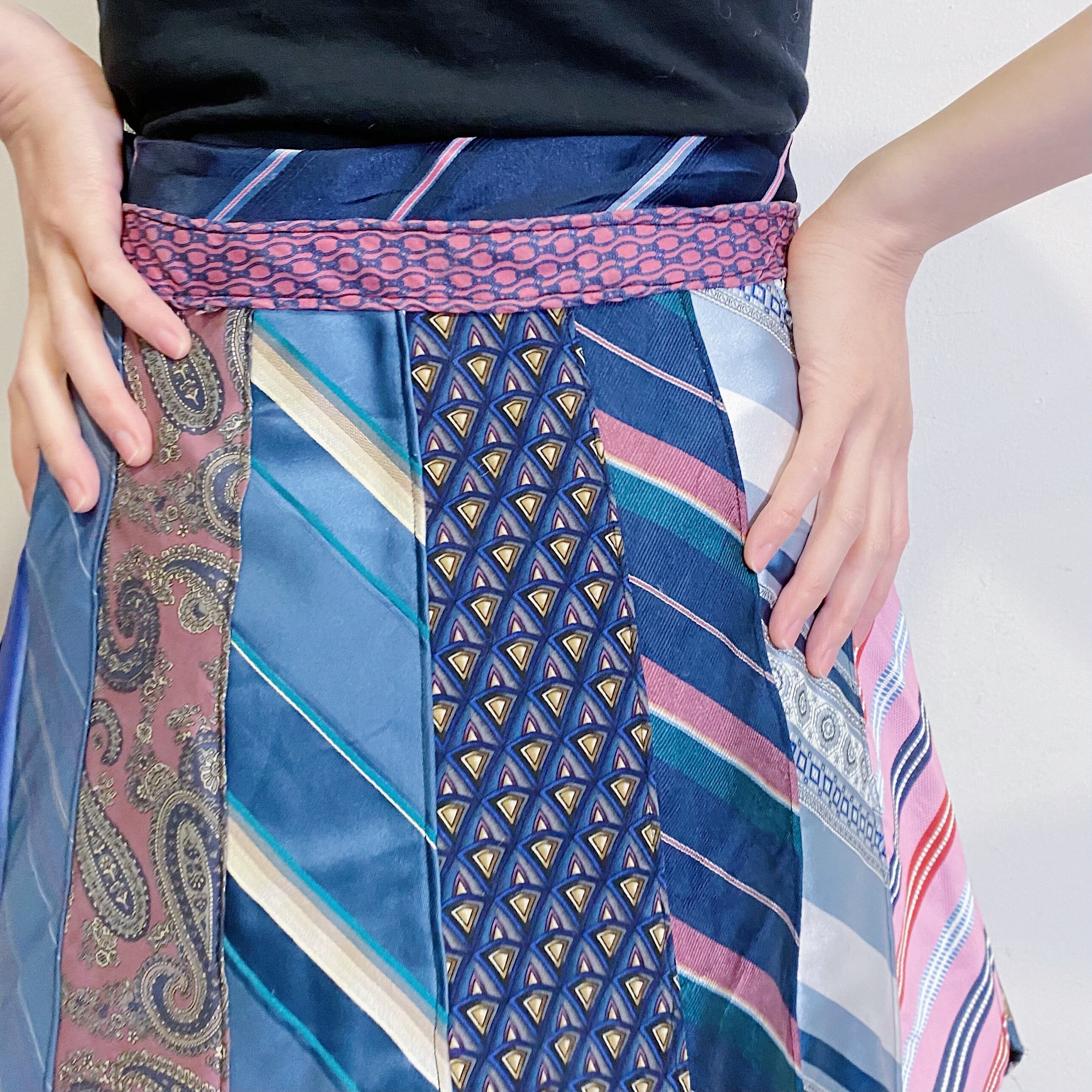 ネクタイを繋いでリメイクされたキュートなミニスカートです。