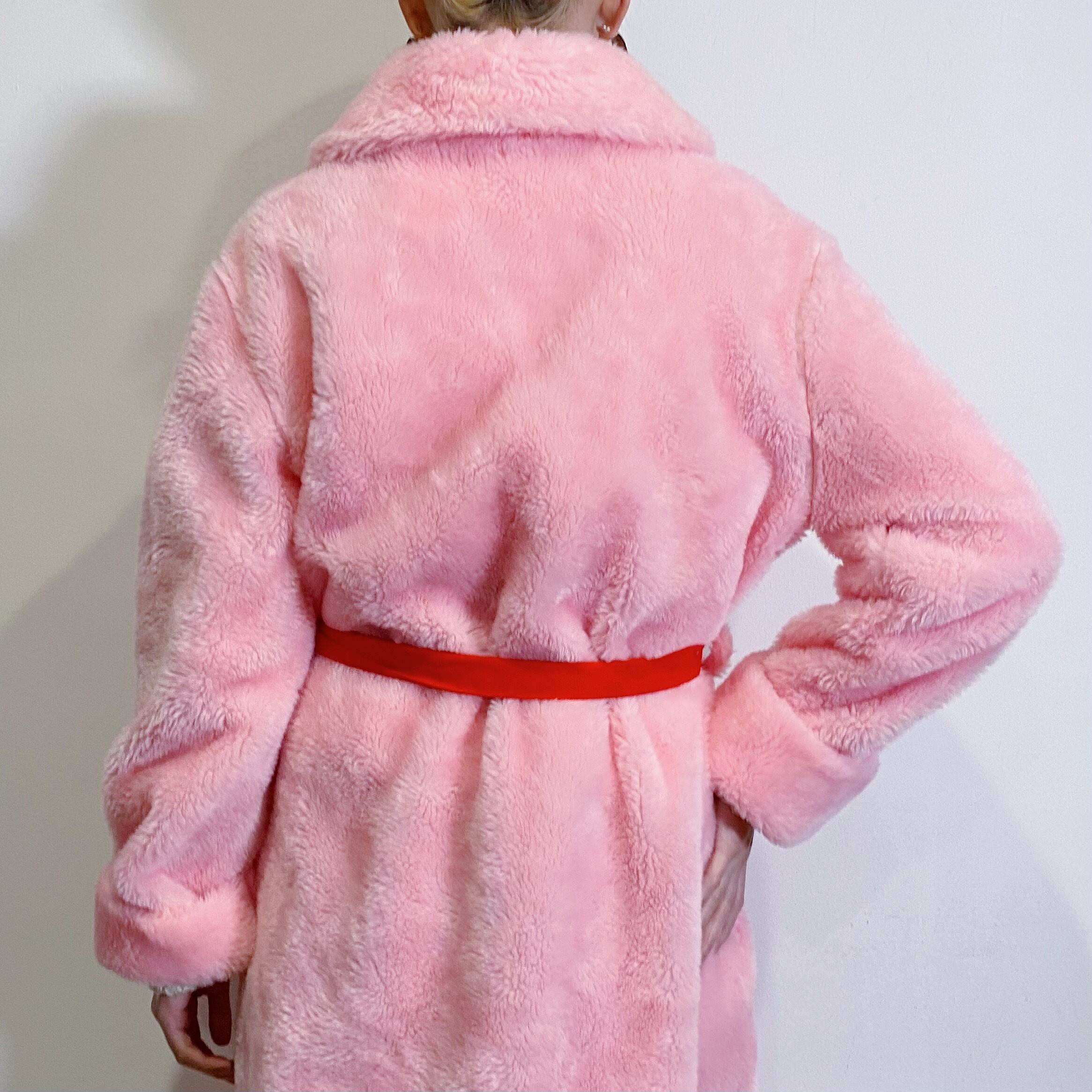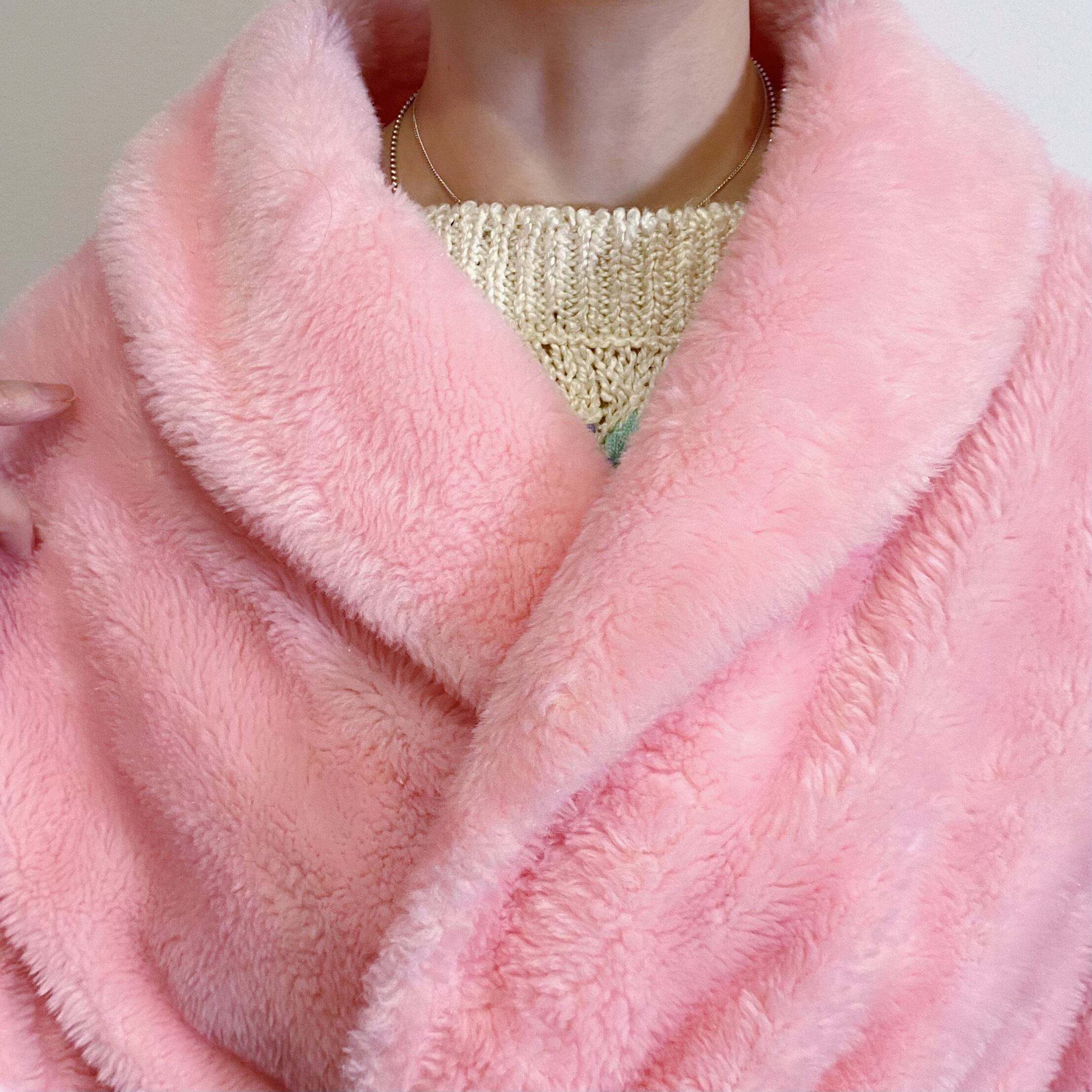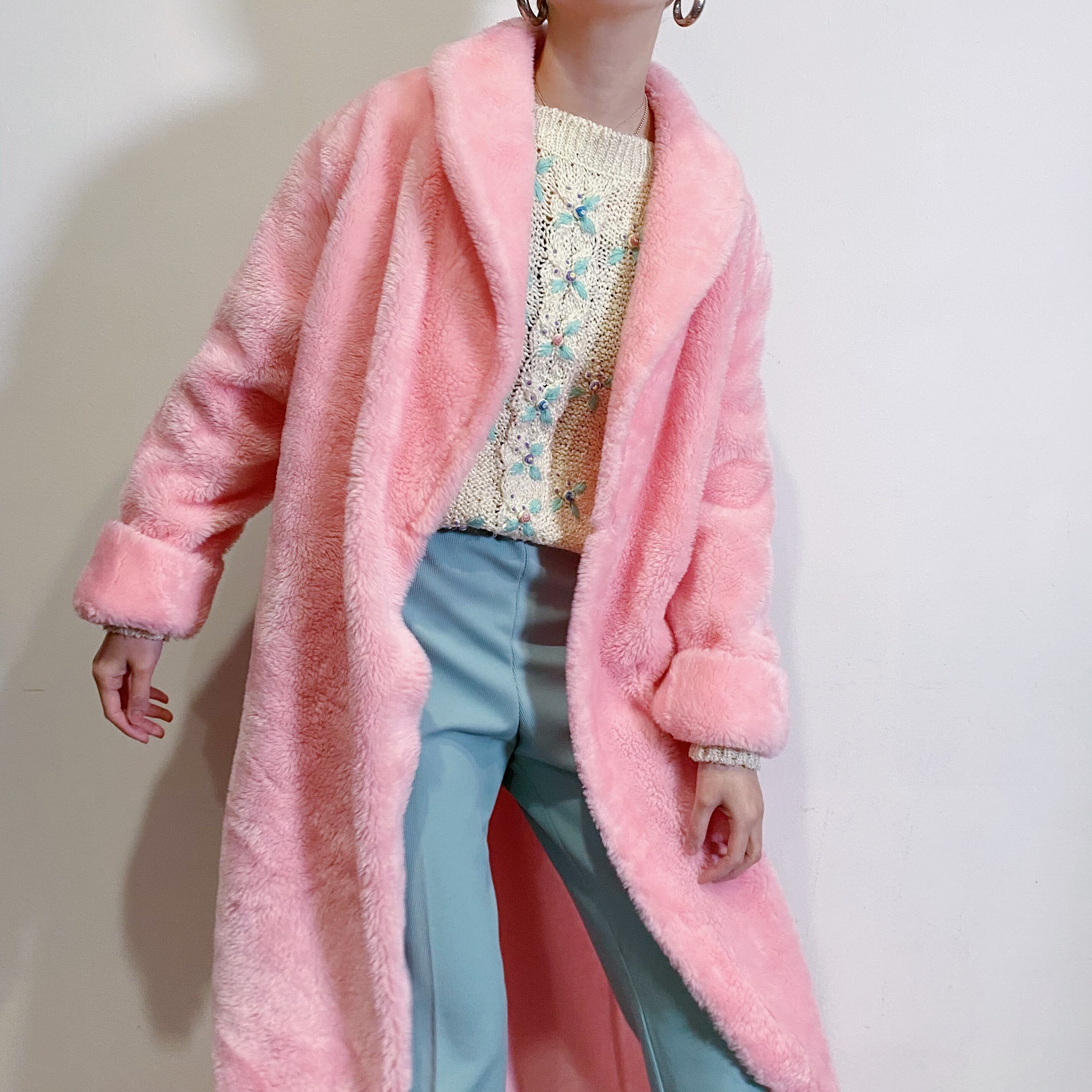 肌触りの良いキュートなピンクのエコファーが可愛い、80年代頃のガウンです。