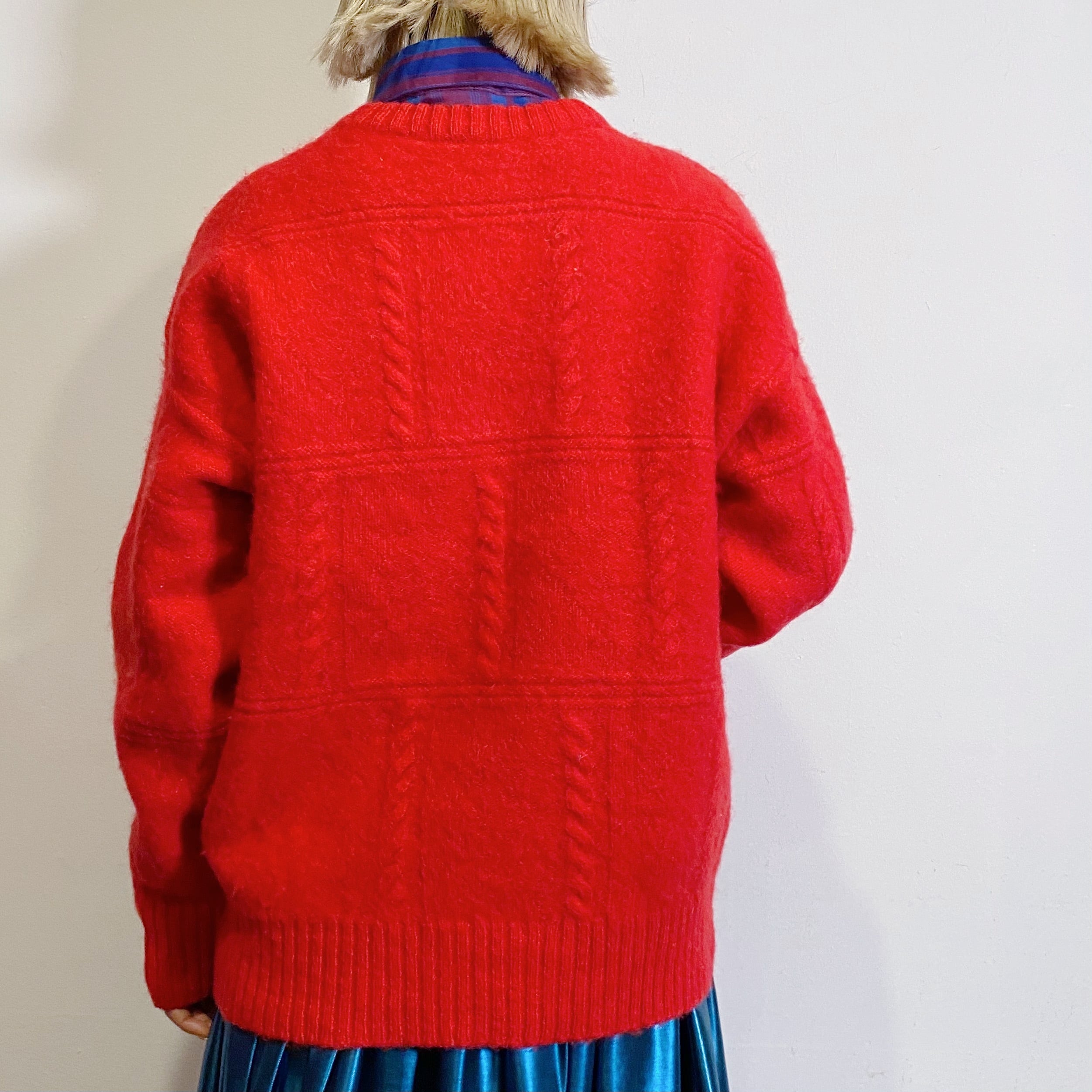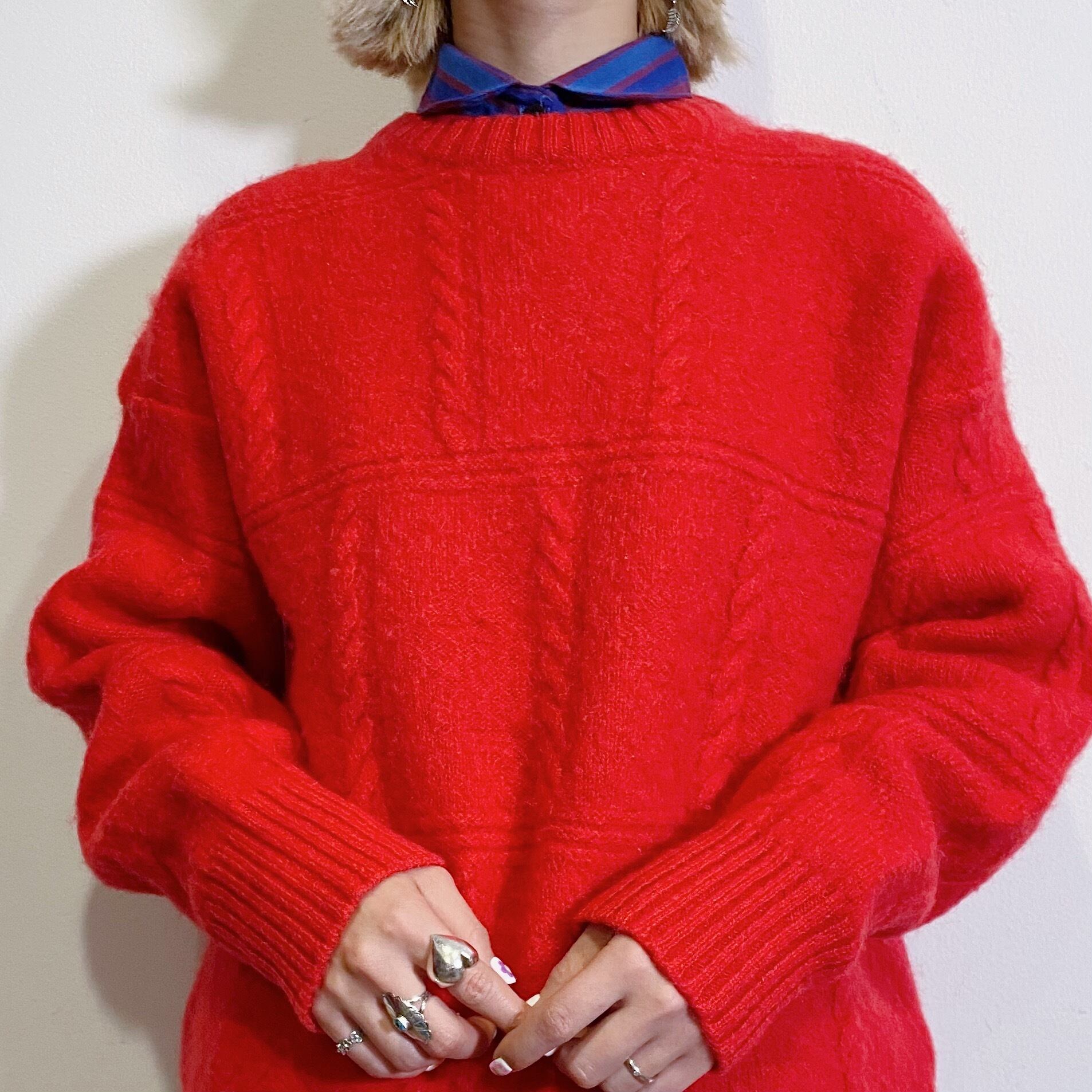 鮮やかなレッドカラーが目を惹く、ウール素材のセーターです。