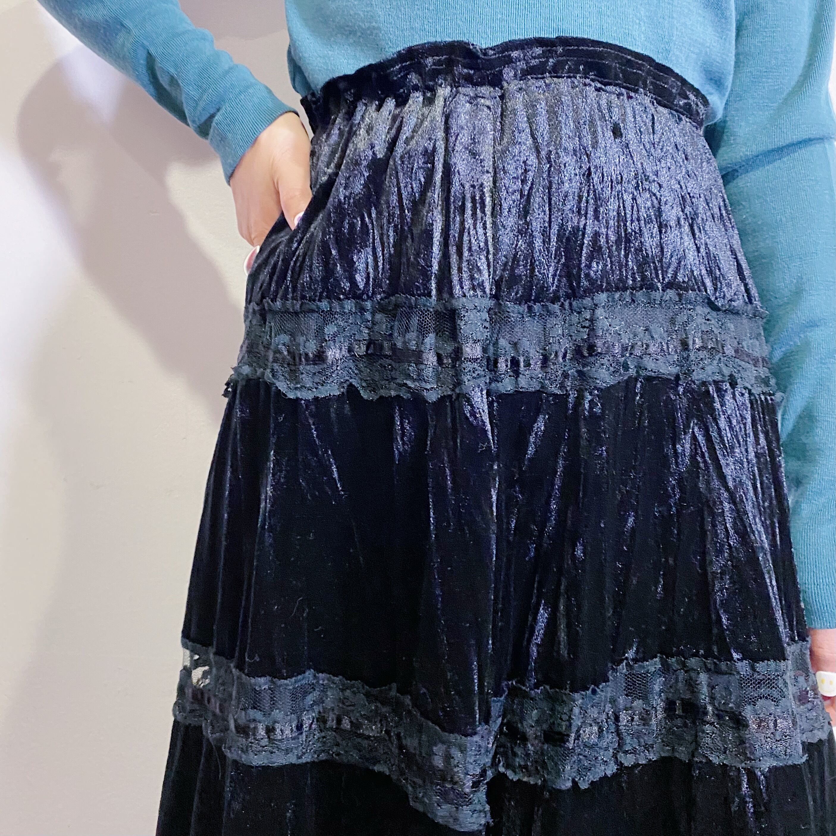 ベロア素材とレースがティアードになった、とってもかわいい90年代のロングスカートです。