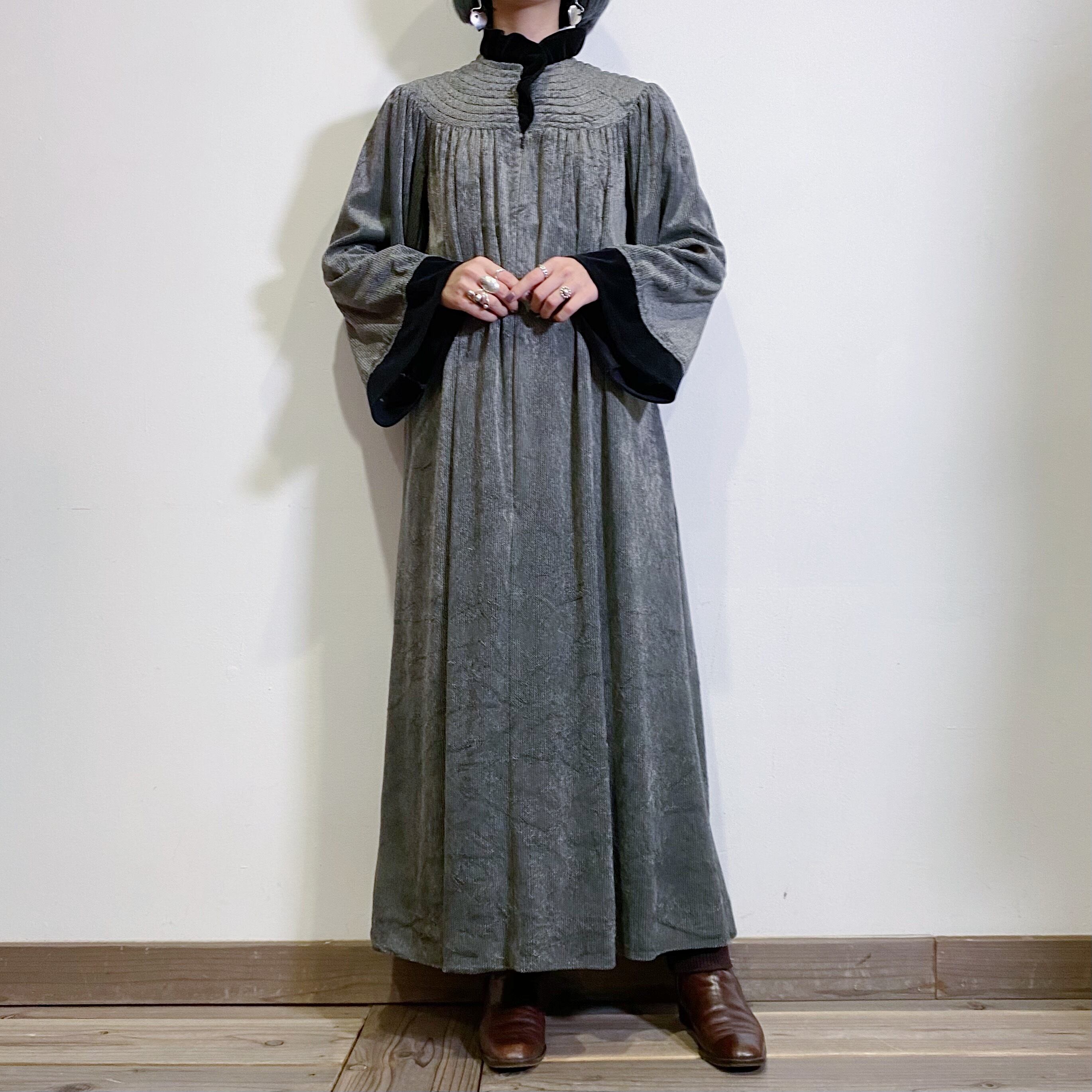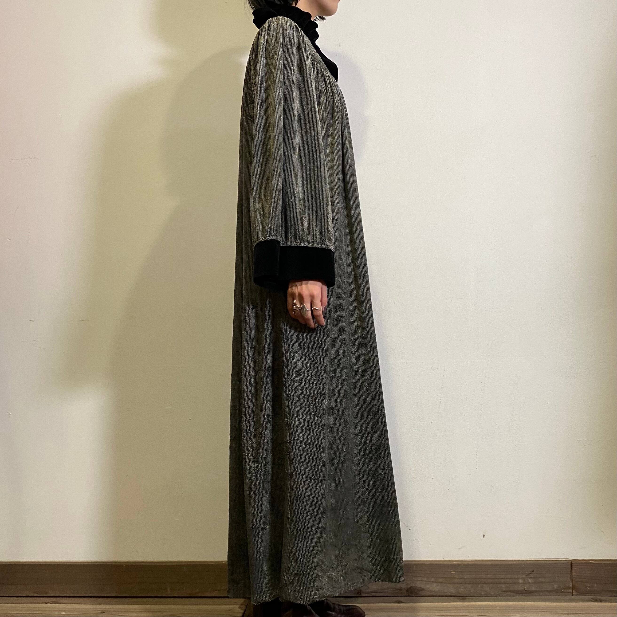 モノトーンカラーが大人可愛い、70‐80年代のベロアワンピースです。