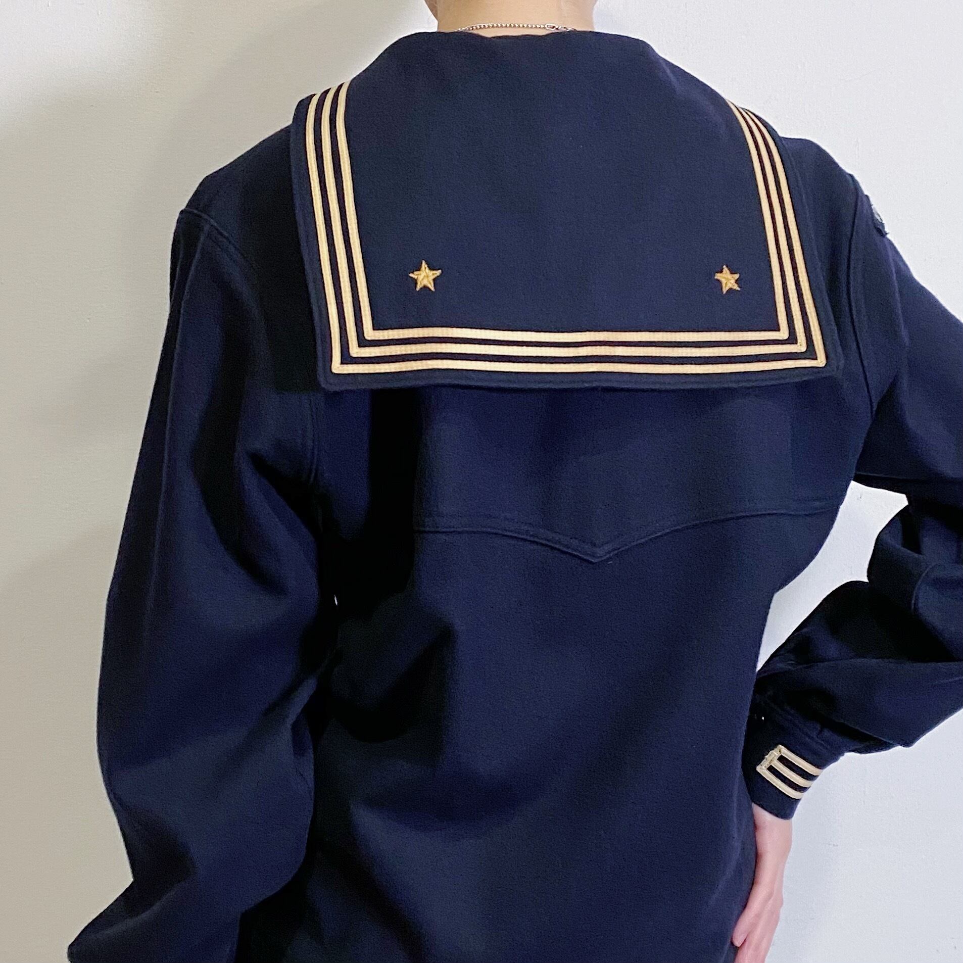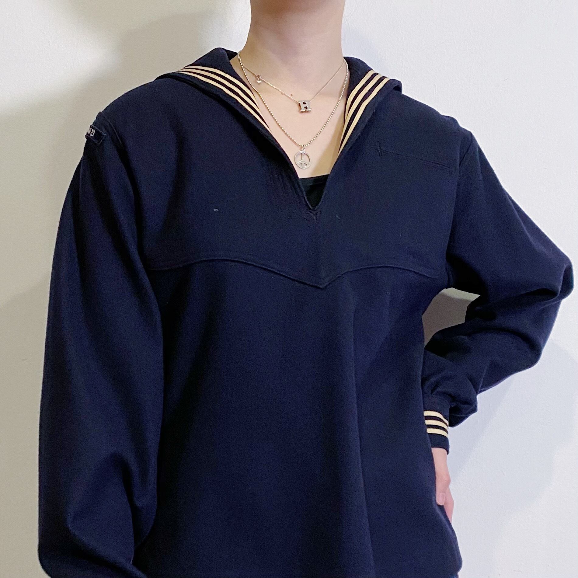 アメリカ海軍で実際に使われていた、セーラーカラーが可愛いウールマリントップです。