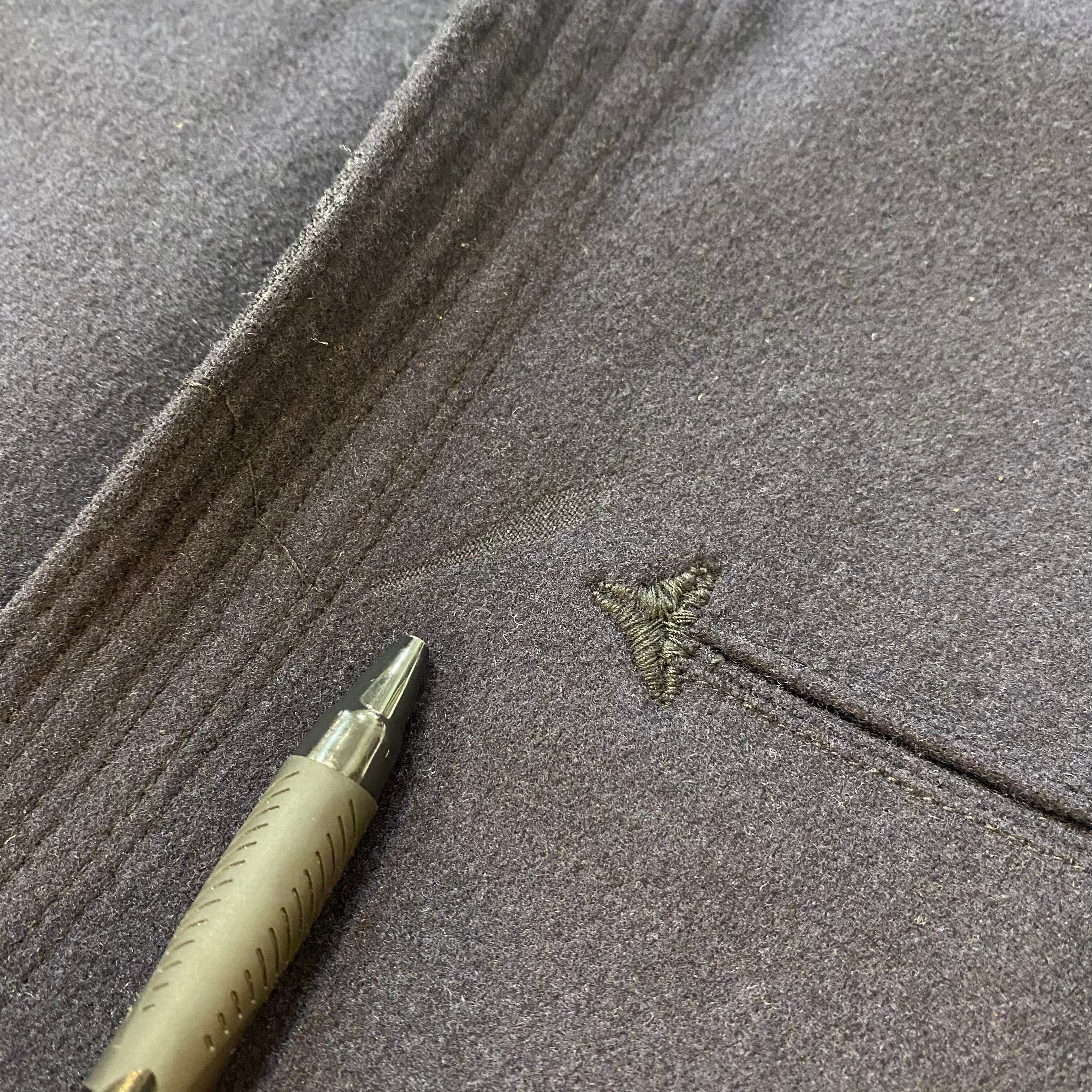 ペン先ほどの小さな穴を裏から接着芯で塞いだ跡が見受けられます。
