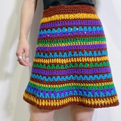 ブラウンベースにカラフルな色合わせが可愛い、70年代のグラニーニットスカートです。