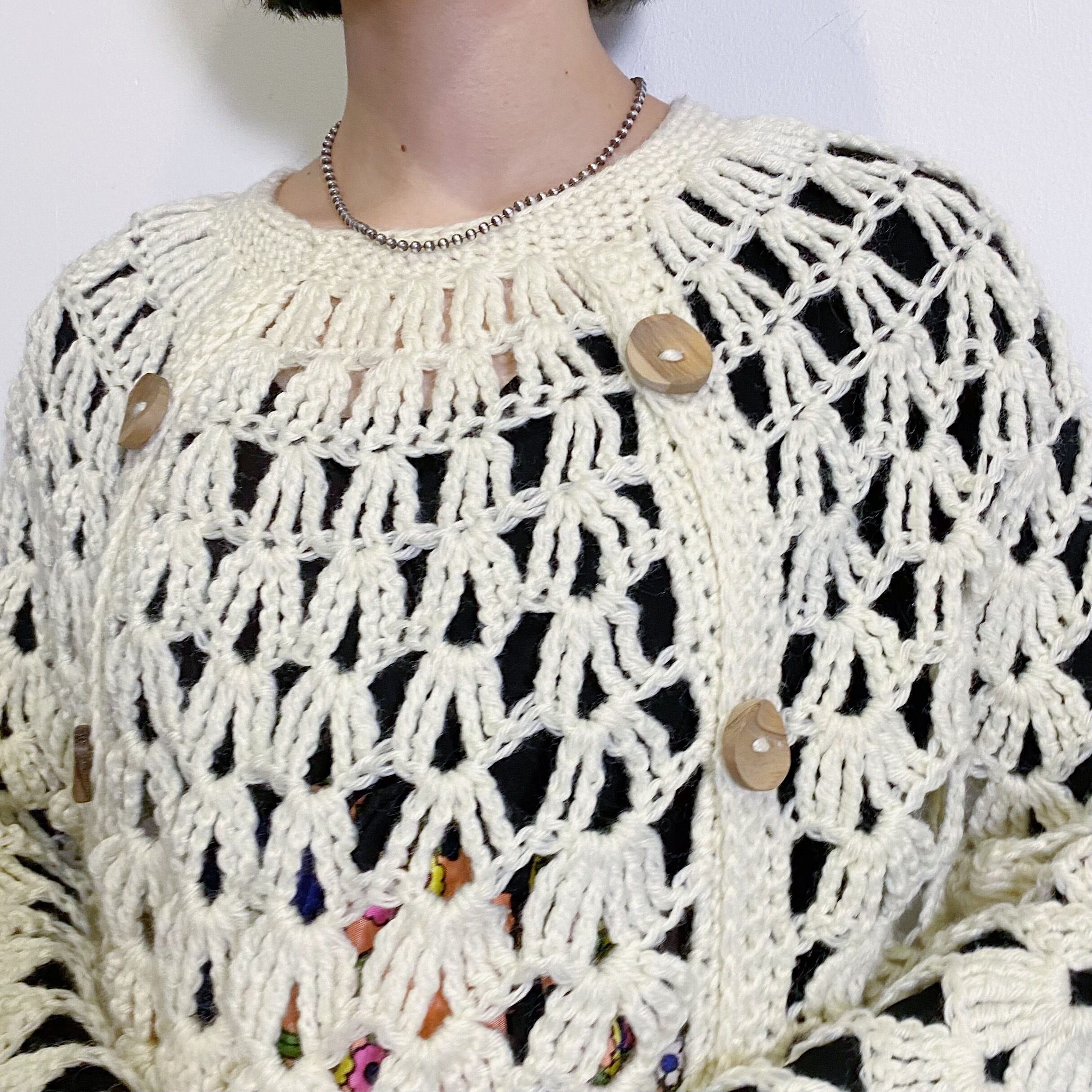 ホワイトベースで使い勝手の良さそうな70年代の手編みのポンチョです。