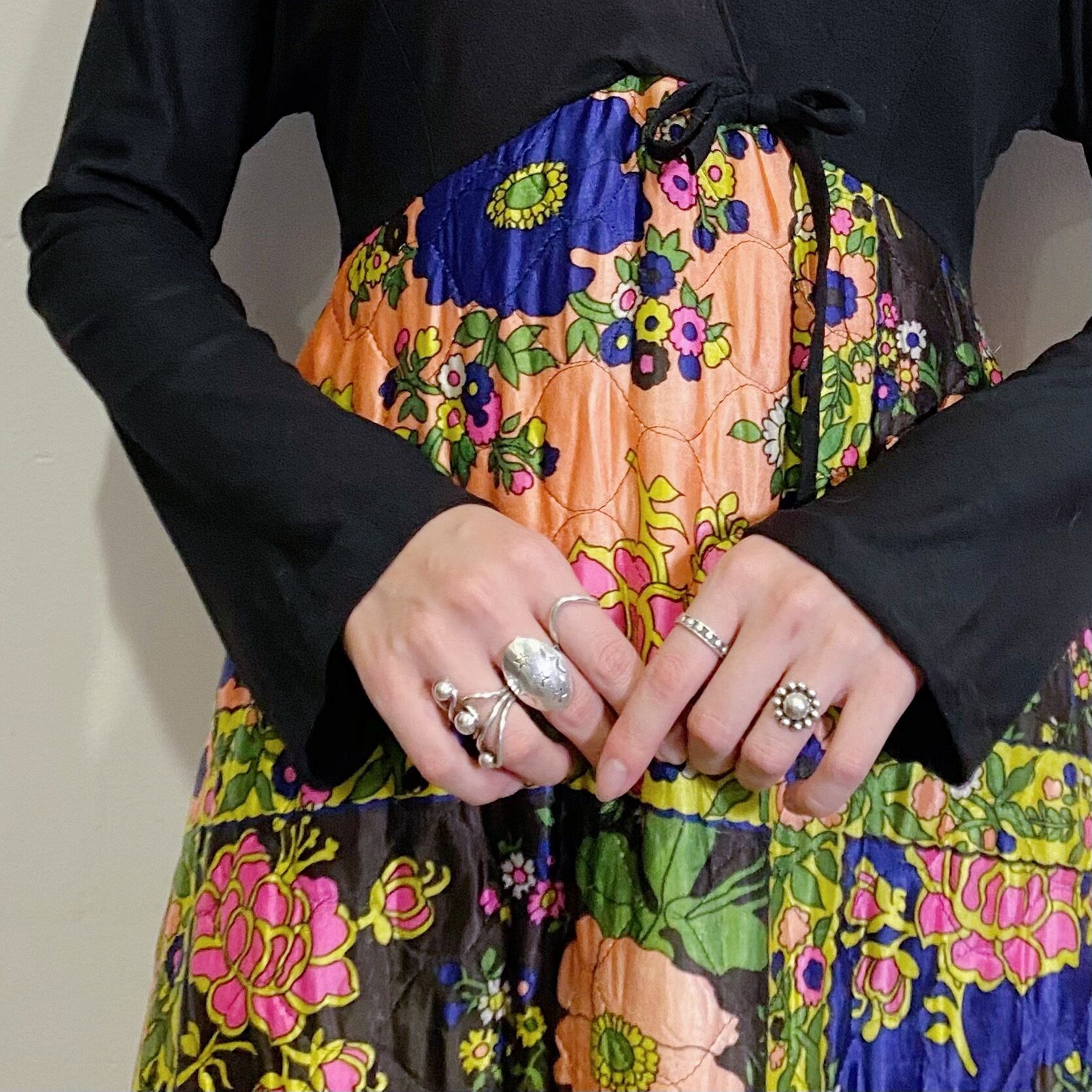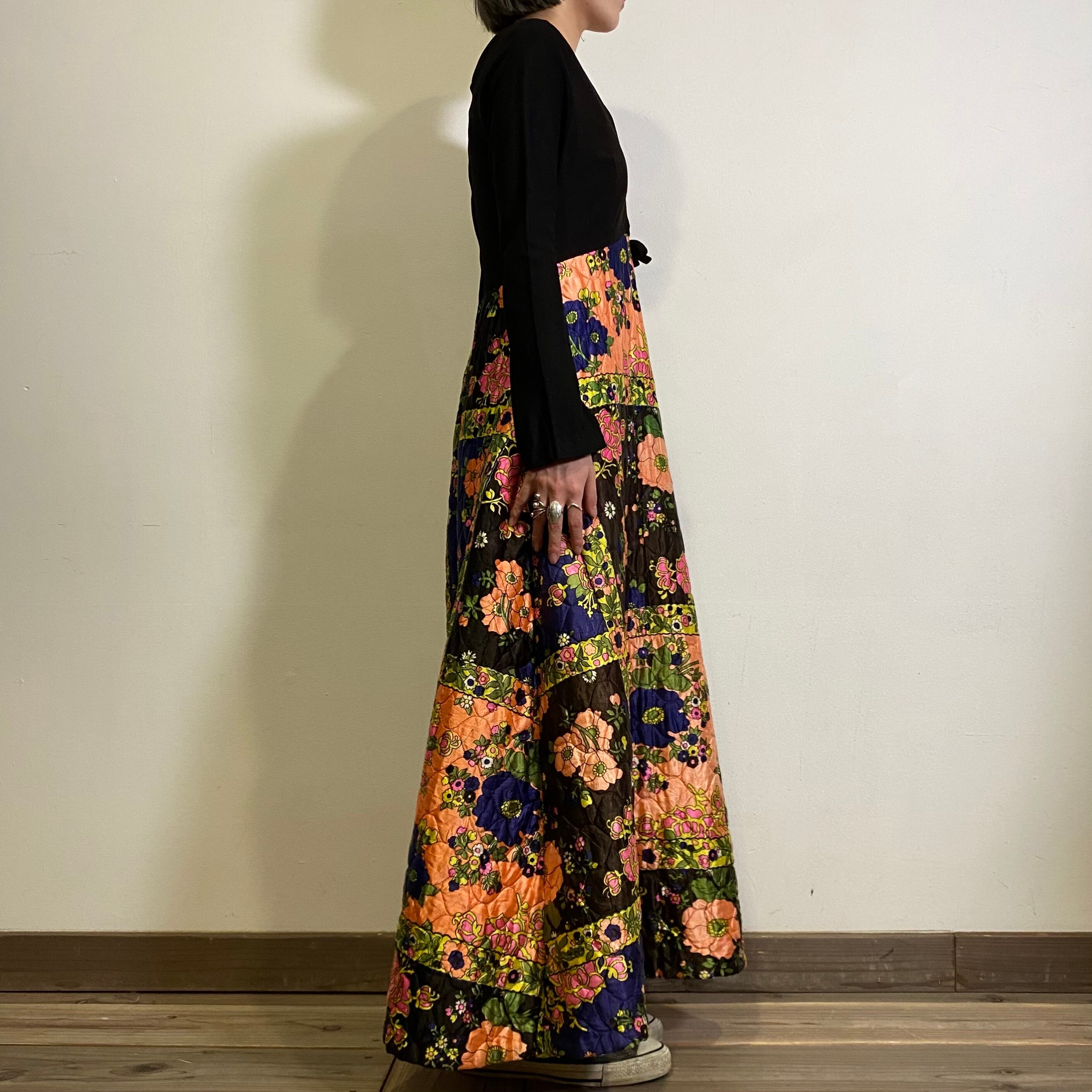 サテン地のキルティングスカート部分がとっておきに可愛い60年代のワンピースです。