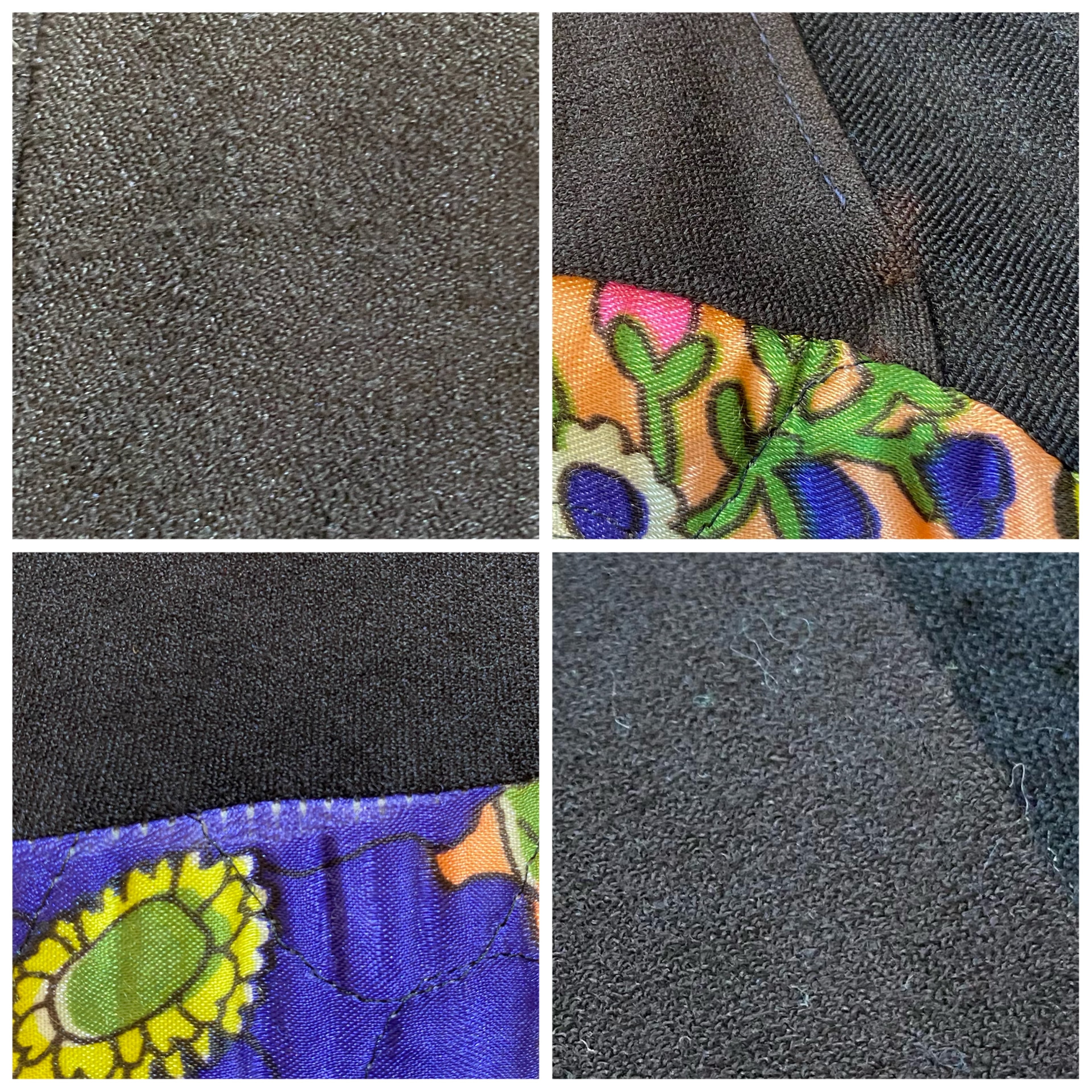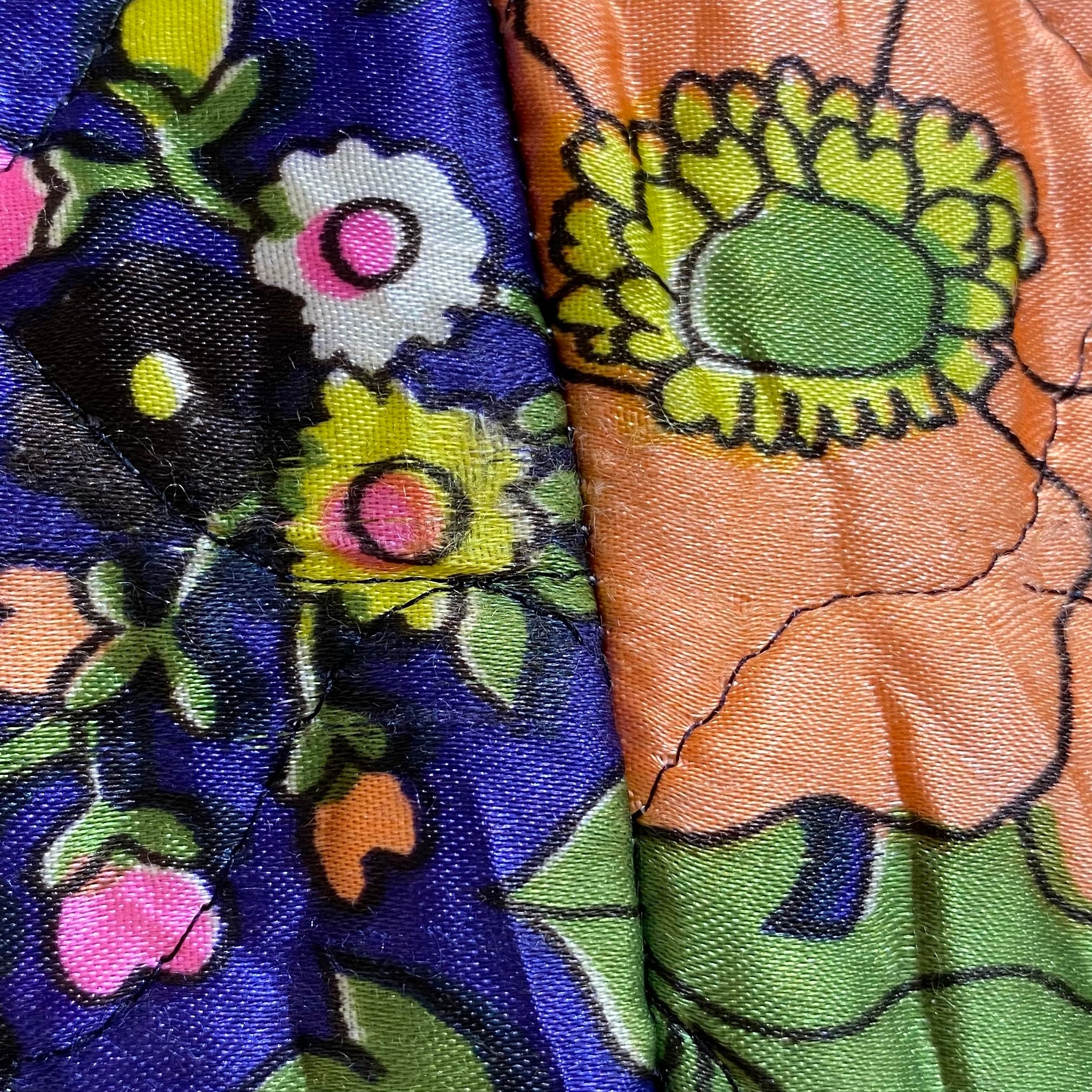 生地に色褪せが見受けられるほか、キルトのステッチがほつれている箇所がございますが、柄に紛れてあまり気にならない程度かと思われます。
