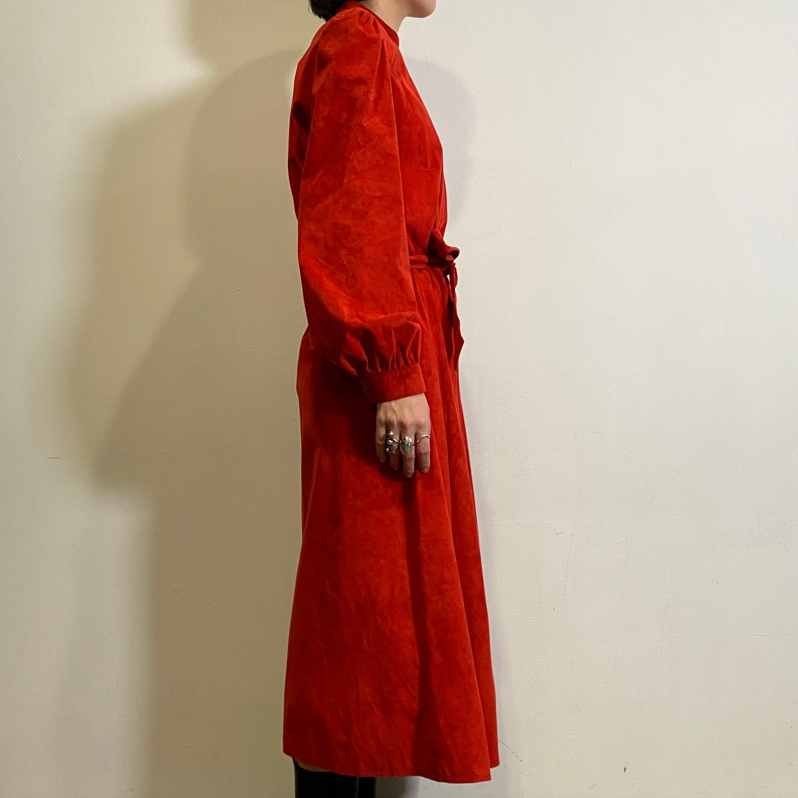 朱赤のリアルスエード素材が素敵な、80年代のワンピースです。