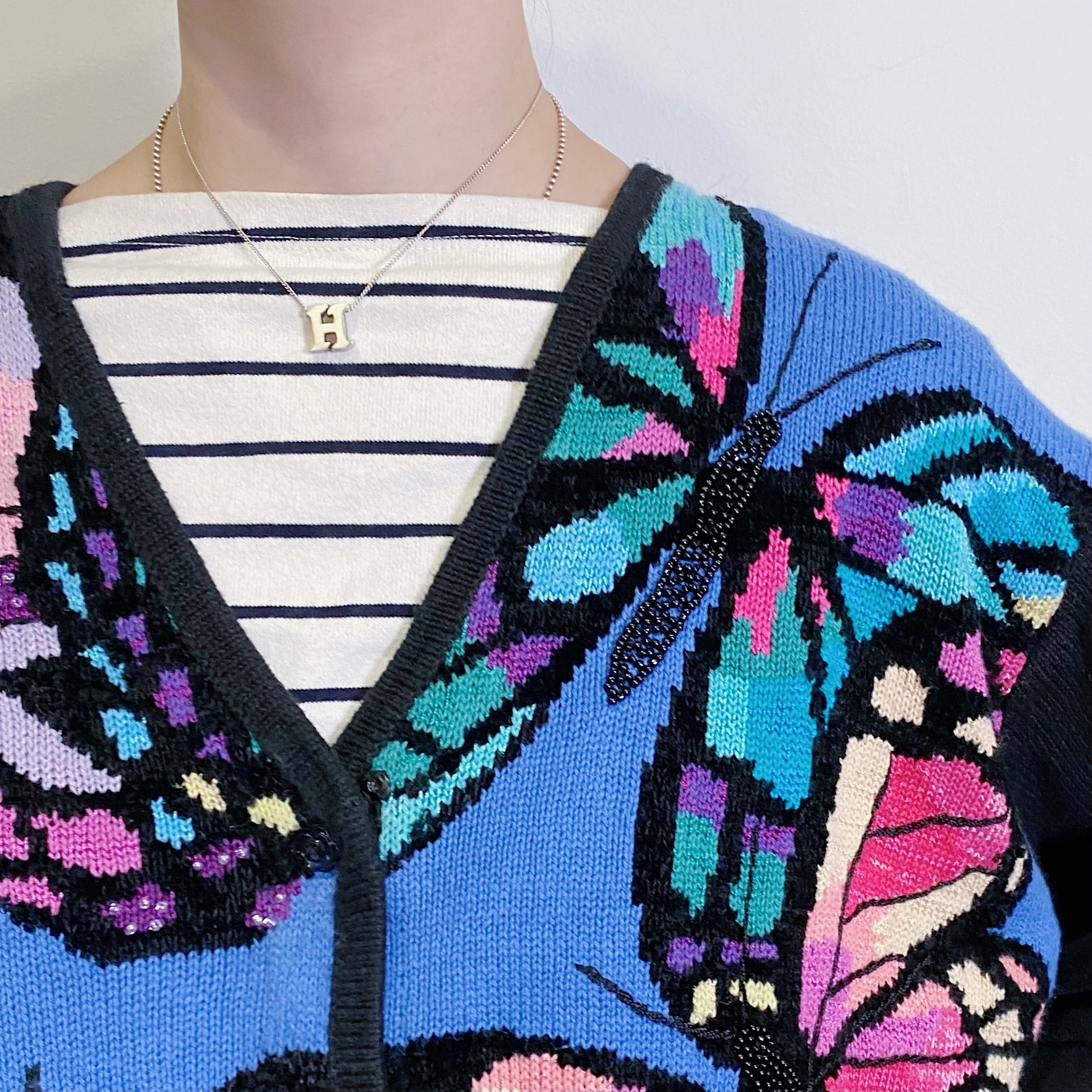 フロントの蝶々モチーフが可愛い80年代のコットンカーディガンです。