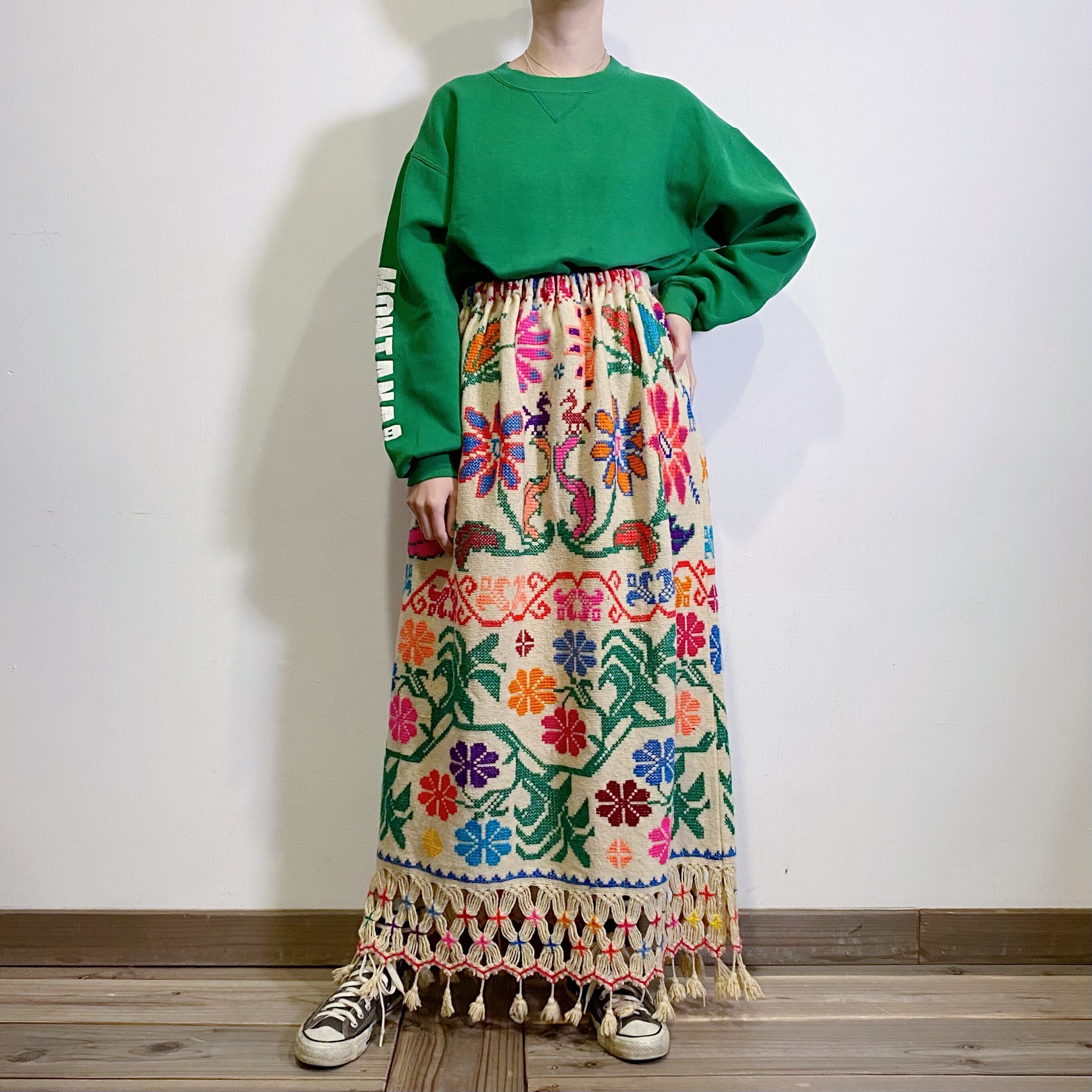 グリーンベースに袖のプリントがイケている80年代のスーベニアスウェットです。