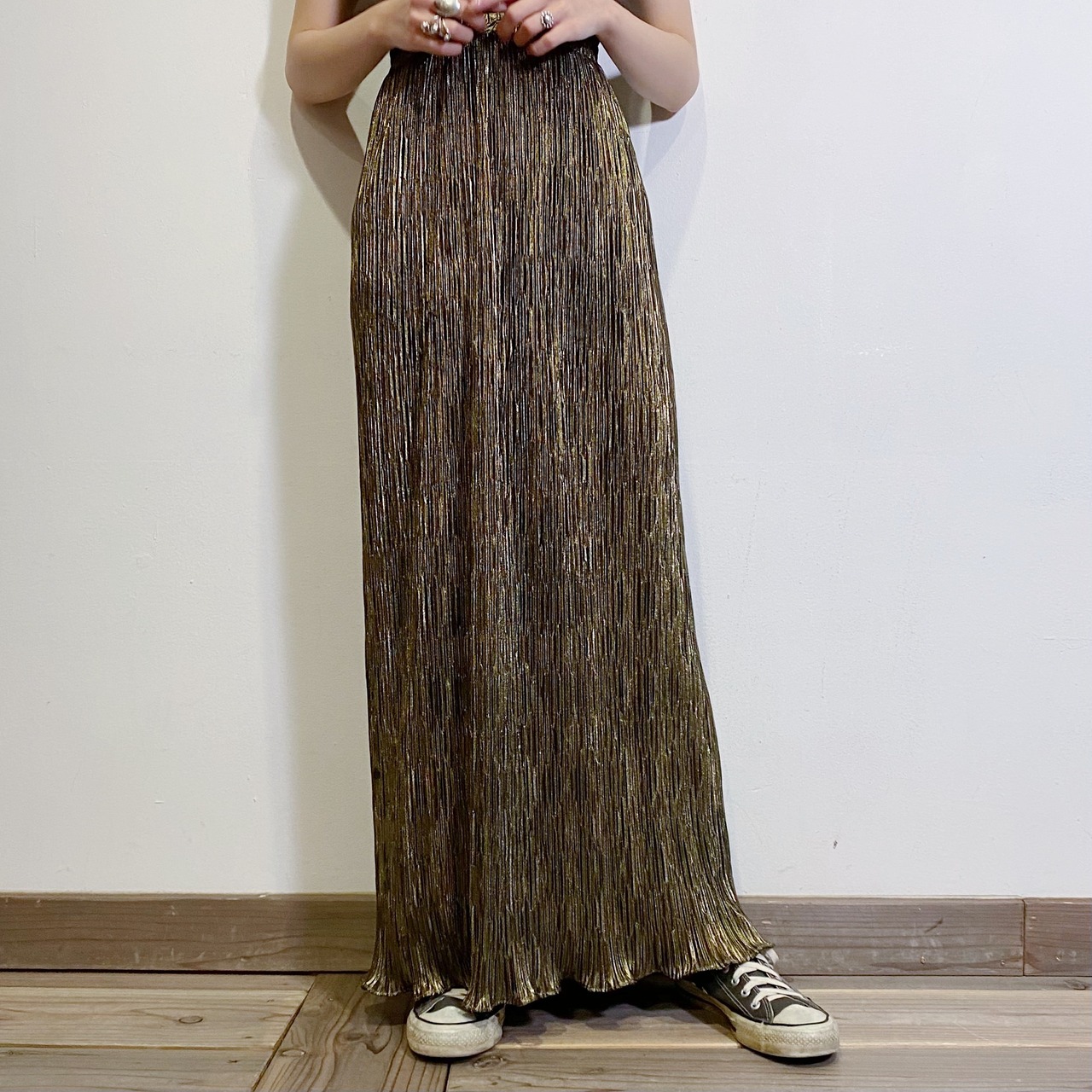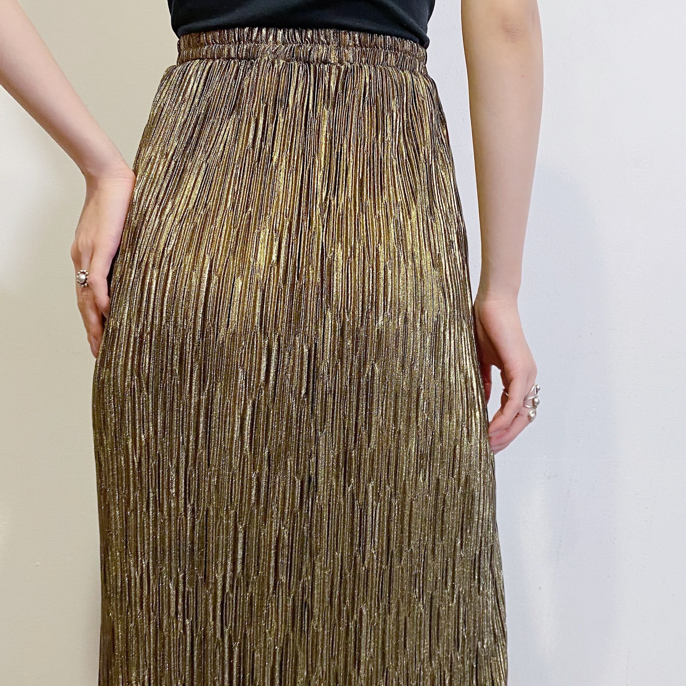ゴールドベースにプリーツ加工が可愛い、80年代のロングスカートです。