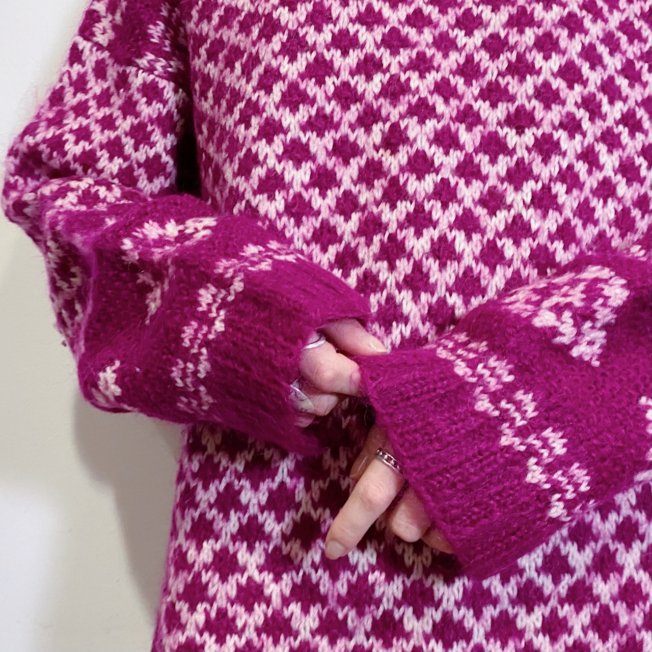 パープルとピンクの中間のような絶妙な色合いが可愛い、80年代のハイネックセーターです。
