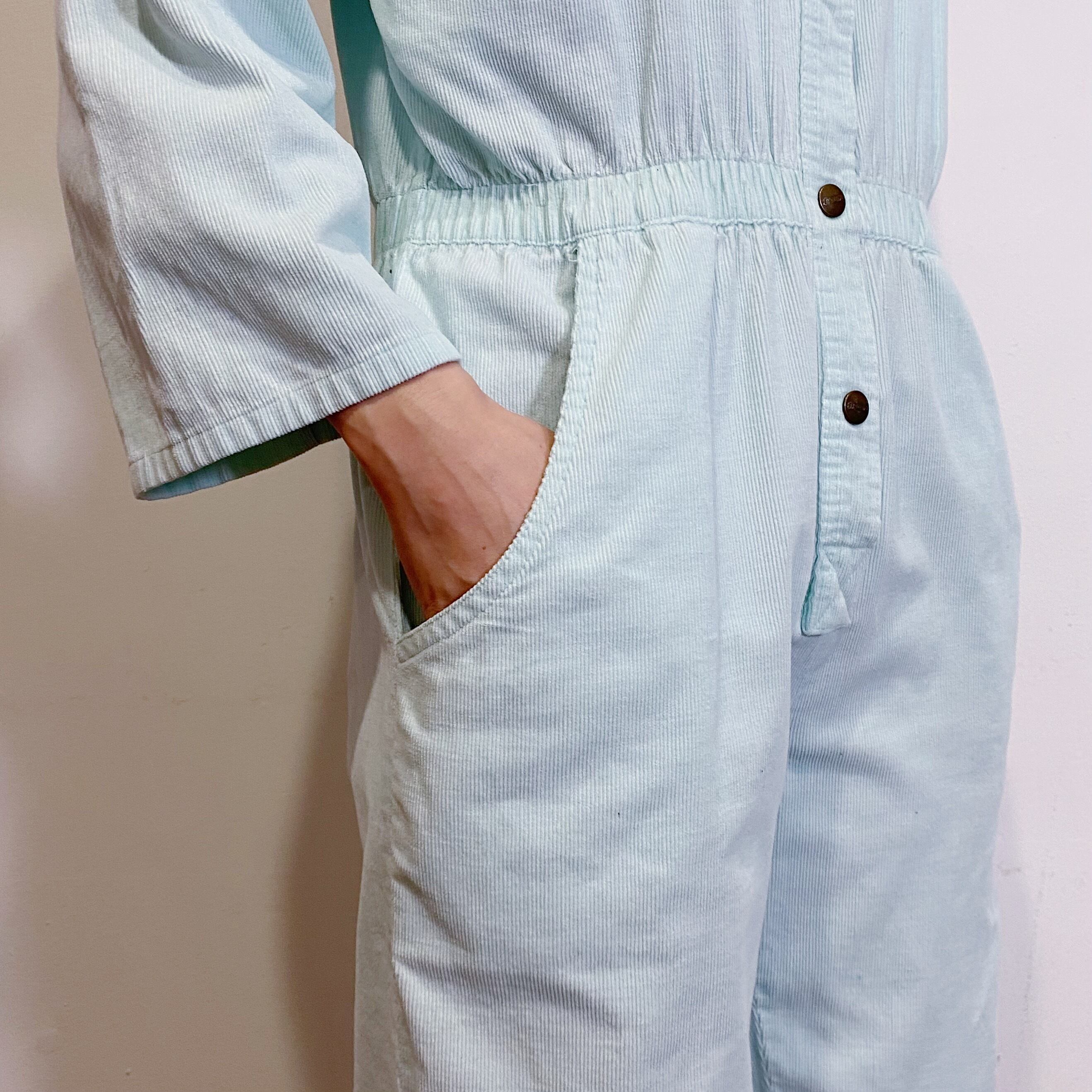 淡いライトブルーカラーがかわいい、80年代のジャンプスーツです。