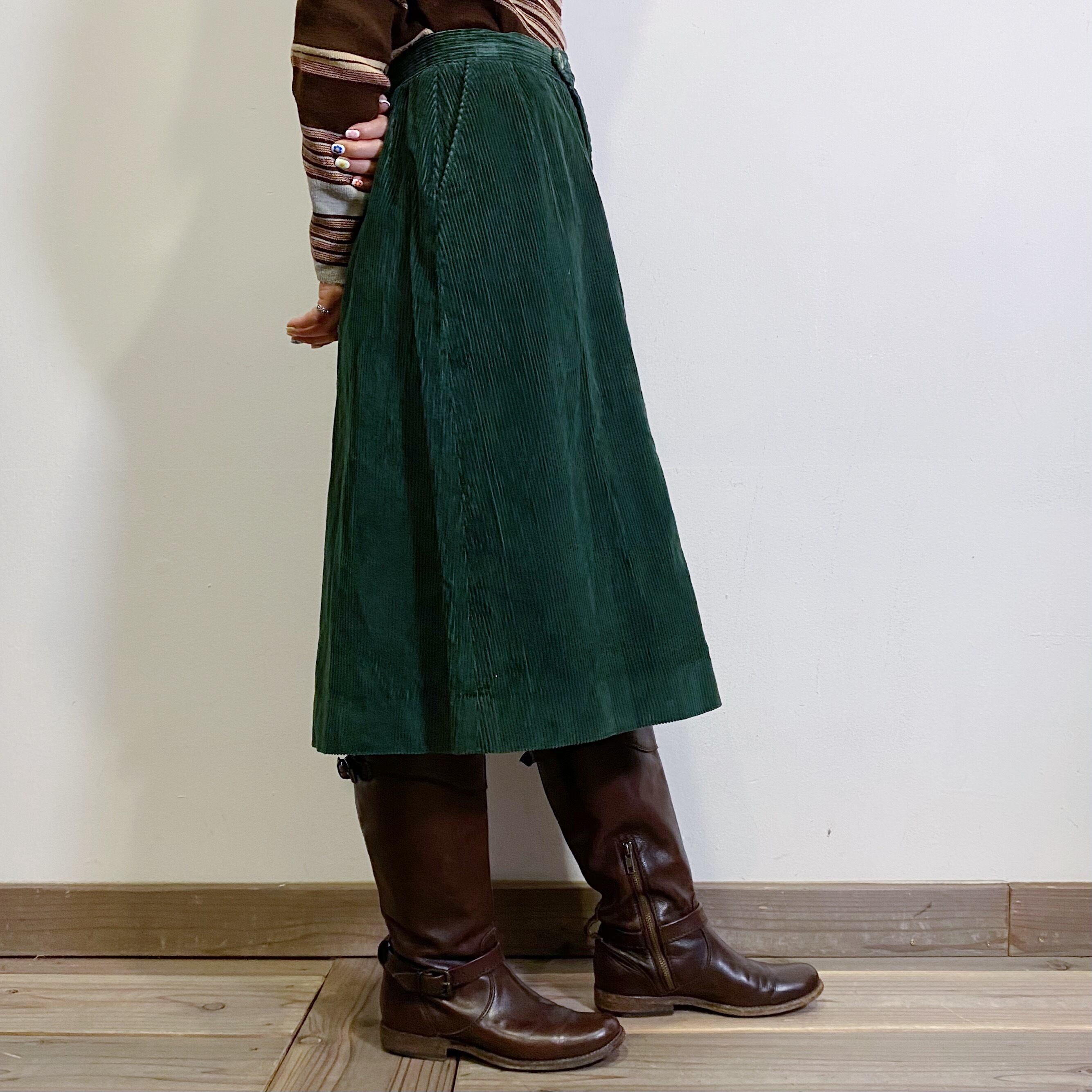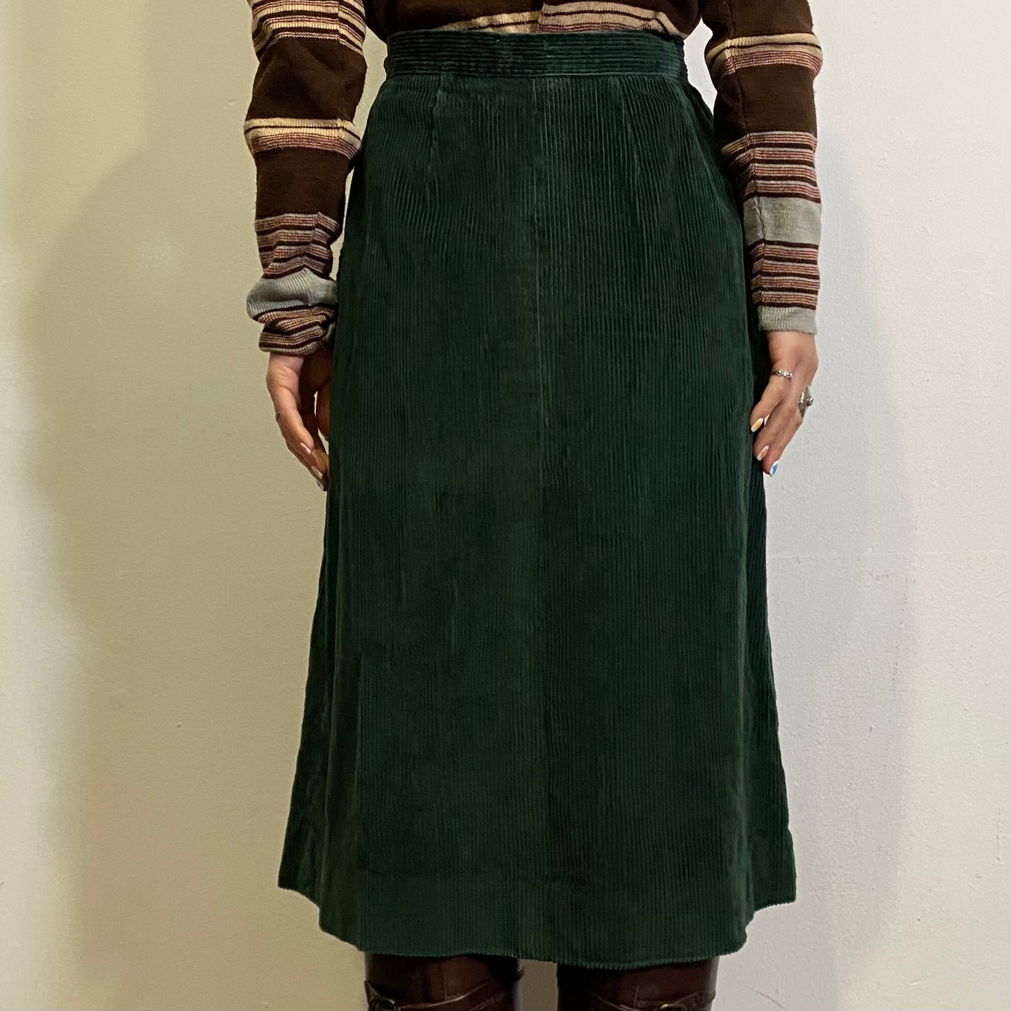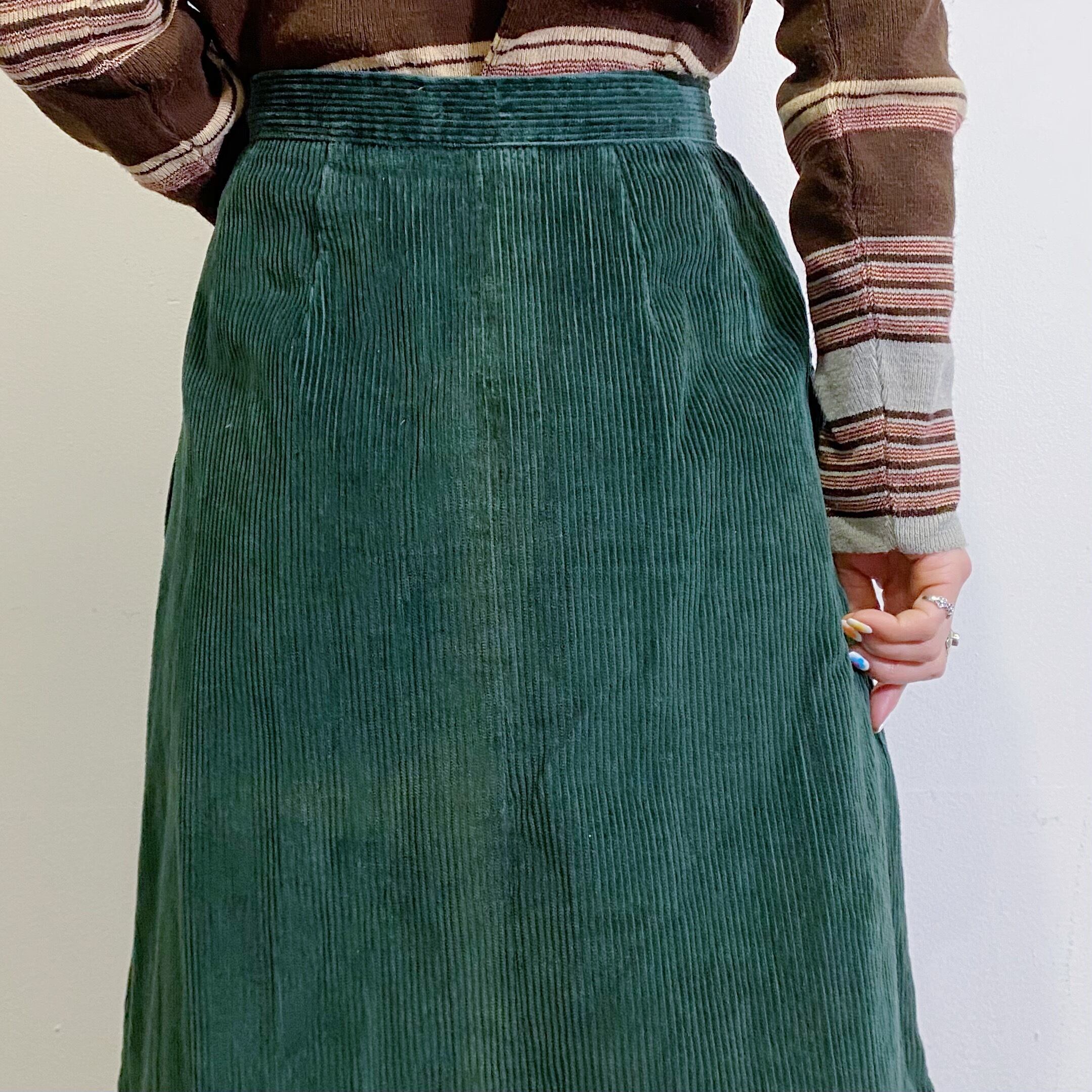 落ち着いた色合いのグリーンが可愛い、コーデュロイ素材のスカートです。