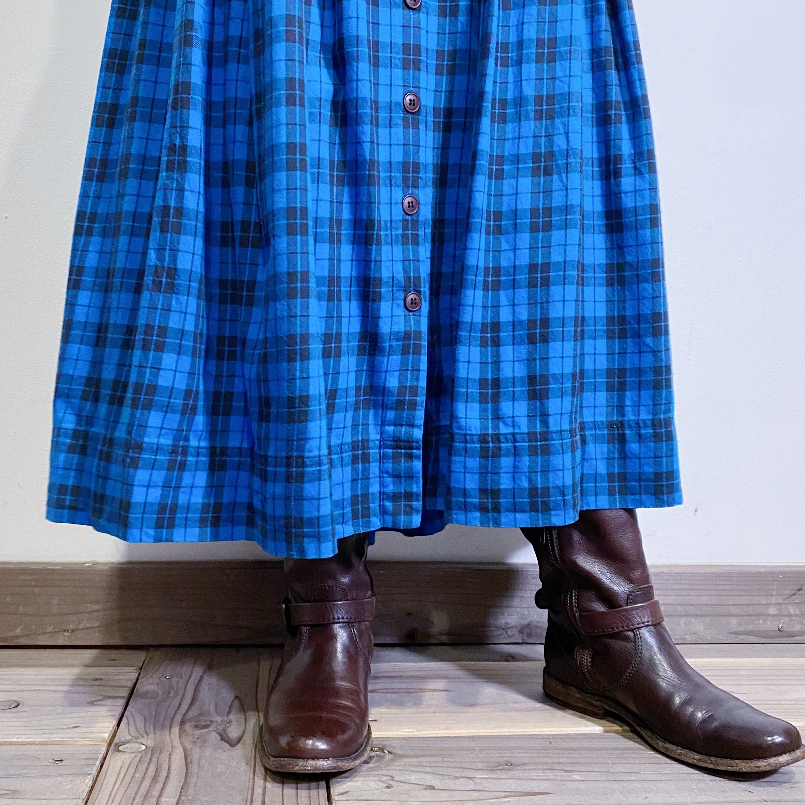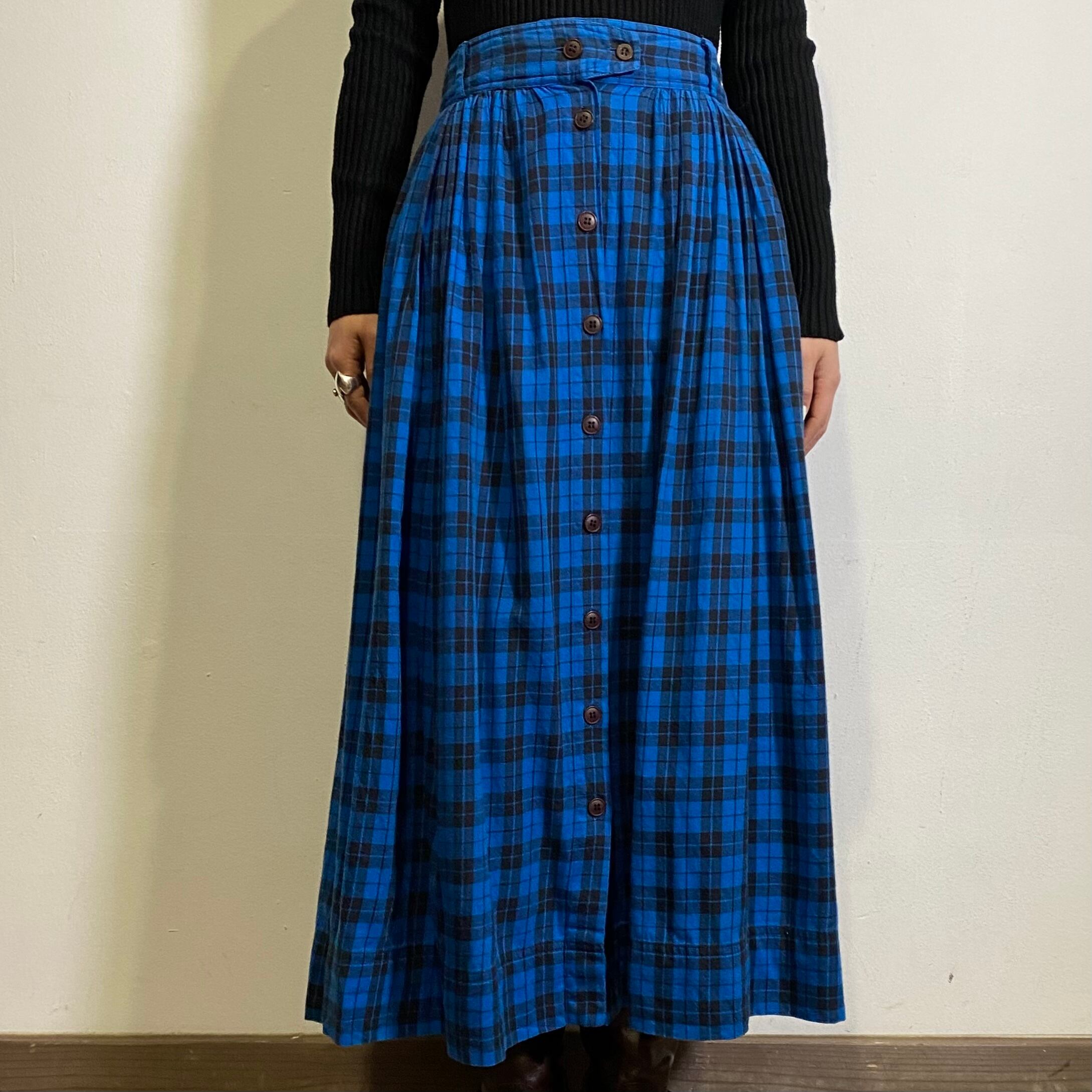 ブルーとブラックの色合いが可愛い、80年代のロングスカートです。