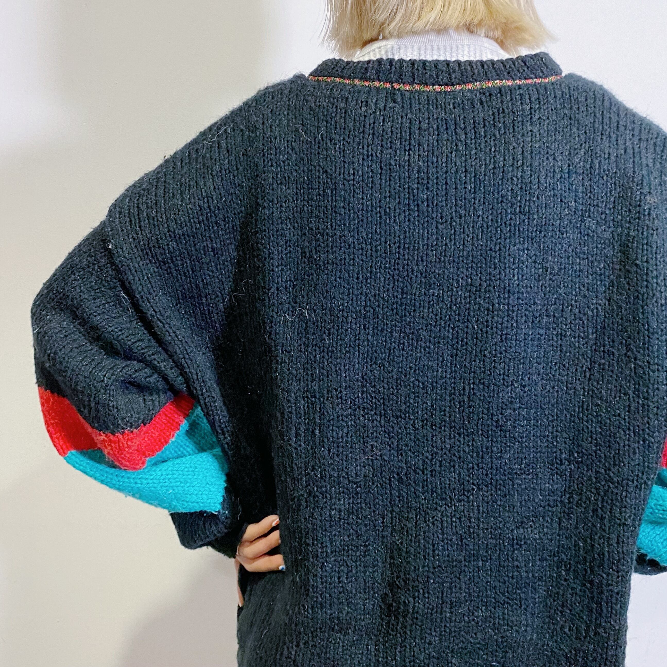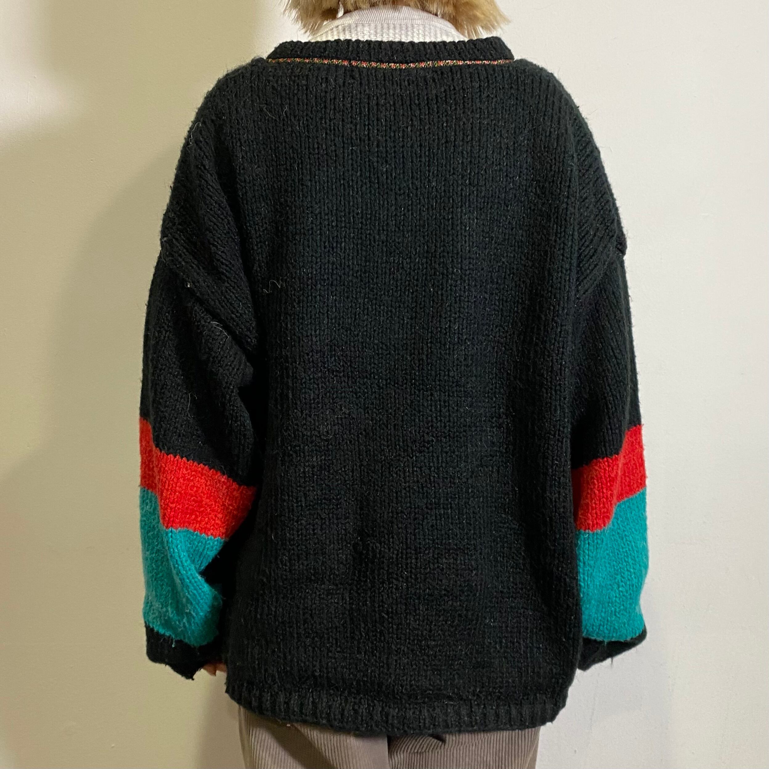 ネイティブモチーフにチロルテープなどの装飾が可愛いニットカーディガンです。