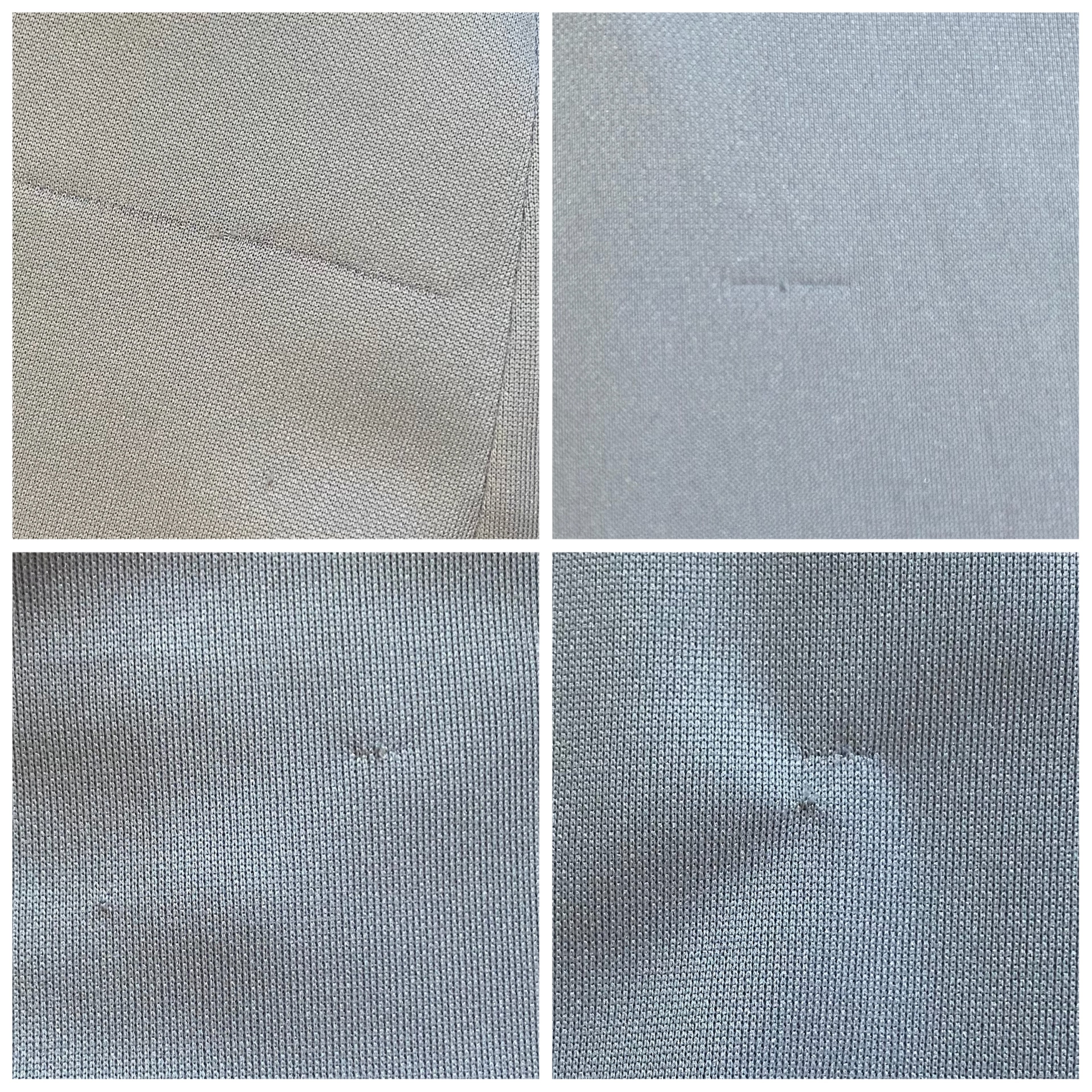 点ほどの穴をお直しした跡が見受けられるほか、生地のツレや引っ掛かりの跡が見受けられますが、ほぼ目立たないかと思われます。