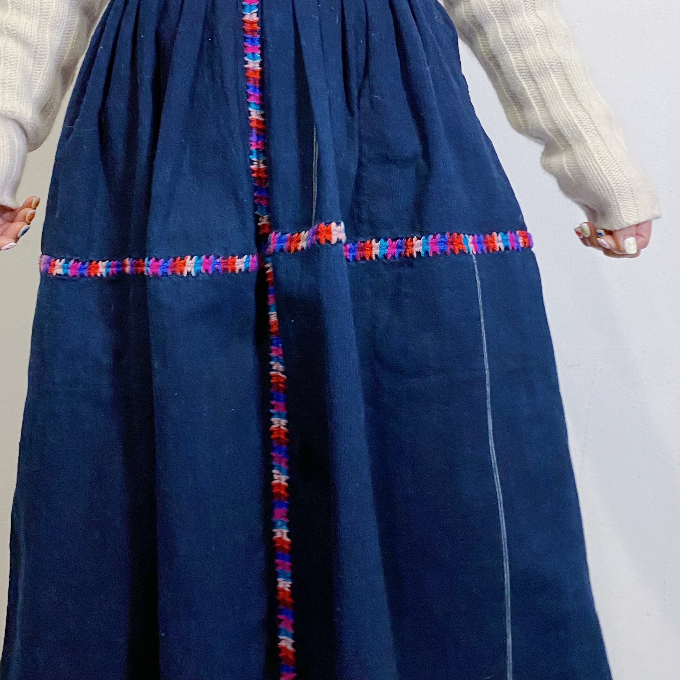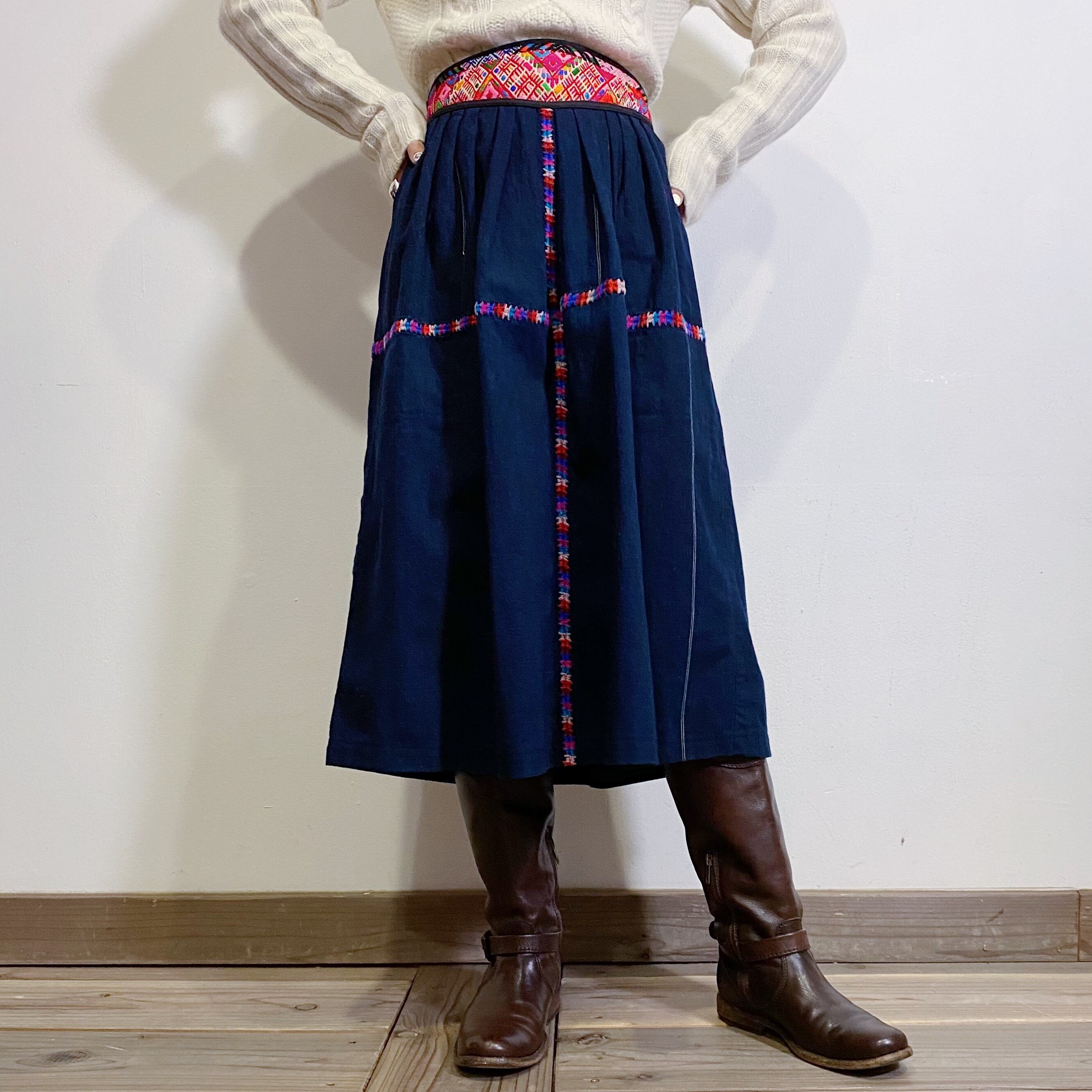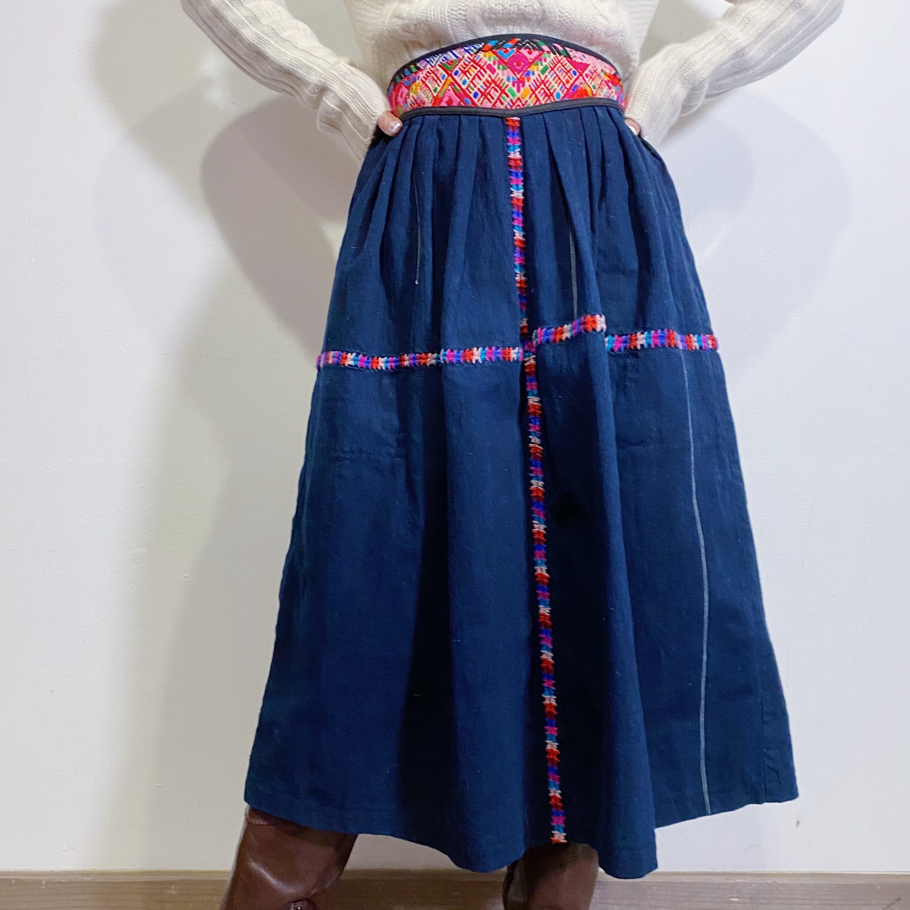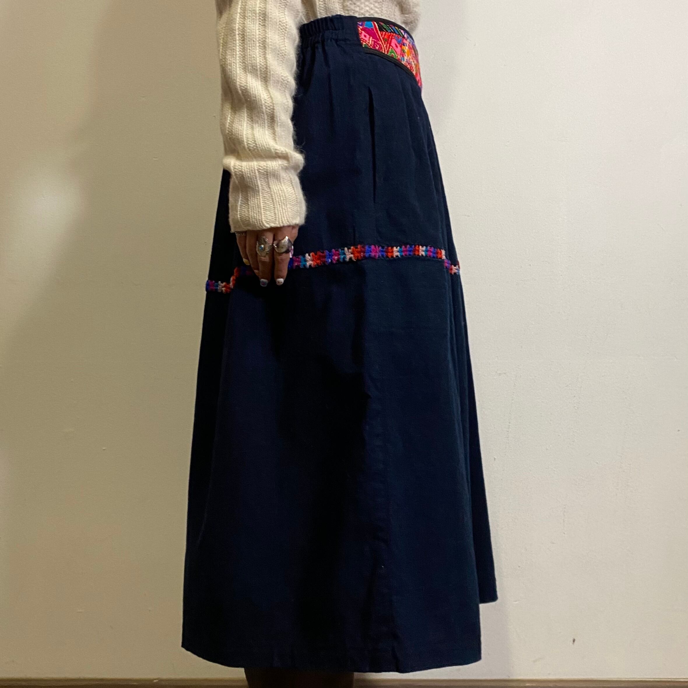 ネイビーベースにカラフルな刺繍が可愛い、南米地方の雰囲気たっぷりなスカートです。