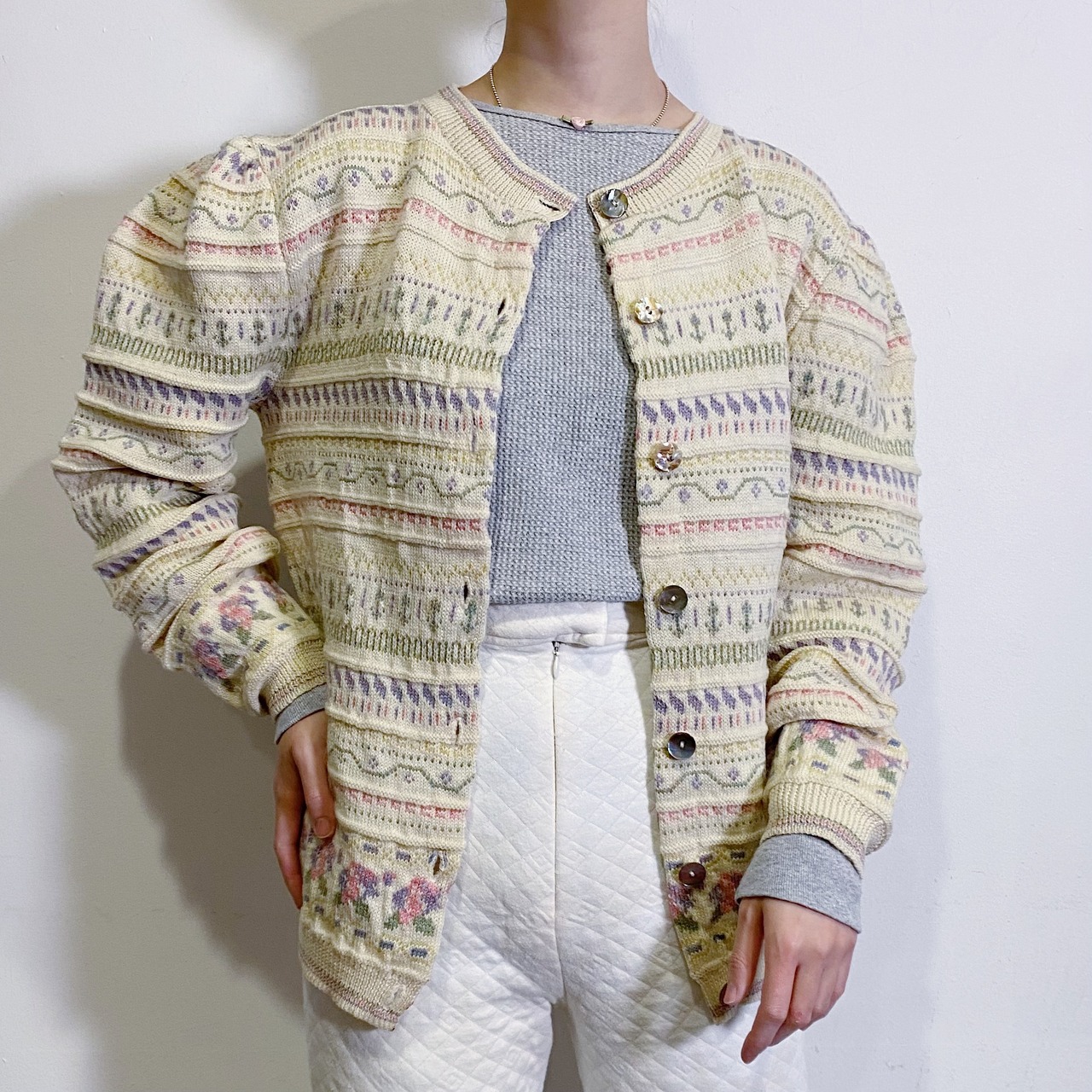 こちらは首元のさりげないお花モチーフがキュートな一枚。