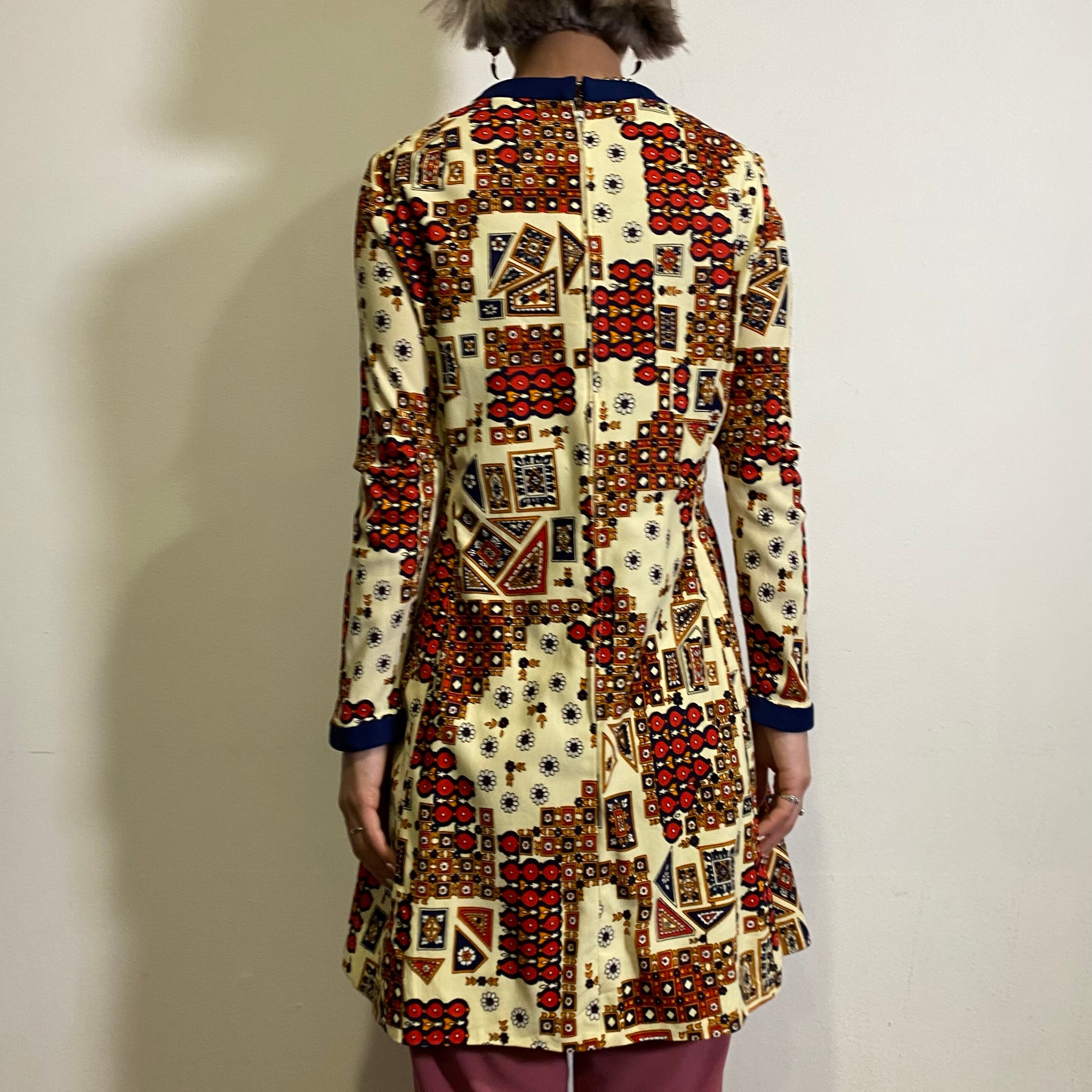 サイケデリックなムードたっぷりの70年代のミニワンピースです。