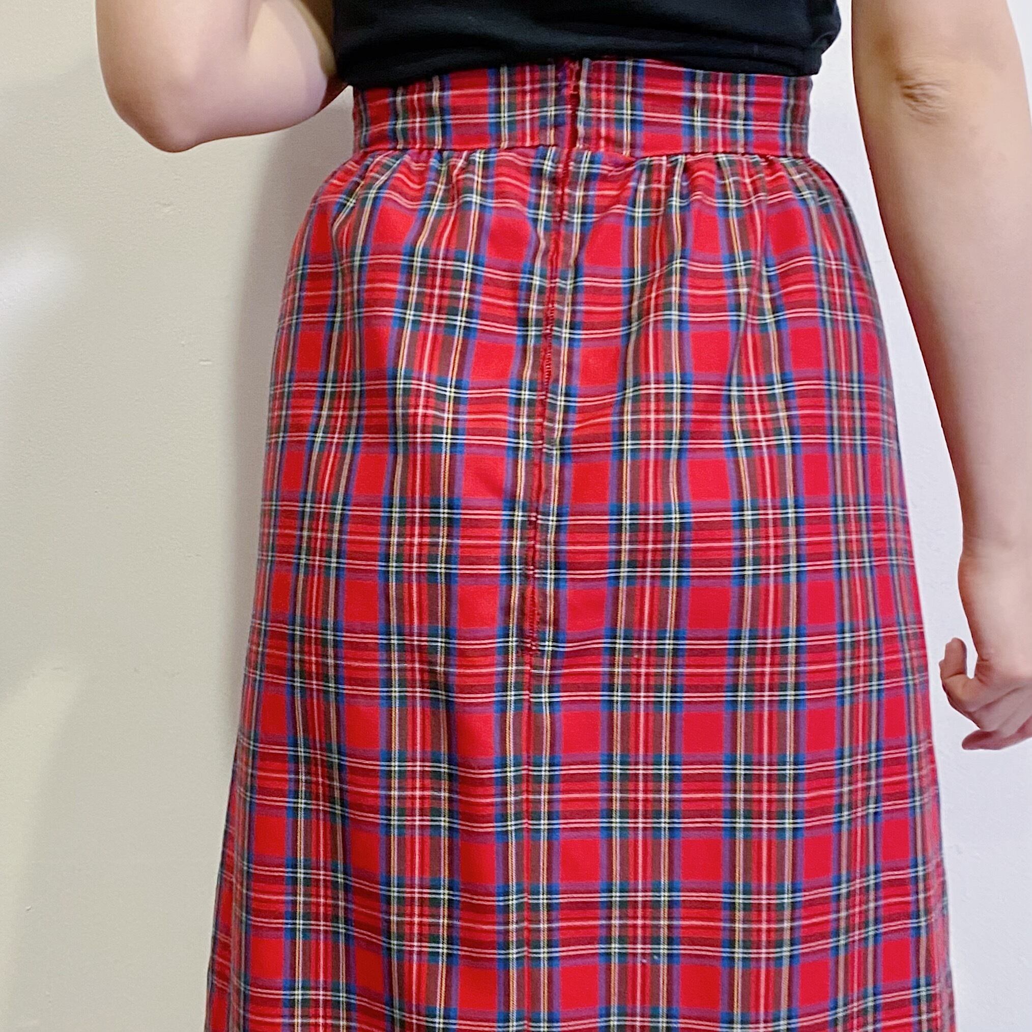 70s red plaid long skirt