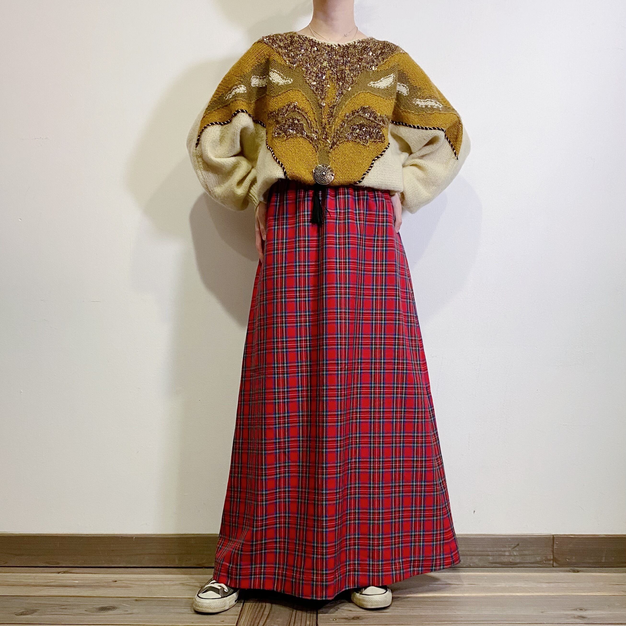 レッドベースのタータンチェックが素敵な、70年代のロングスカートです。