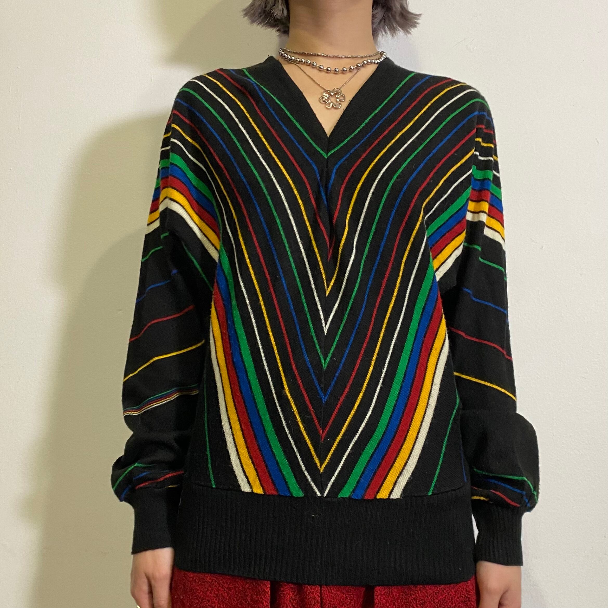 レインボーカラーが可愛い、70年代のニットセーターです。