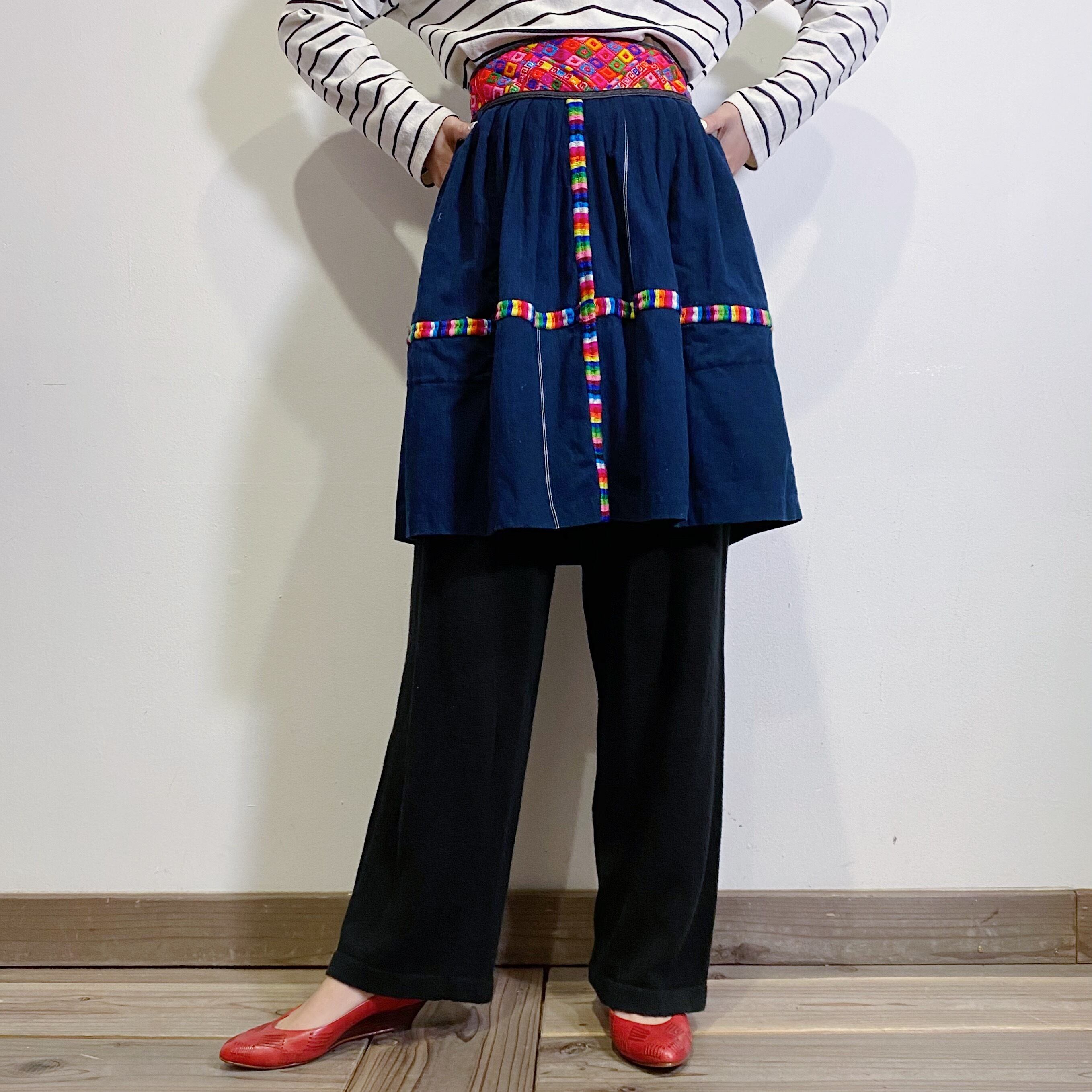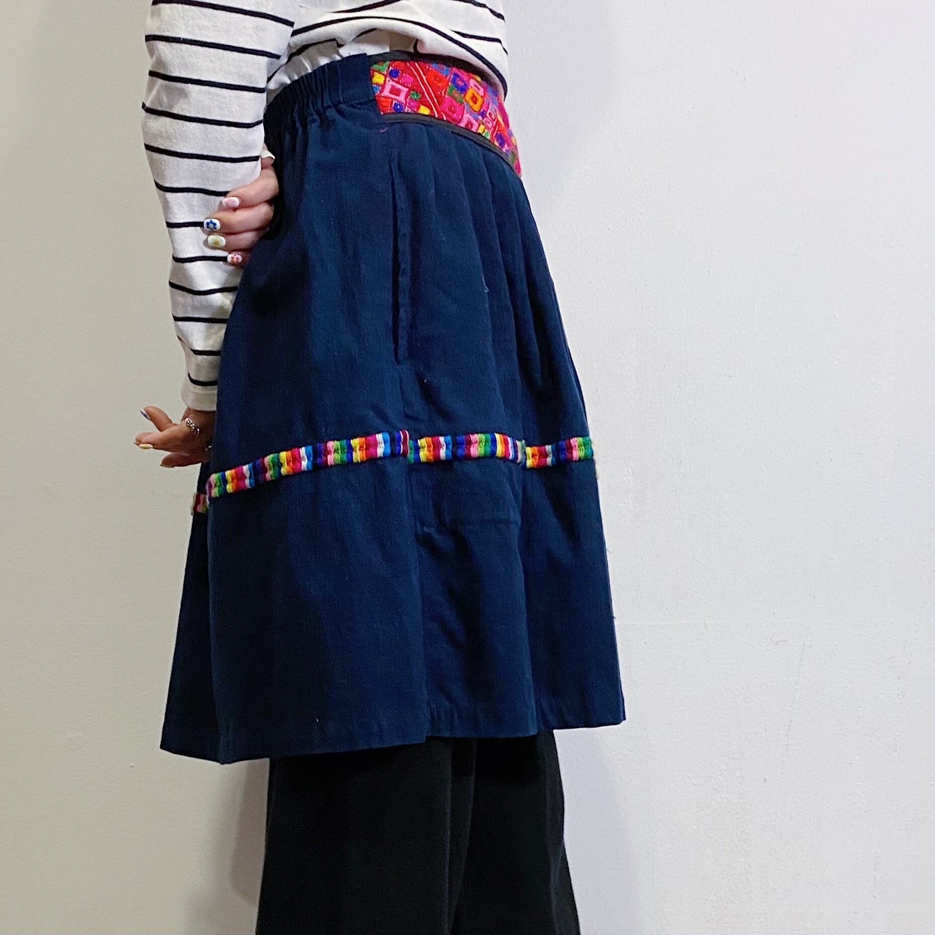 ネイビーベースにカラフルな刺繍が可愛い、南米地方の雰囲気たっぷりなミニスカートです。