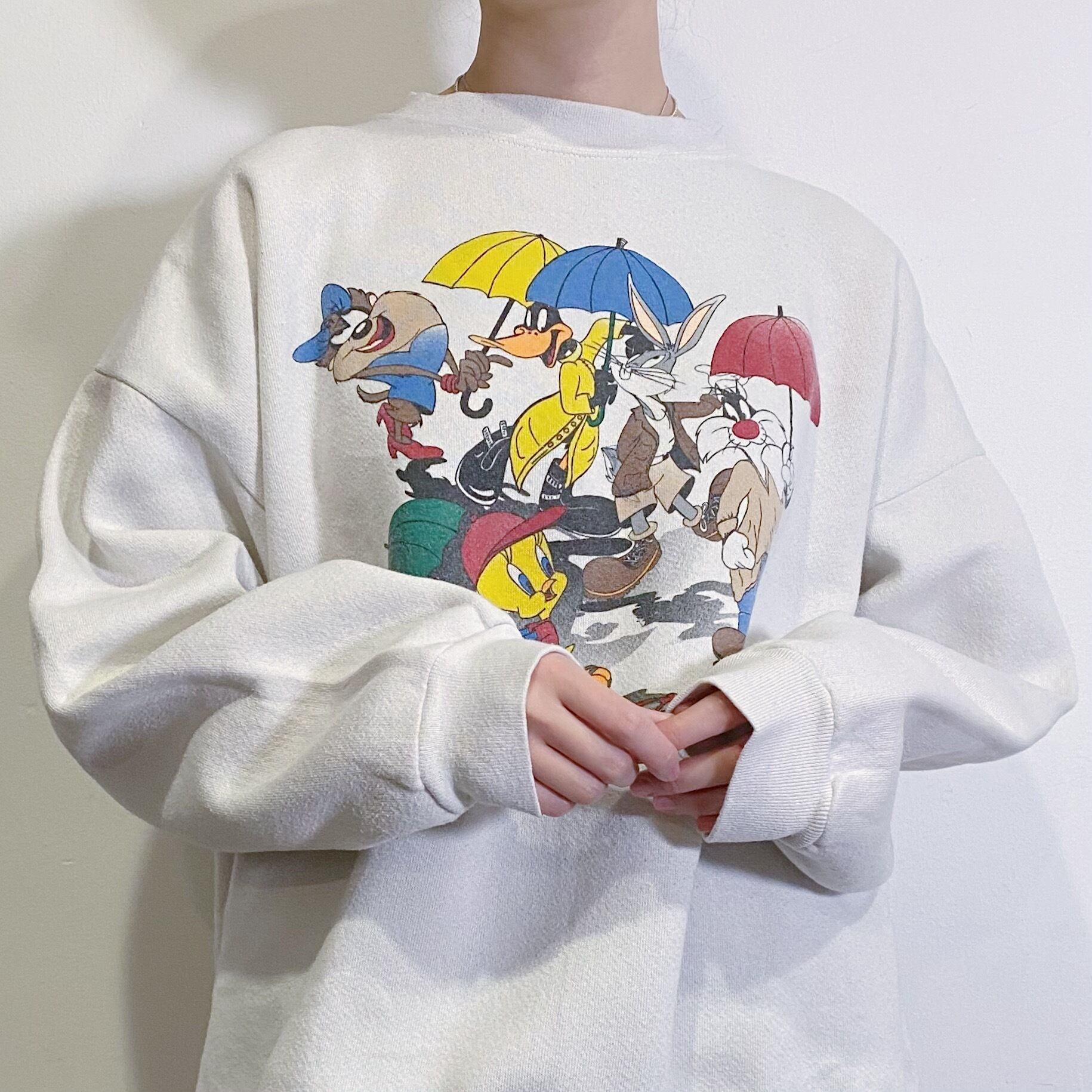 ワーナー・ブラザーズのカラフルなキャラクターたちがプリントされた、90年代のスウェットです。