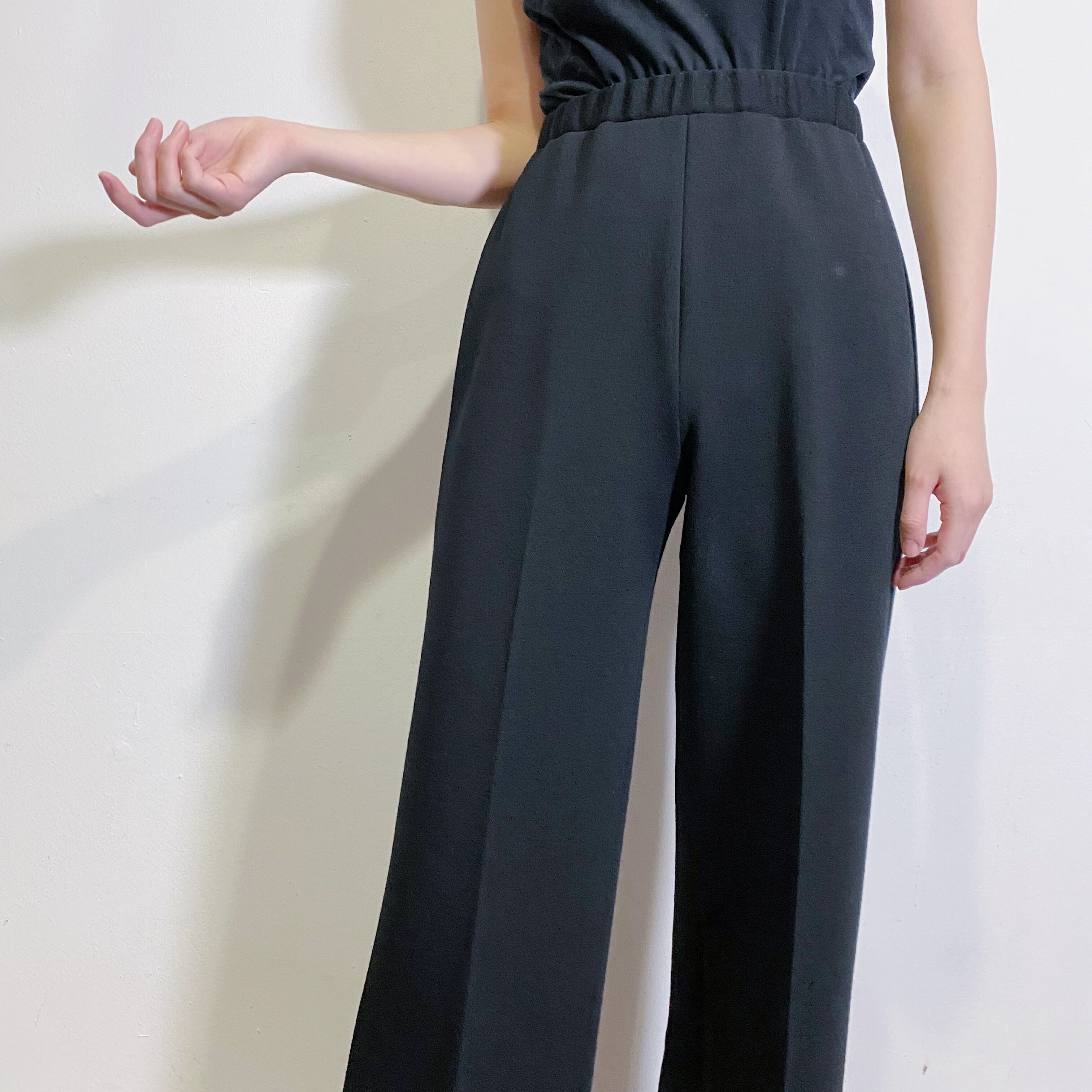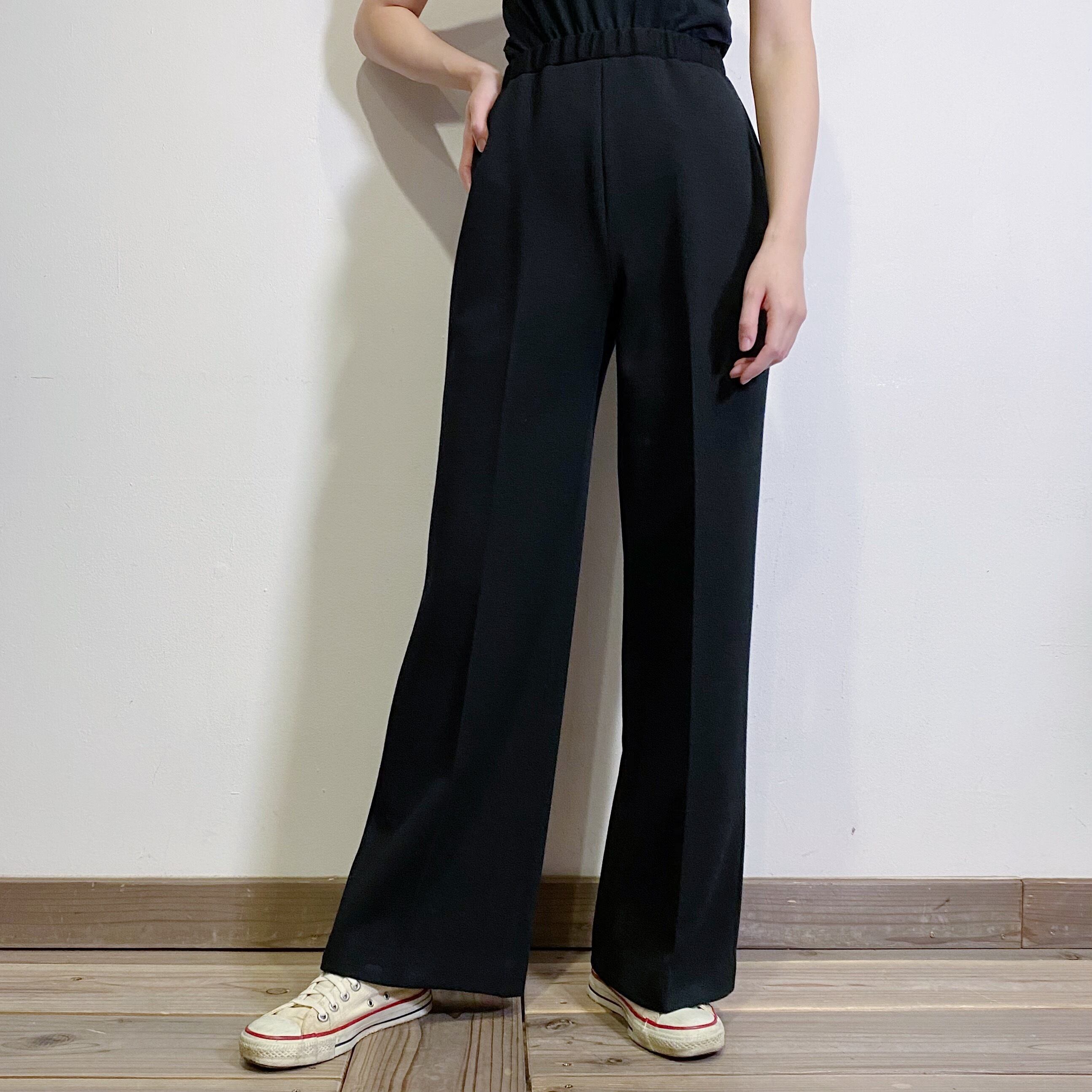シンプルで着まわしやすい、一枚持っておくと便利なブラックパンツです。