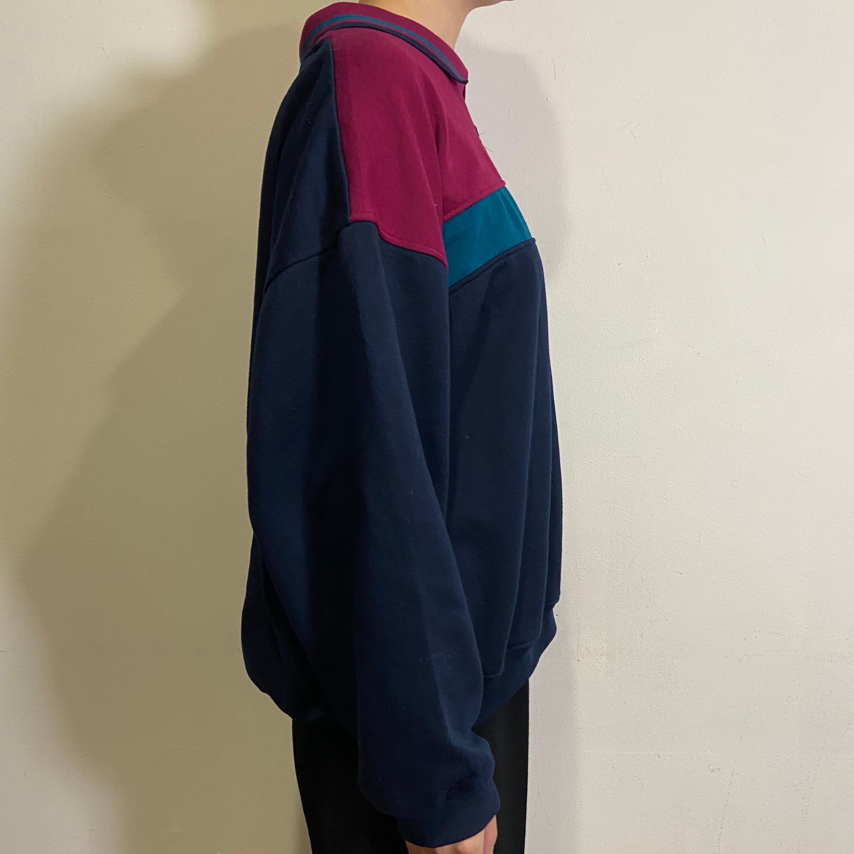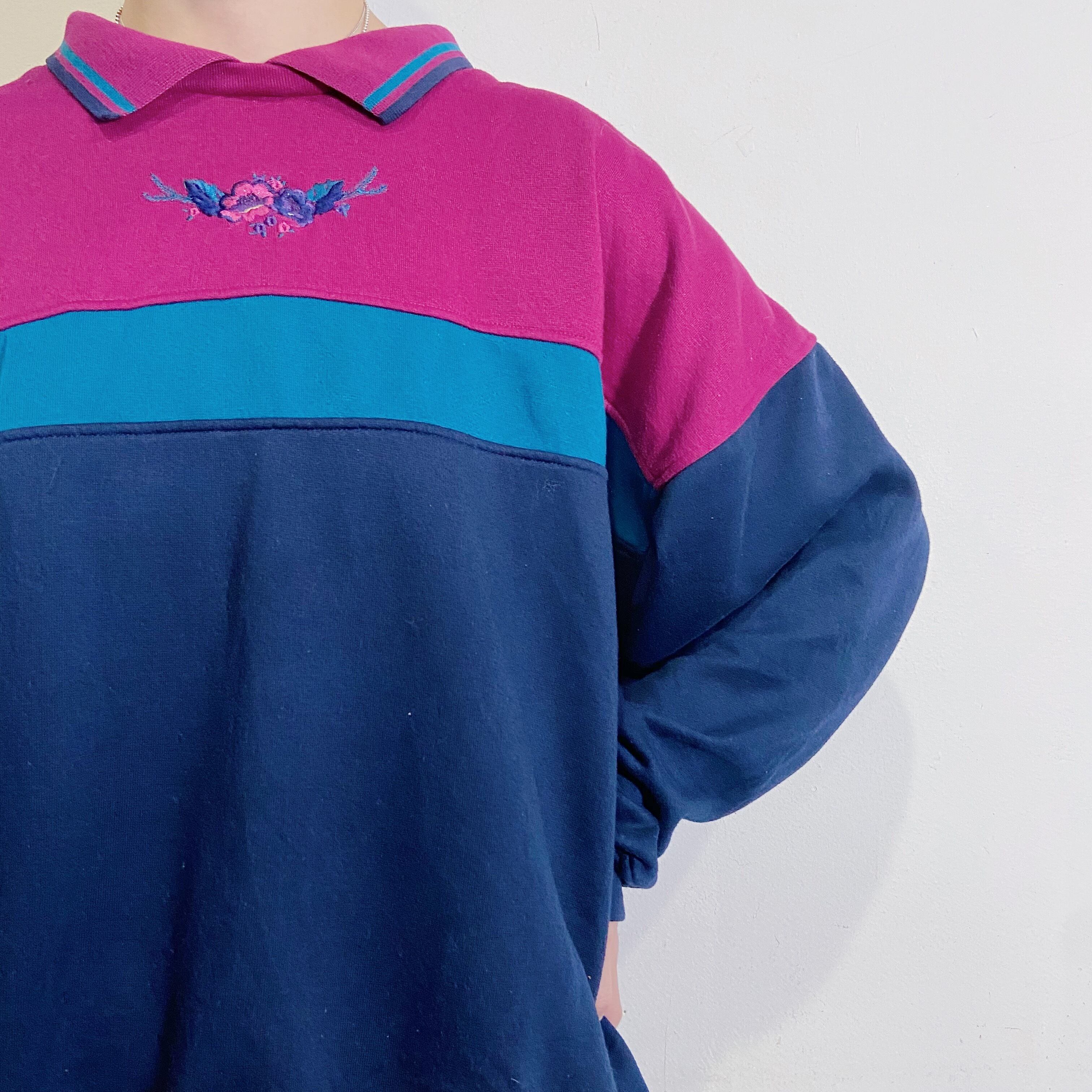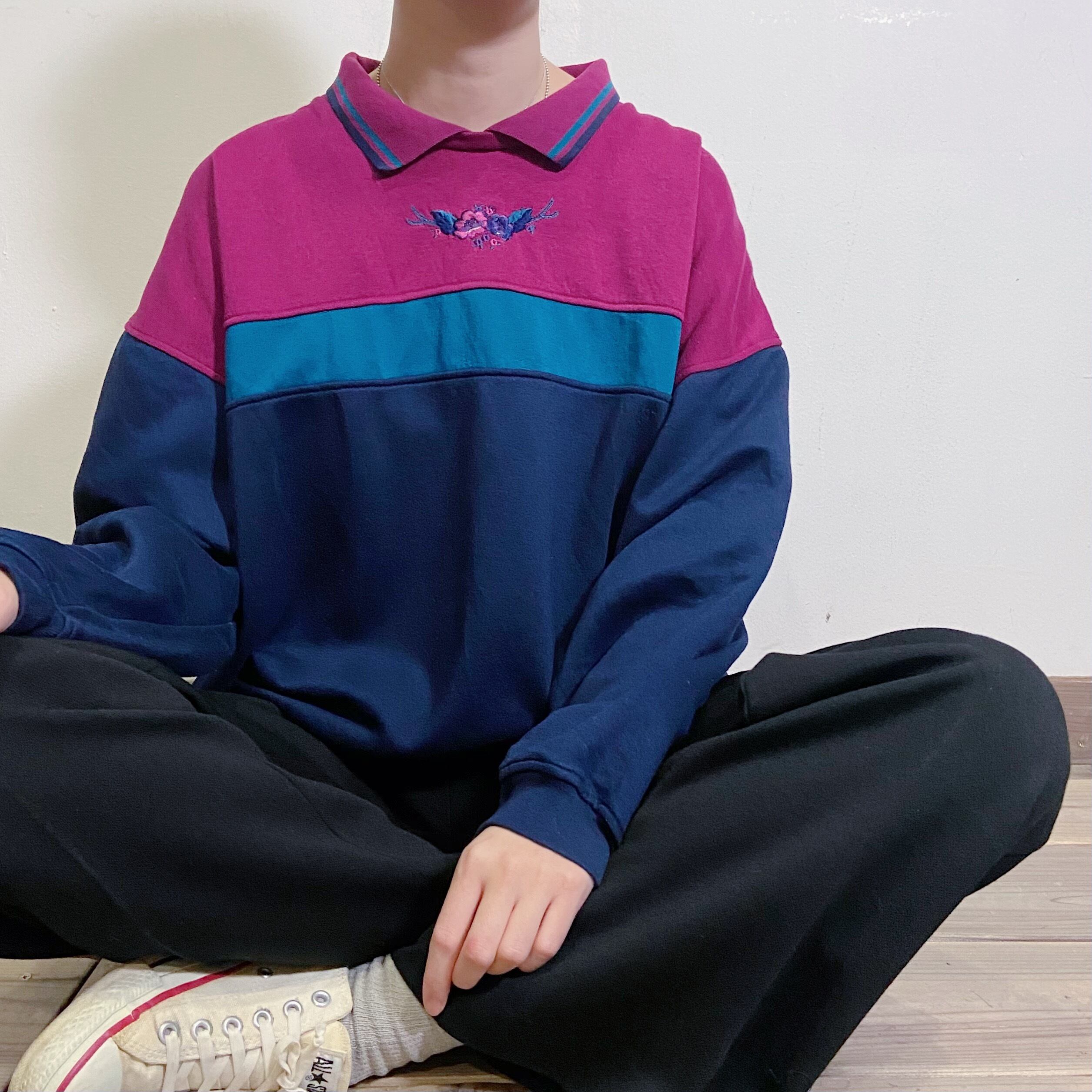 パープル・グリーン・ネイビーの色合いが可愛い、80年代のスウェットです。