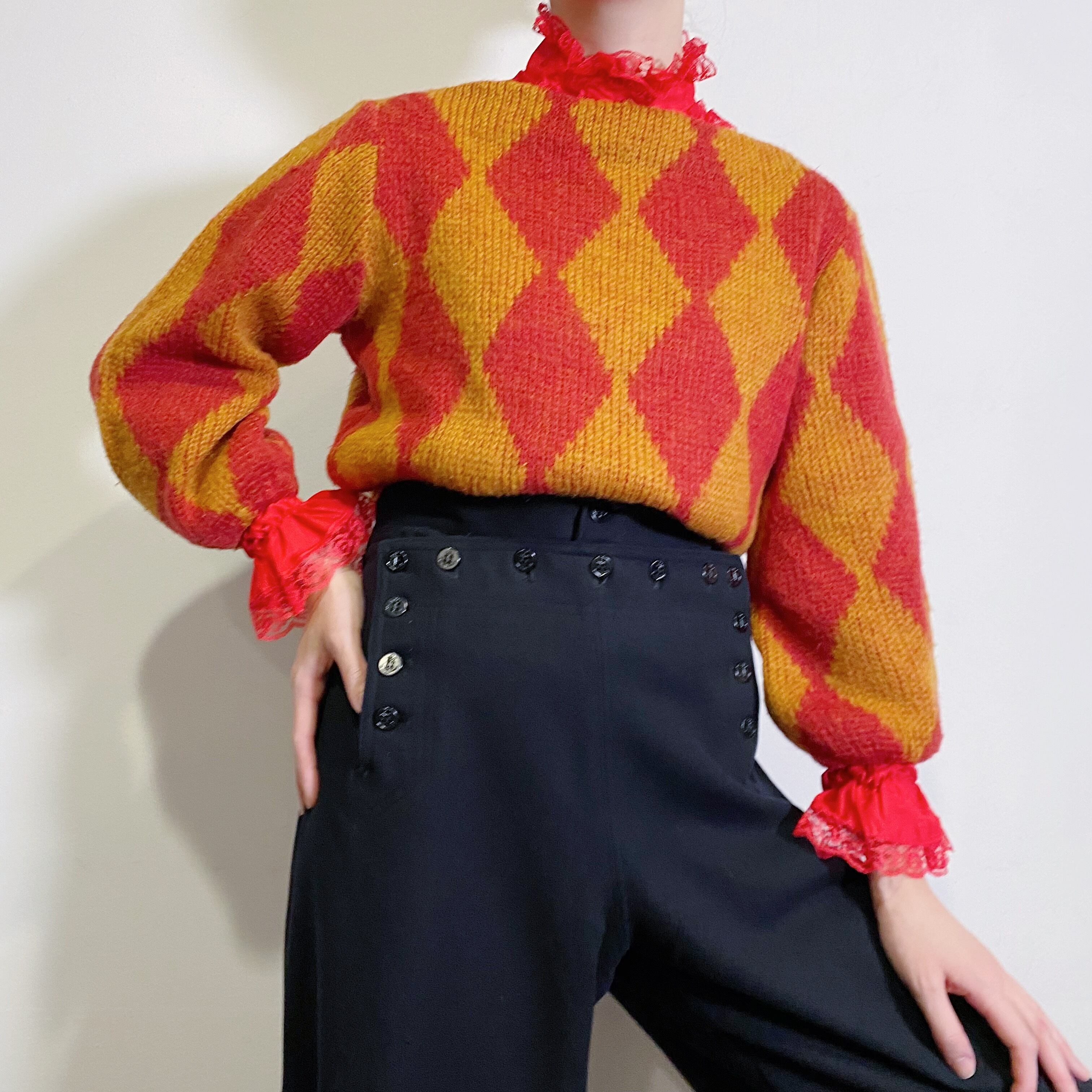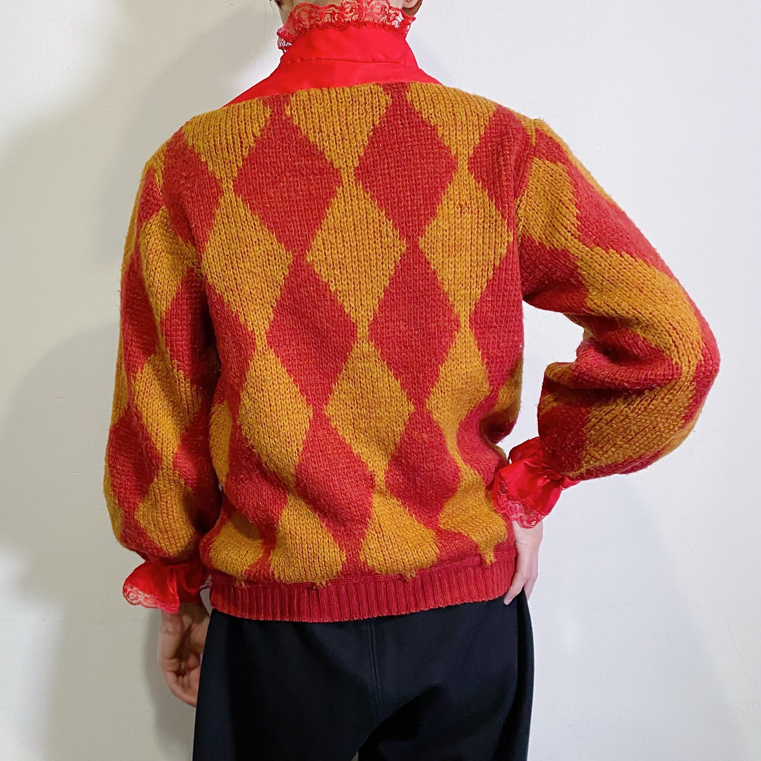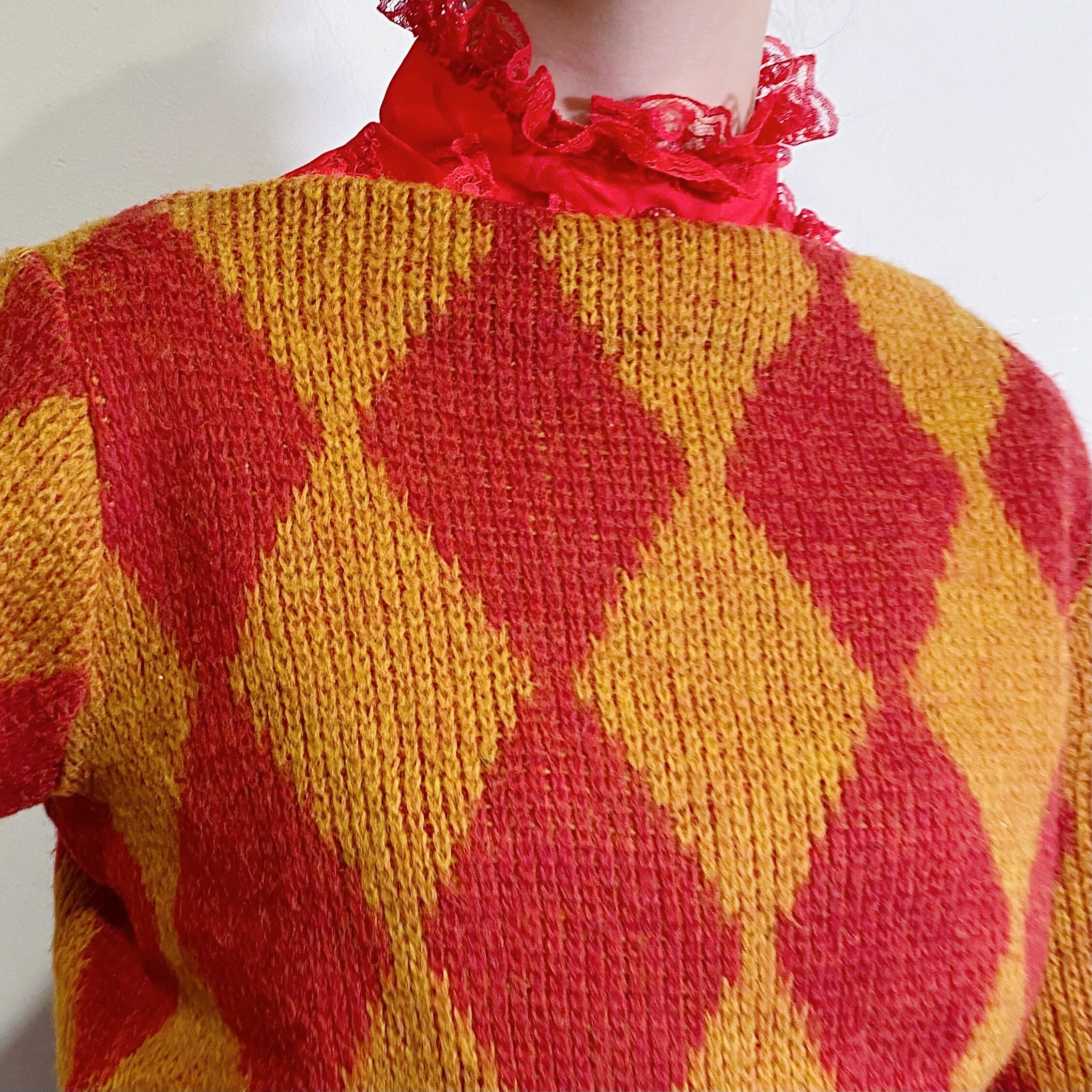 ダイヤのような編み模様が可愛い、60年代のニットセーターです。