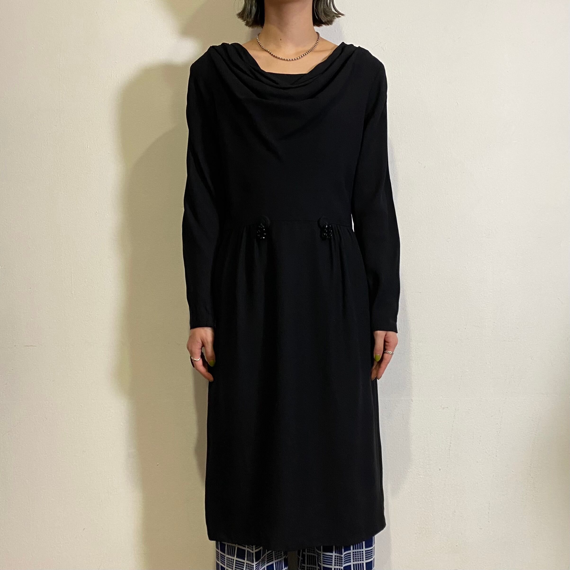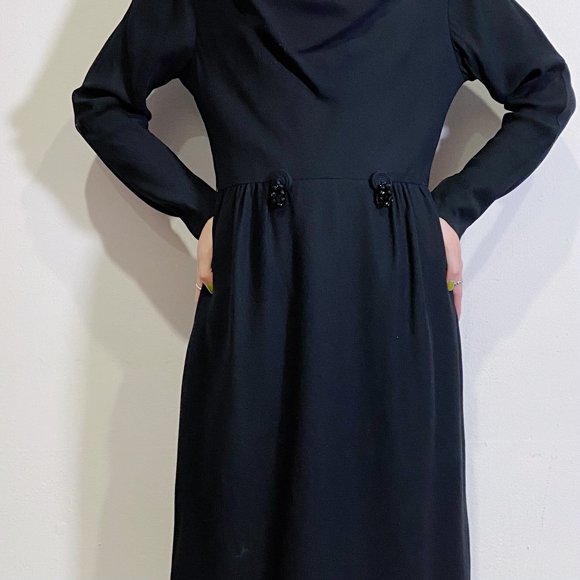 首元のゆるっとしたデザインとウエストのビーズ装飾が可愛い、50年代のワンピースです。
